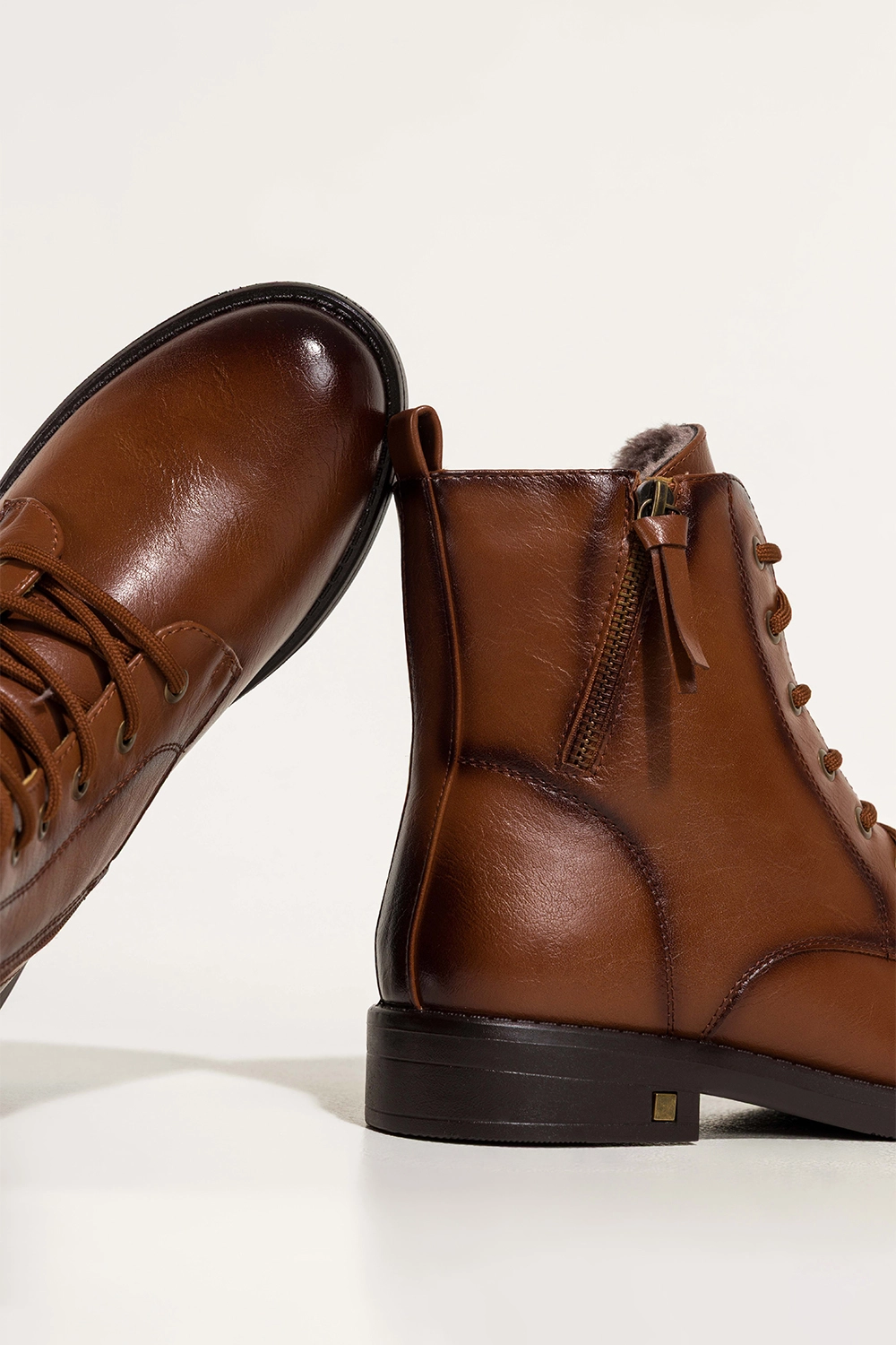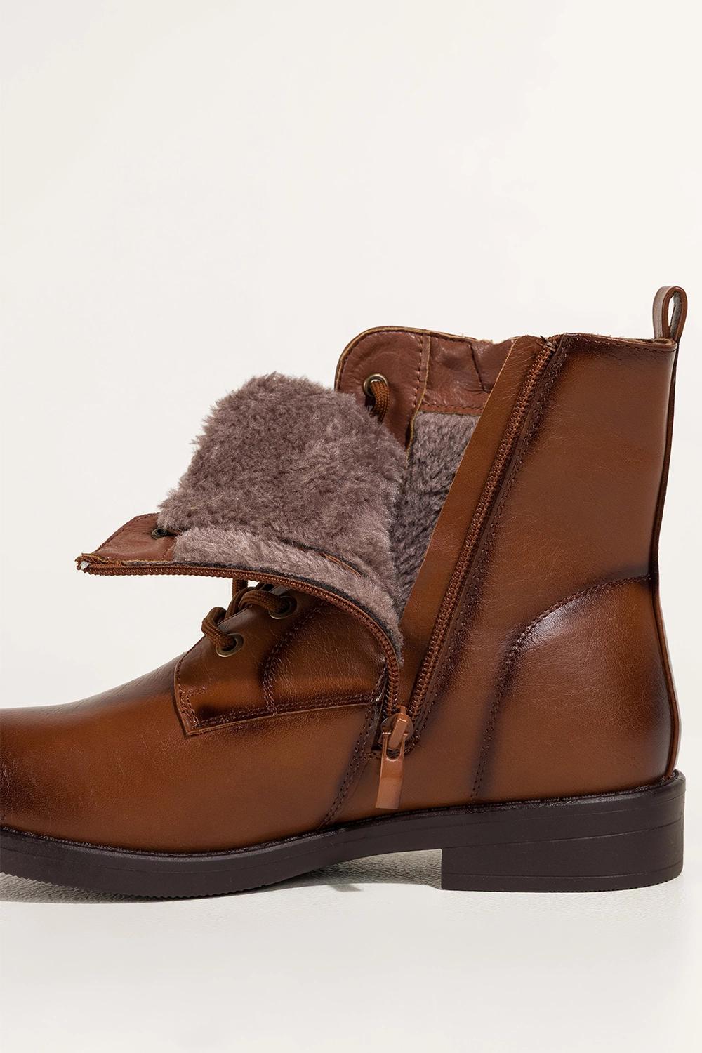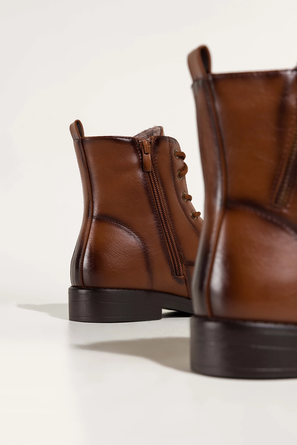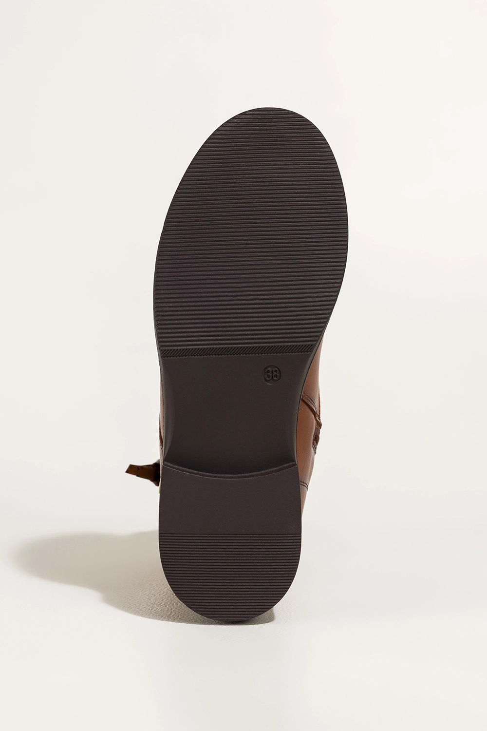 Brązowe botki damskie płaskie na cholewce ozdobny zamek sznurowane Casu model 7080-6. Wykonane z wysokogatunkowej skóry ekologicznej, zachwycają nie tylko trwałością, ale też eleganckim wykończeniem, które świetnie komponuje się z jesienno-zimowymi stylizacjami. Wnętrze ocieplone przyjemnym w dotyku futerkiem zapewnia ciepło nawet w najchłodniejsze dni, gwarantując komfort codziennego użytkowania. To idealny wybór dla kobiet ceniących praktyczne i estetyczne rozwiązania w codziennej garderobie.