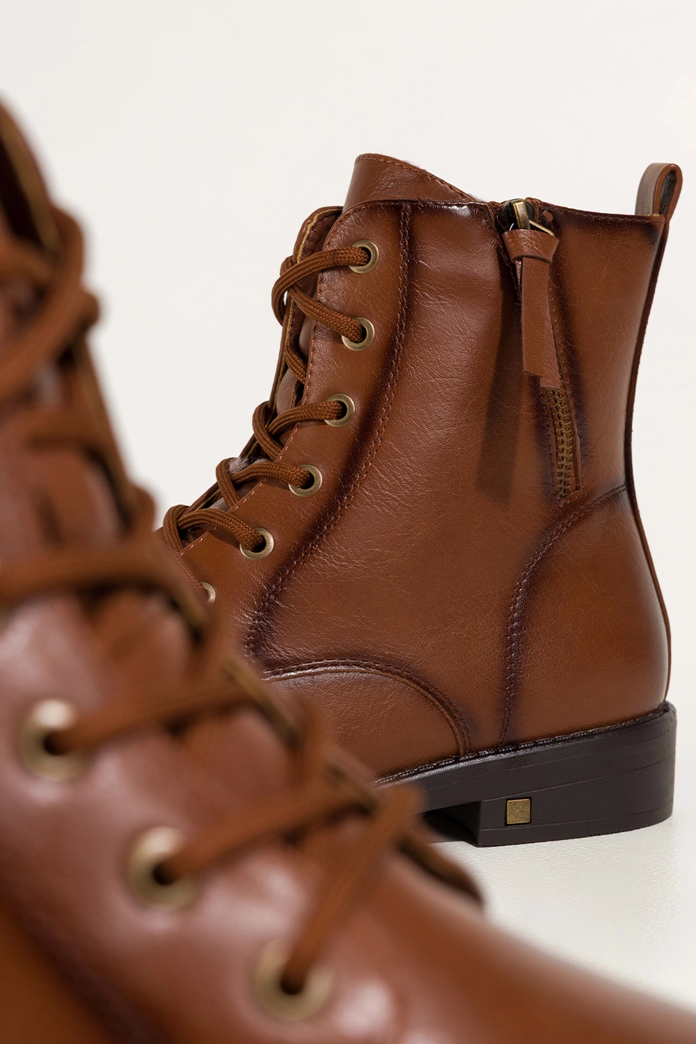 Botki z łatwością dopasujesz do różnych stylizacji, od casualowych jeansów po bardziej eleganckie sukienki. Zaokrąglony nosek i delikatny obcas dodają kobiecego charakteru, a ozdobny zamek na cholewce przyciąga wzrok, wprowadzając modowy akcent. Brązowe sznurówki oraz funkcjonalny zamek boczny ułatwiają szybkie zakładanie i zdejmowanie obuwia, co sprawia, że są to botki nie tylko stylowe, ale również niezwykle praktyczne.