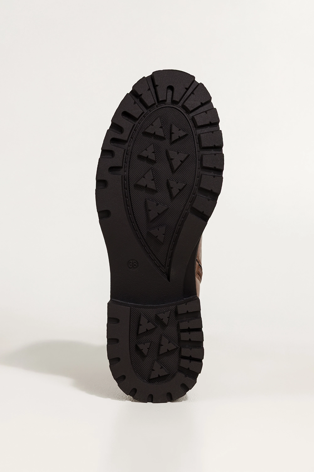Botki doskonale wpisują się zarówno w miejskie stylizacje, jak i casualowe zestawy na co dzień. Ozdobne przeszycia dodają im charakteru, a bieżnikowana platforma nadaje nowoczesnego, lekko surowego looku. Dzięki sznurowaniu oraz praktycznemu zamkowi, buty dopasowują się do stopy i ułatwiają zakładanie. To propozycja dla kobiet, które szukają balansu między modą a funkcjonalnością.