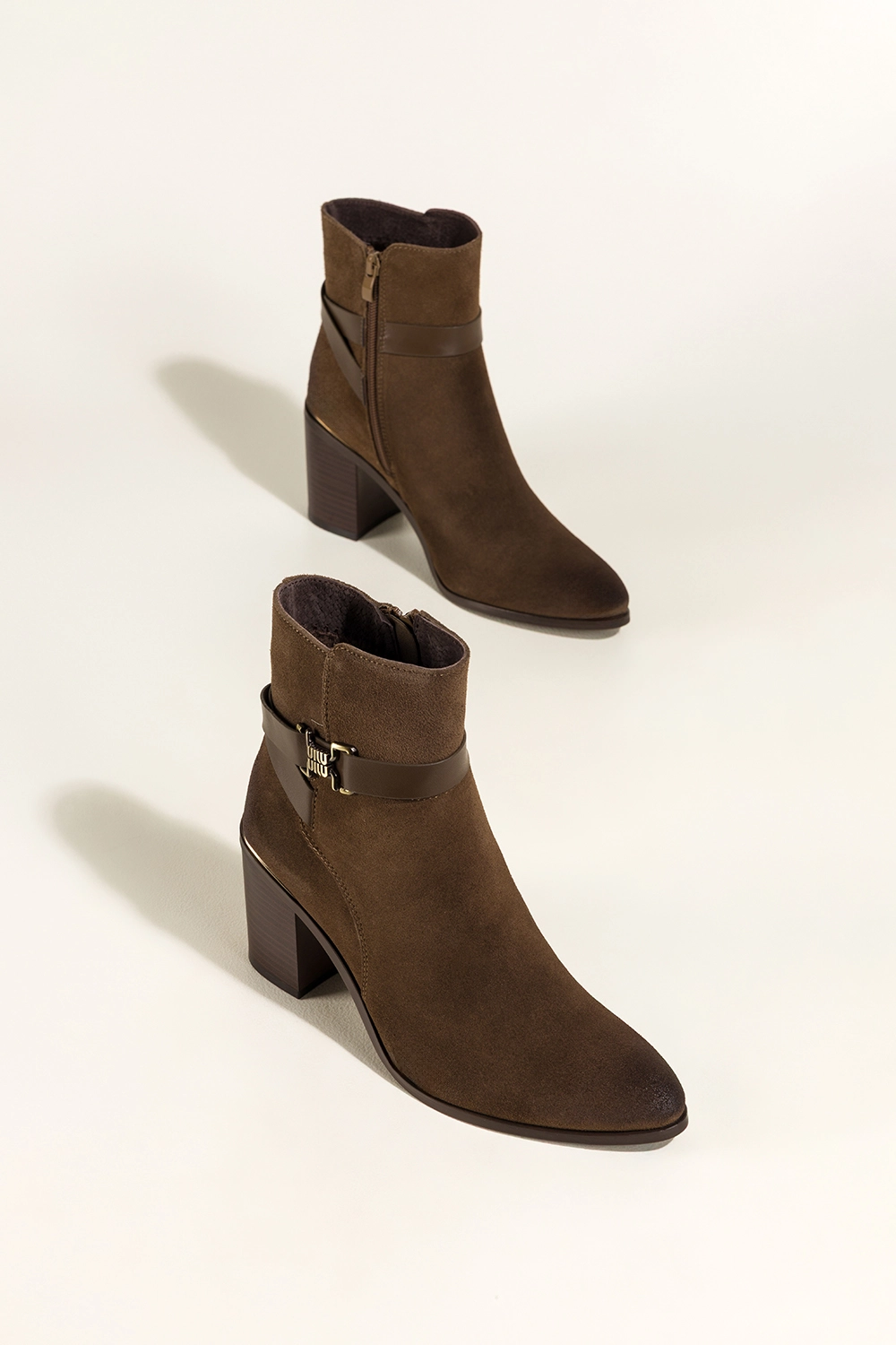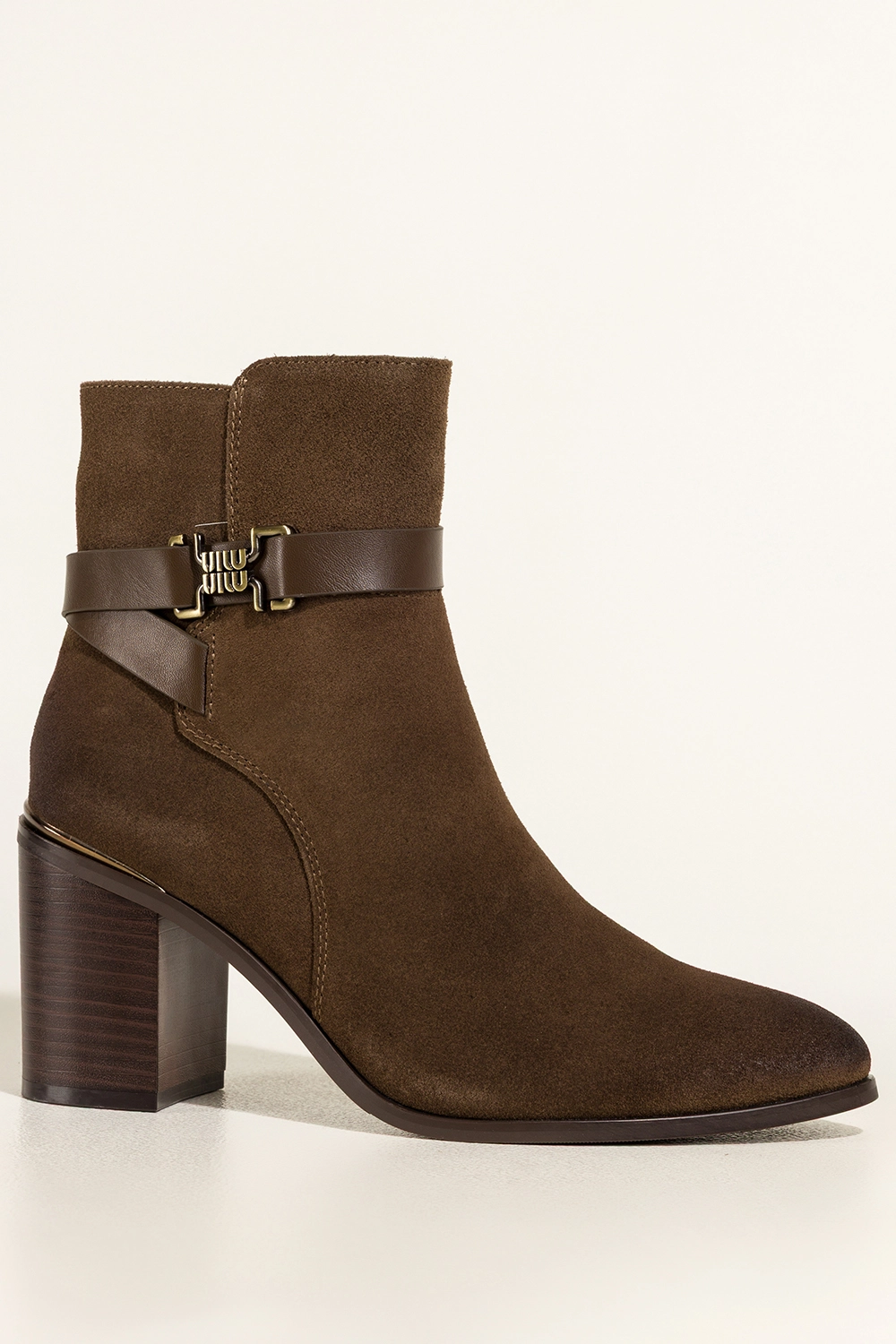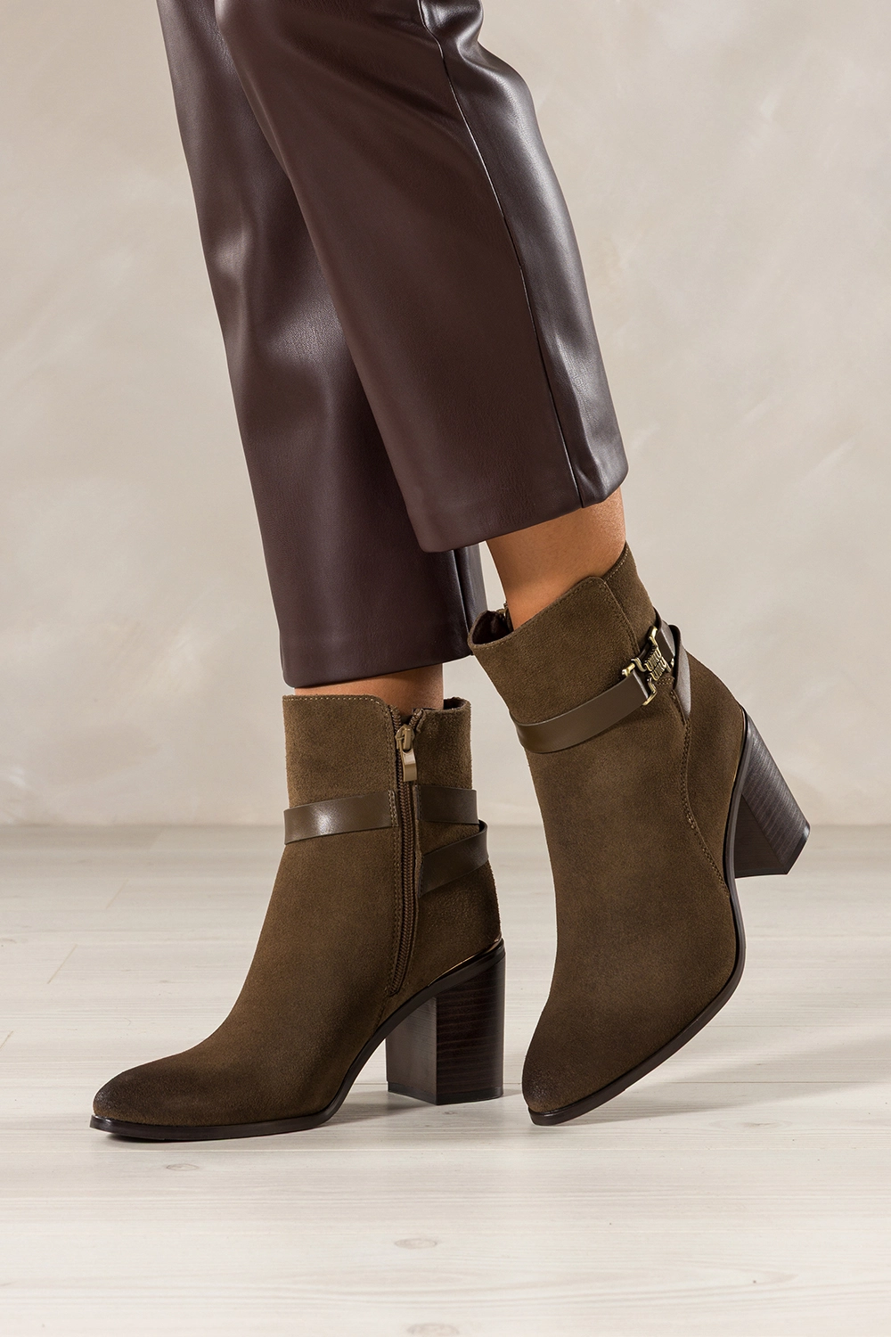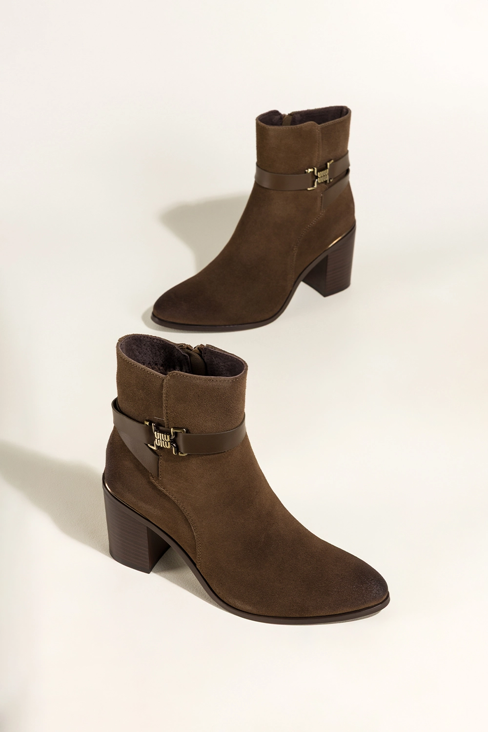 Złota ozdoba na pasku oplatającym cholewkę to wyrafinowany detal, który czyni ten model wyjątkowym. Te botki z łatwością wpiszą się zarówno w eleganckie, jak i codzienne stylizacje, od wełnianych płaszczy po oversize'owe swetry. Kolor khaki z nutą brązu świetnie komponuje się z neutralnymi i ziemistymi barwami, a uniwersalny design sprawia, że założysz je zarówno do pracy, jak i na wieczorne wyjście.