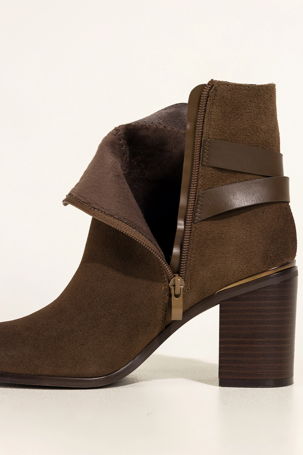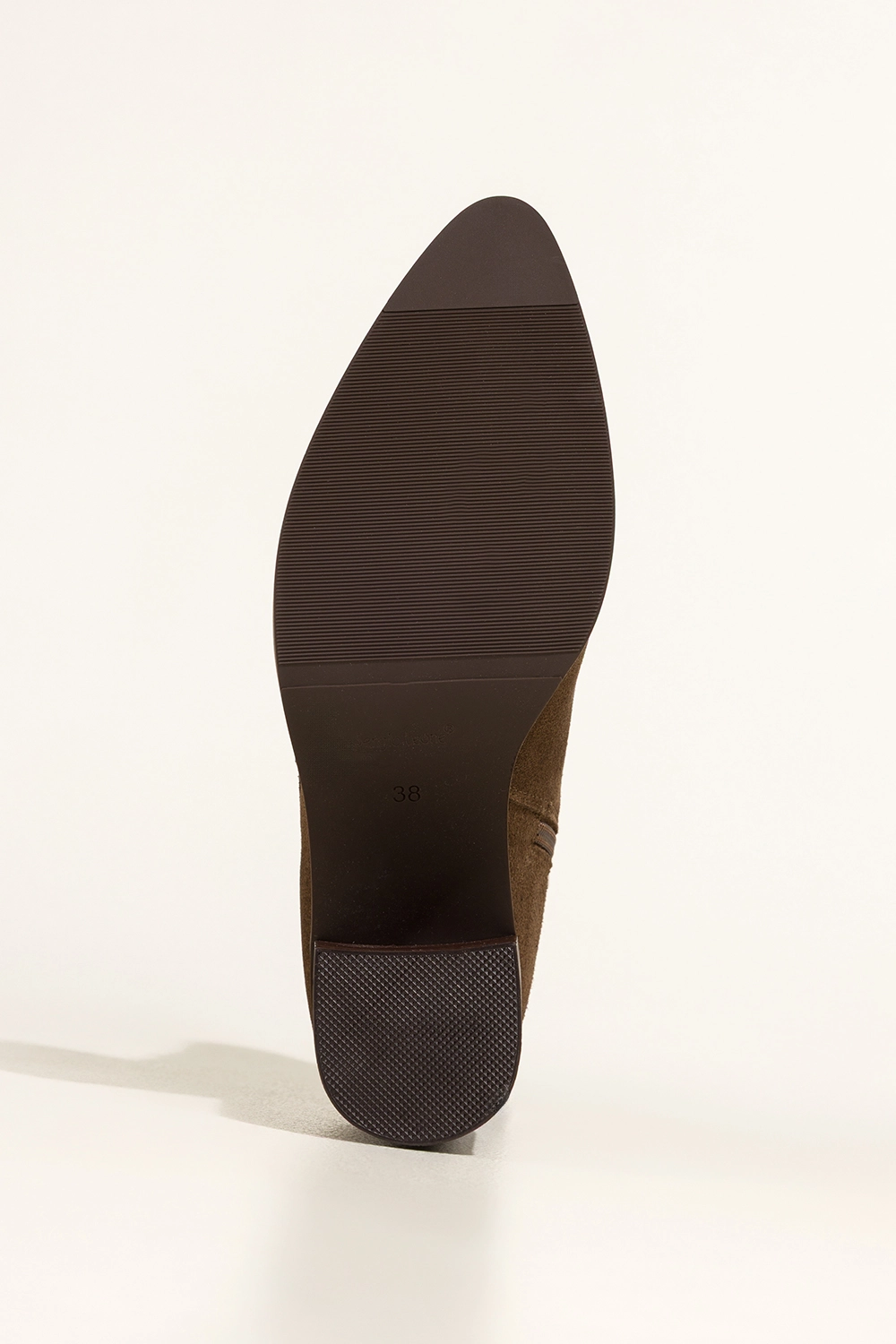• Naturalna skóra zamszowa w modnym odcieniu khaki