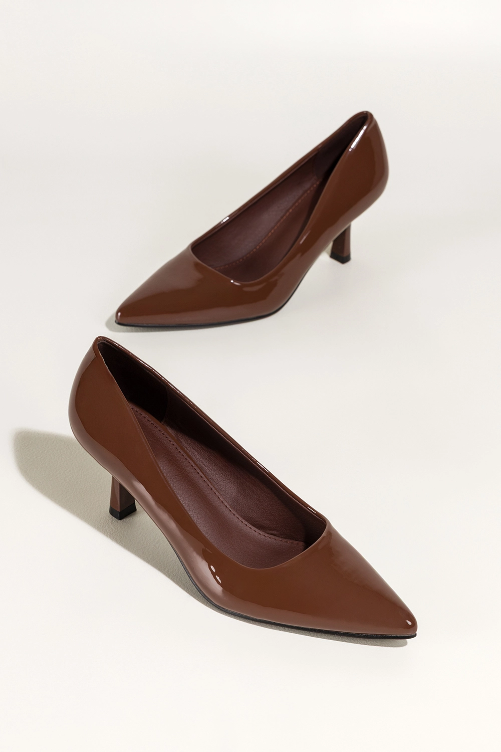 Brązowe czółenka damskie lakierowane szpilki obcas kieliszek Carla model O7-17, styl i komfort. Wykonane z wysokogatunkowej lakierowanej skóry ekologicznej, zachwycają głębokim, błyszczącym kolorem oraz starannością wykończenia. Obcas typu kieliszek o wysokości 7 cm dodaje sylwetce lekkości i wysmukla nogi, jednocześnie zapewniając stabilność podczas chodzenia. Miękka wkładka z ekologicznej skóry podnosi komfort użytkowania, sprawiając, że nawet długie godziny w tych butach nie powodują zmęczenia.