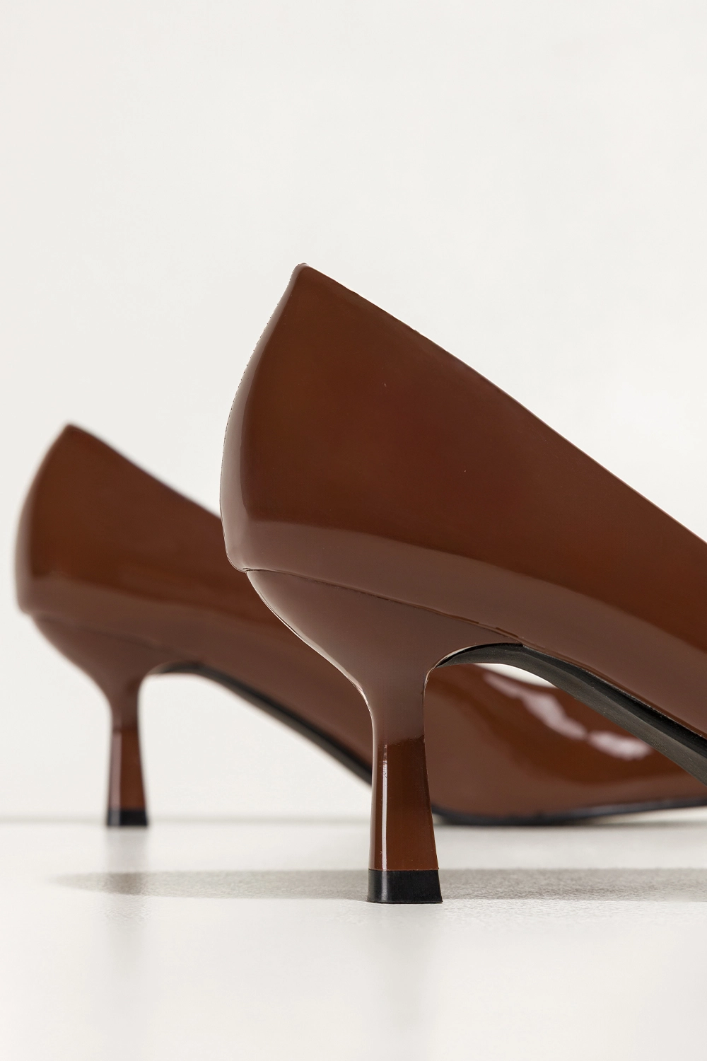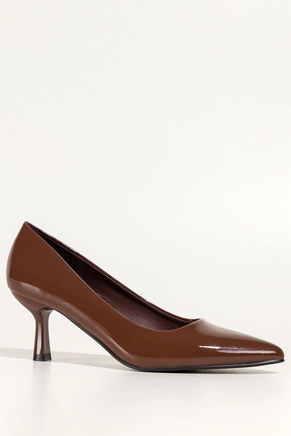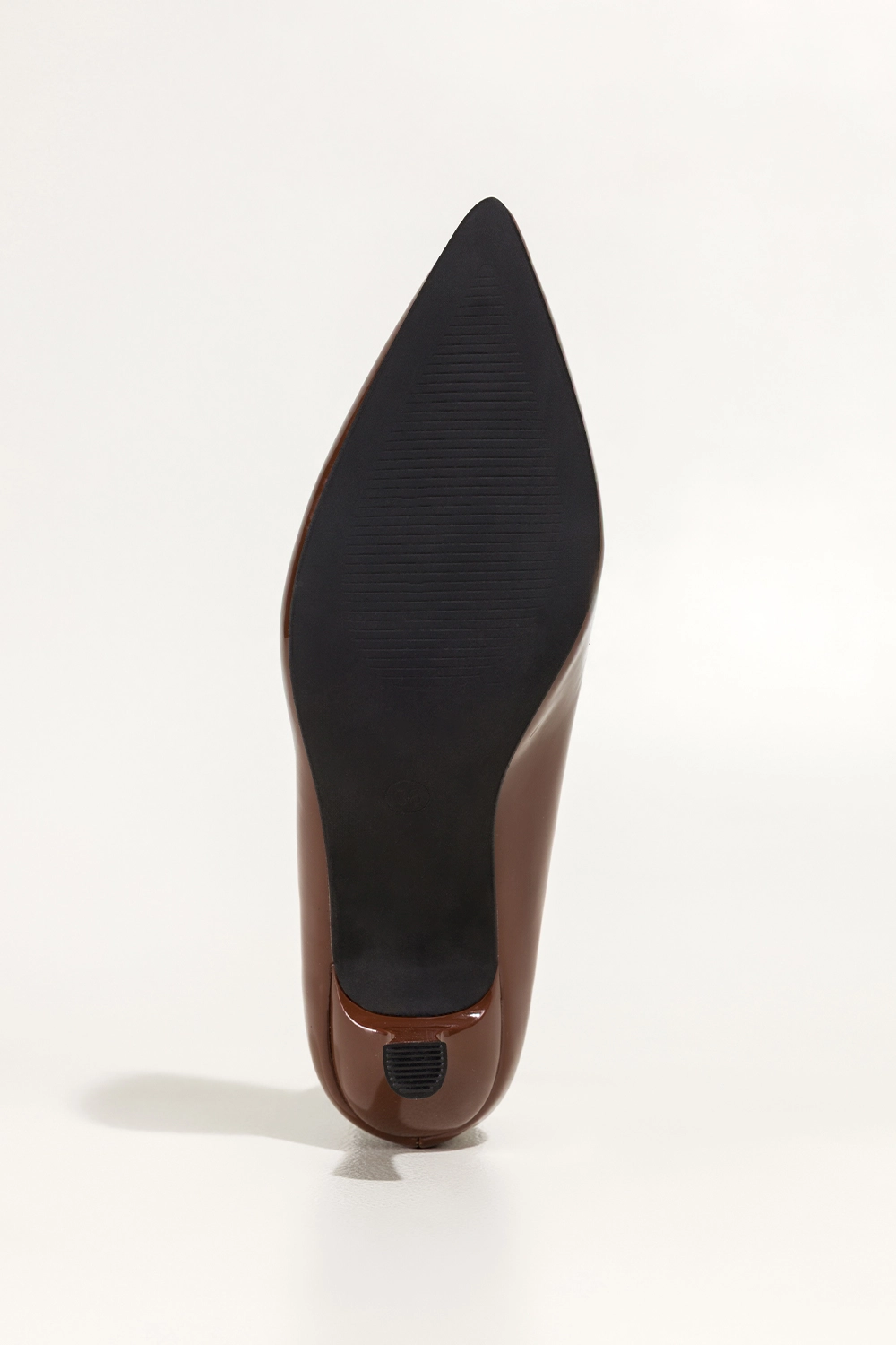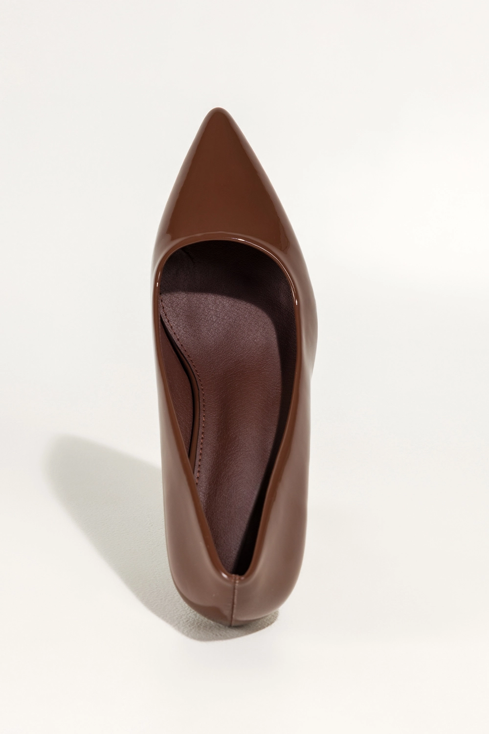Brązowe czółenka damskie lakierowane szpilki obcas kieliszek Carla O7-17
