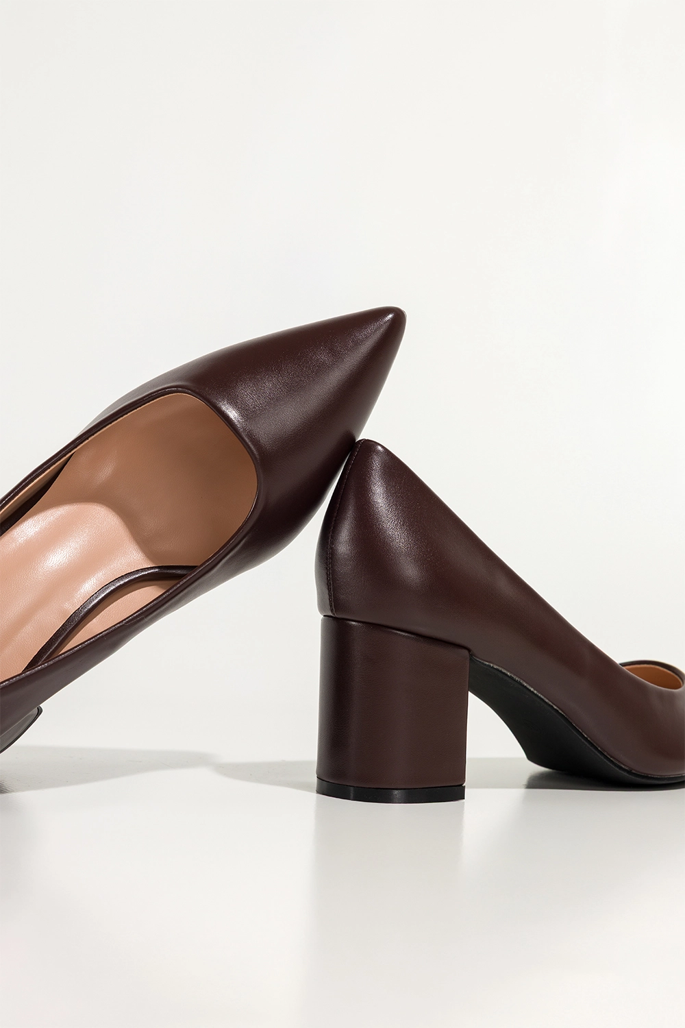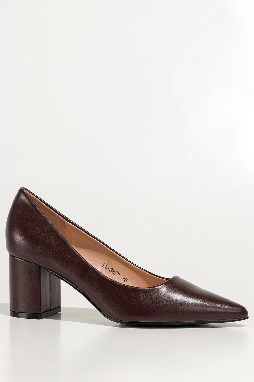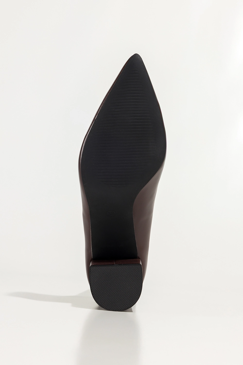 • Obcas typu słupek – pokryty skórą, zapewnia stabilność i komfort