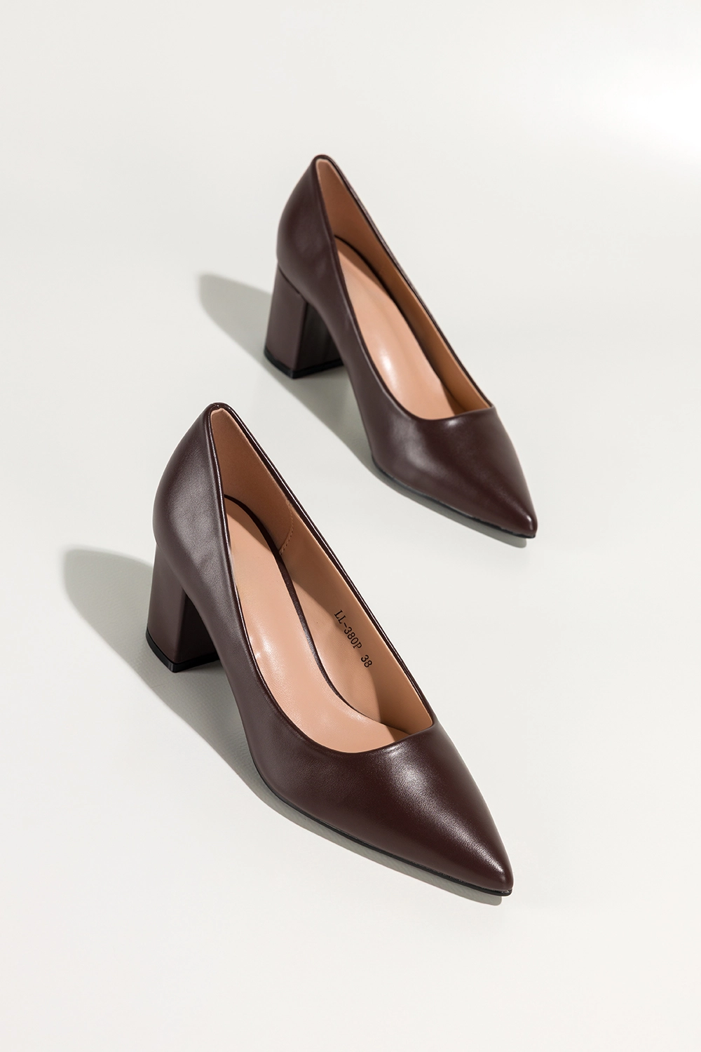 Brązowe czółenka damskie na słupku Carla OO-619K