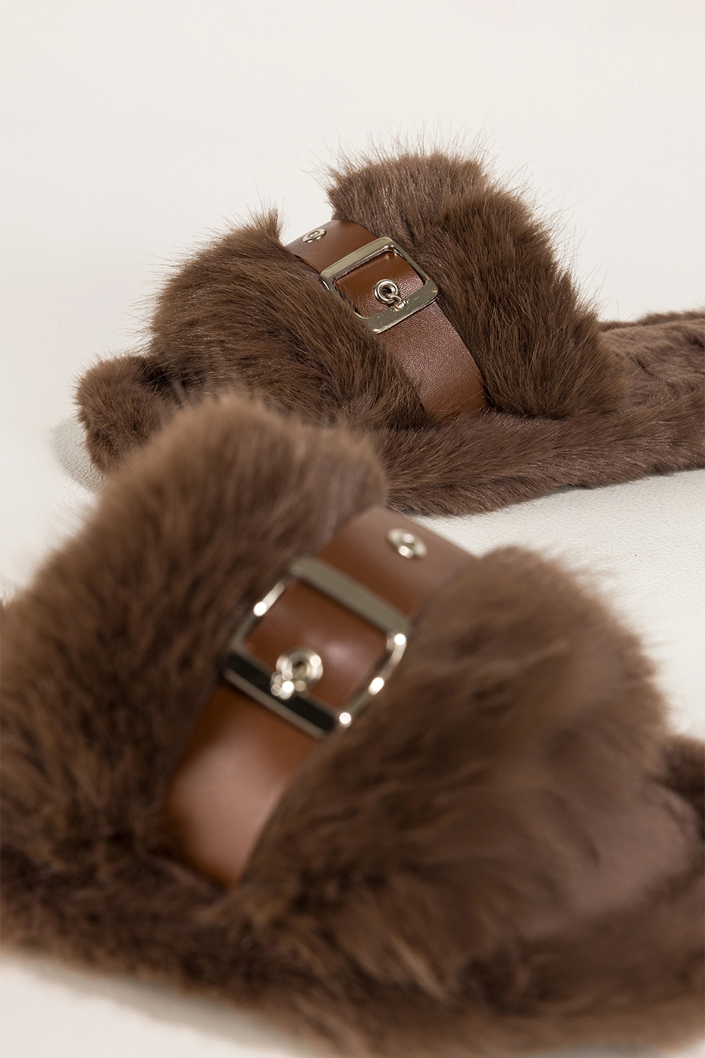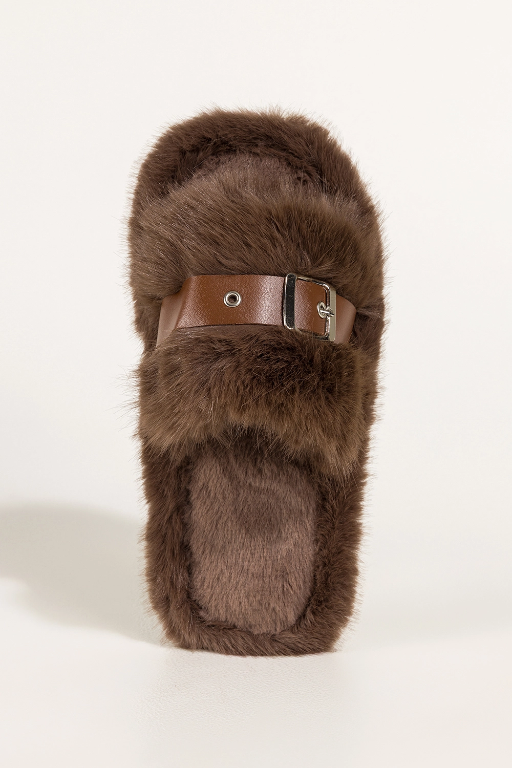 Brązowe kapcie damskie obuwie domowe futrzane brązowy pasek ze srebrną klamerką Casu model NG-40 to kwintesencja domowego komfortu połączonego z modnym designem. Zaprojektowane z myślą o kobietach ceniących wysoką jakość, estetykę i wygodę, te kapcie to nie tylko praktyczne obuwie, ale również wyjątkowy dodatek do codziennego relaksu. Wykonane z miękkiego, przyjemnego w dotyku futerka zarówno na zewnątrz, jak i w środku, zapewniają niesamowitą przyjemność noszenia przez cały dzień. Ich nowoczesny wygląd wzbogacony został o brązowy pasek z ekologicznej skóry ze srebrną klamerką, który nadaje całości subtelnej elegancji. Ten model to idealne rozwiązanie na chłodne poranki i wieczory, gdy najważniejsze jest ciepło, komfort i styl.