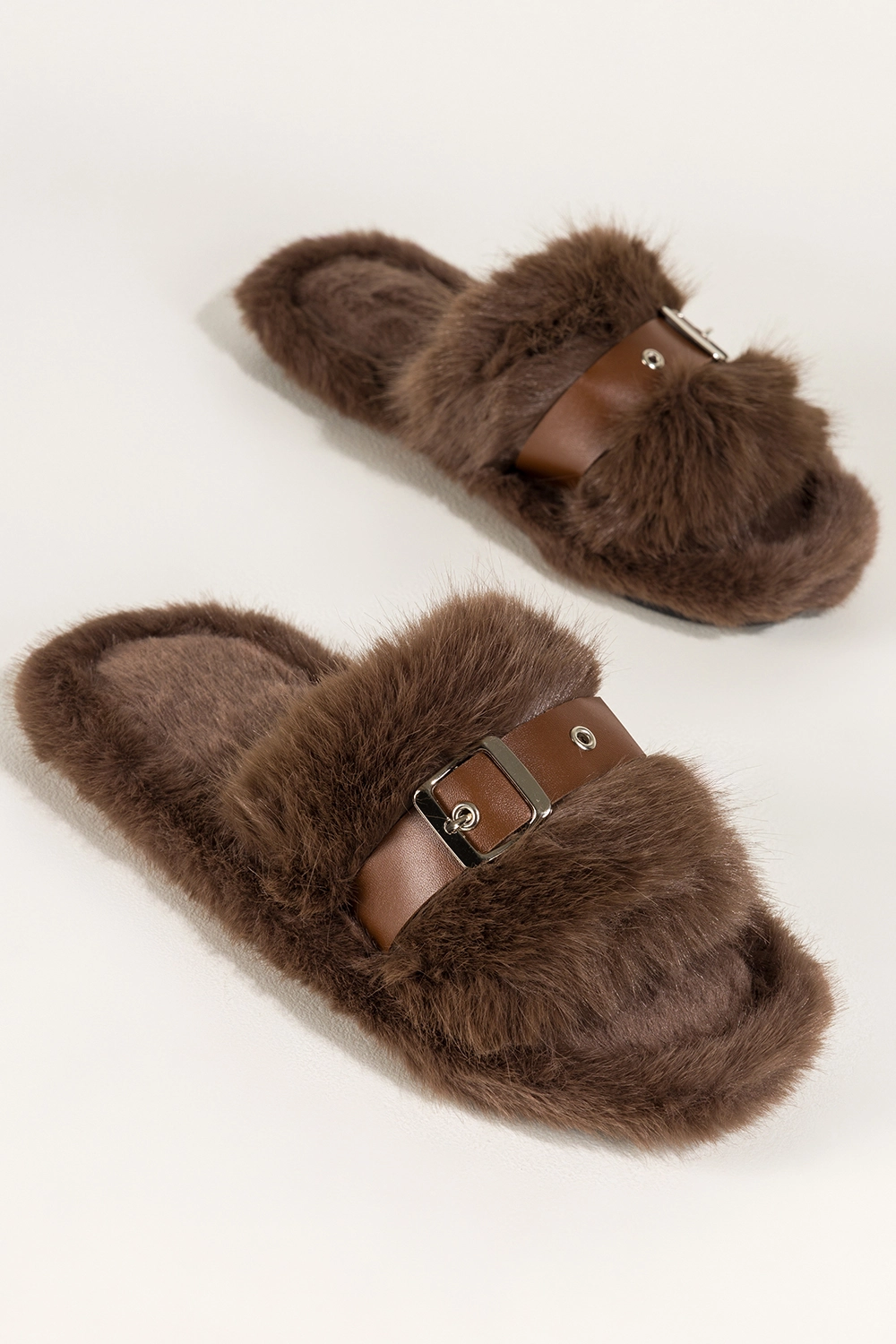 Uniwersalny styl i łatwość dopasowania do różnych stylizacji domowych to jeden z największych atutów tych kapci. Brązowy odcień nadaje im ponadczasowego charakteru i sprawia, że świetnie komponują się z różnymi kolorami szlafroków, piżam czy dresów. Możesz je nosić niezależnie od pory roku – latem zapewnią przewiewność dzięki odkrytemu noskowi, a zimą otulą stopy miękkością futerka. Dzięki wsuwanej konstrukcji ich zakładanie jest szybkie i wygodne – idealne do codziennego użytku bez potrzeby schylania się. Niezależnie od tego, czy wypoczywasz przy kominku, przygotowujesz śniadanie, czy spędzasz leniwy wieczór z książką – te kapcie będą Twoim niezawodnym towarzyszem domowego relaksu.