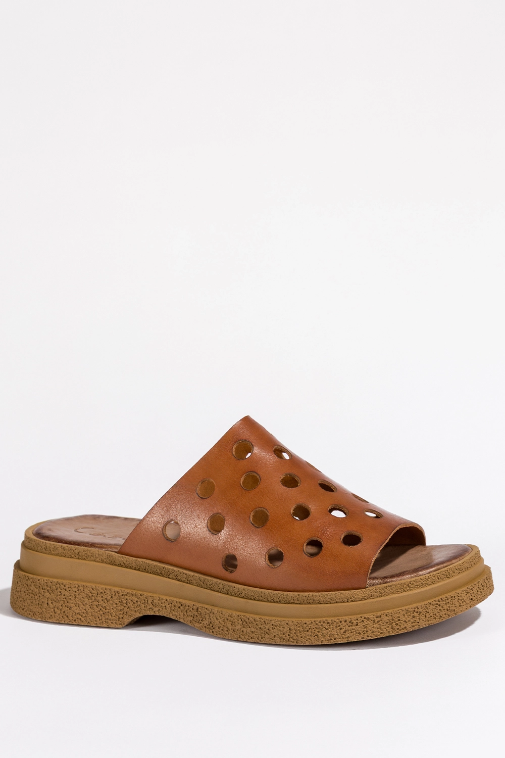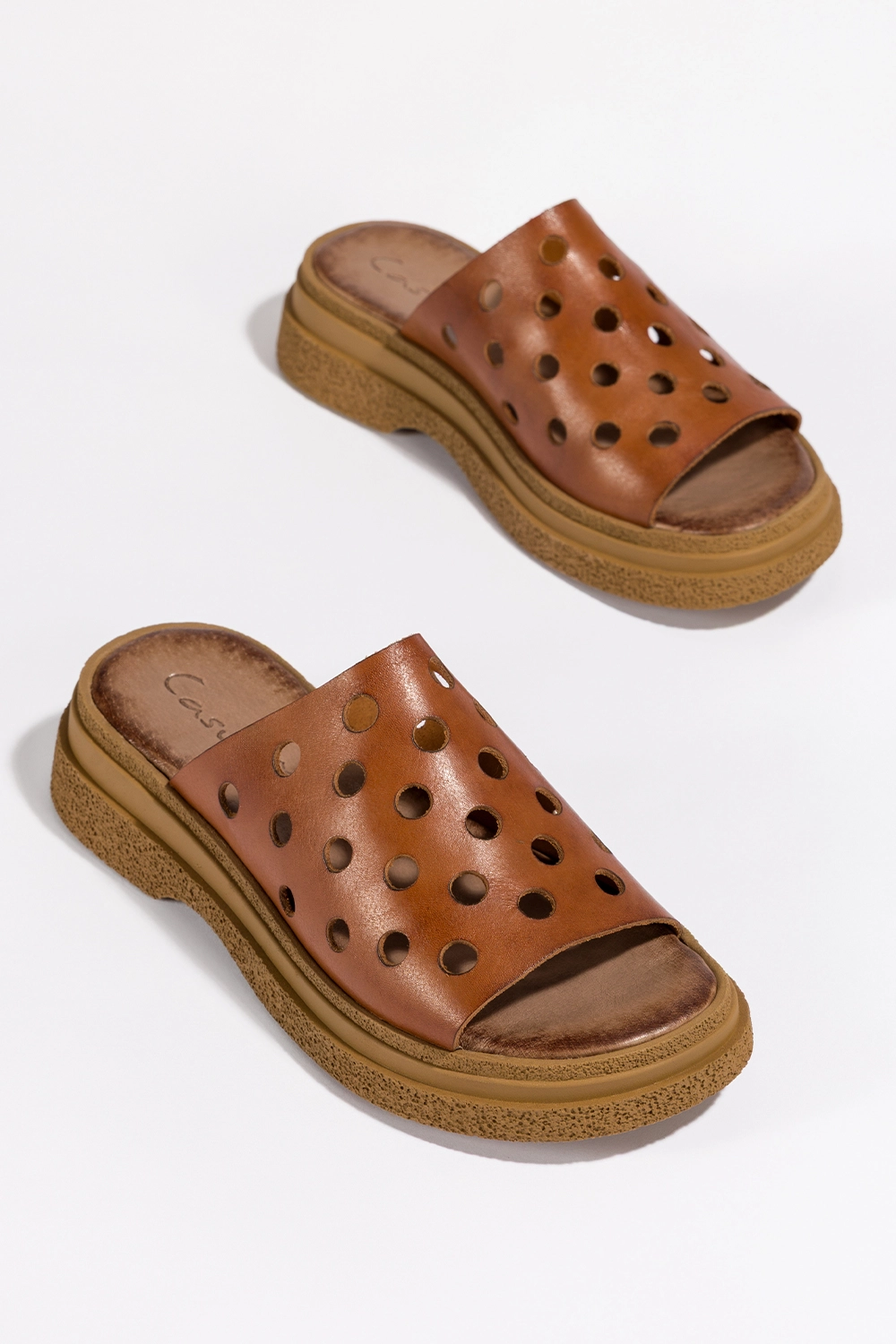 Brązowe klapki skórzane damskie ażurowe na koturnie PRODUKT POLSKI Casu 916