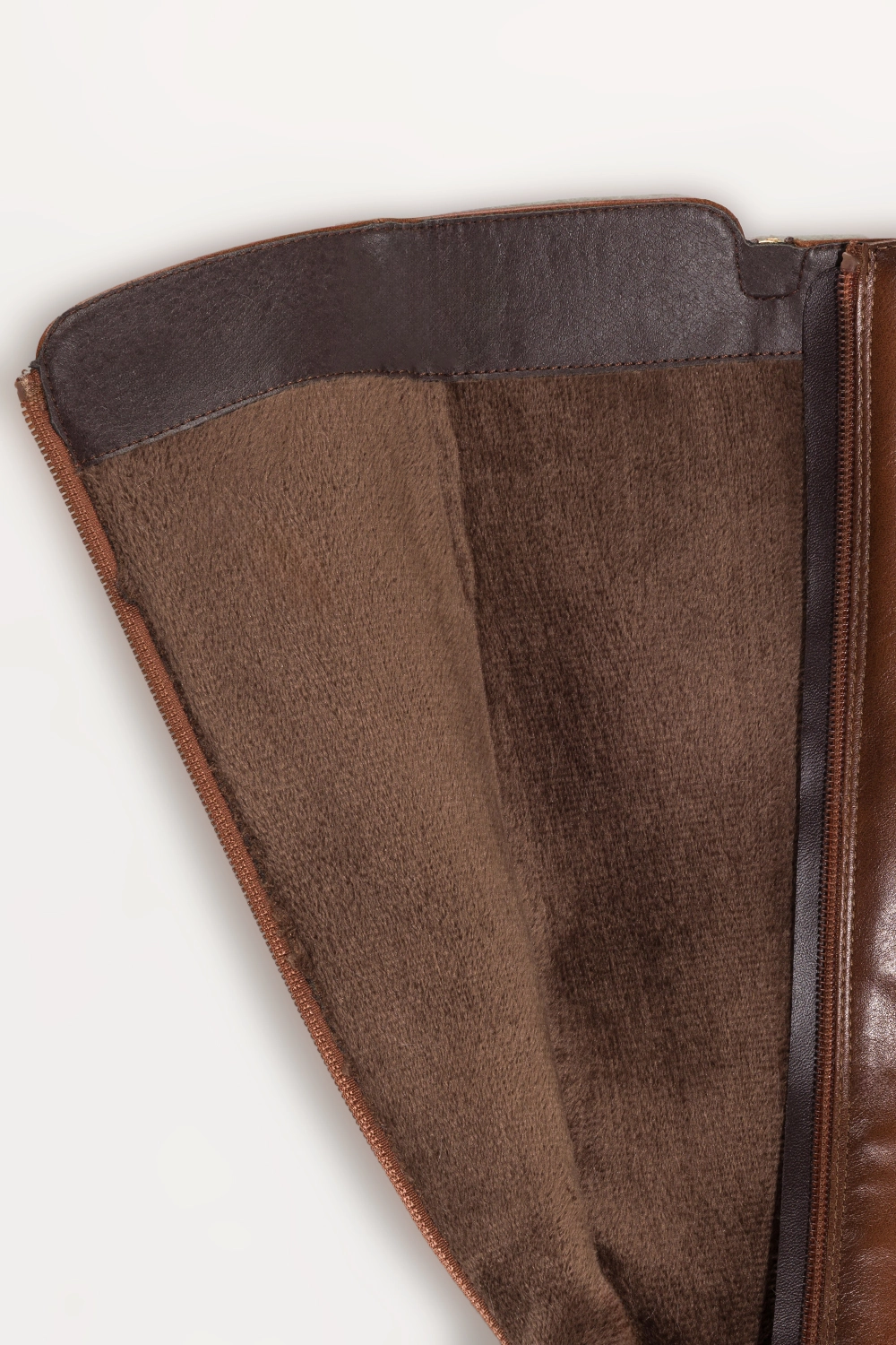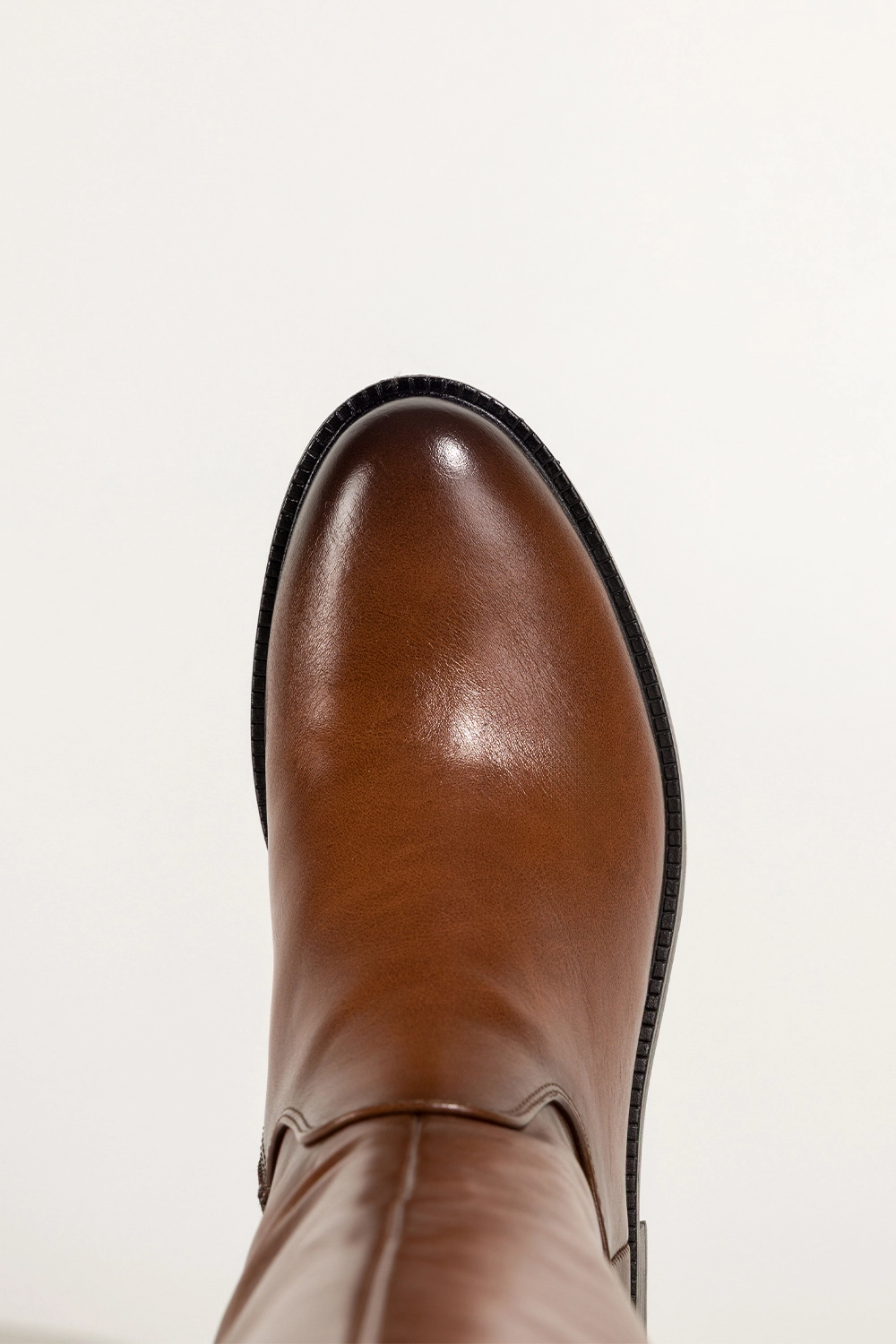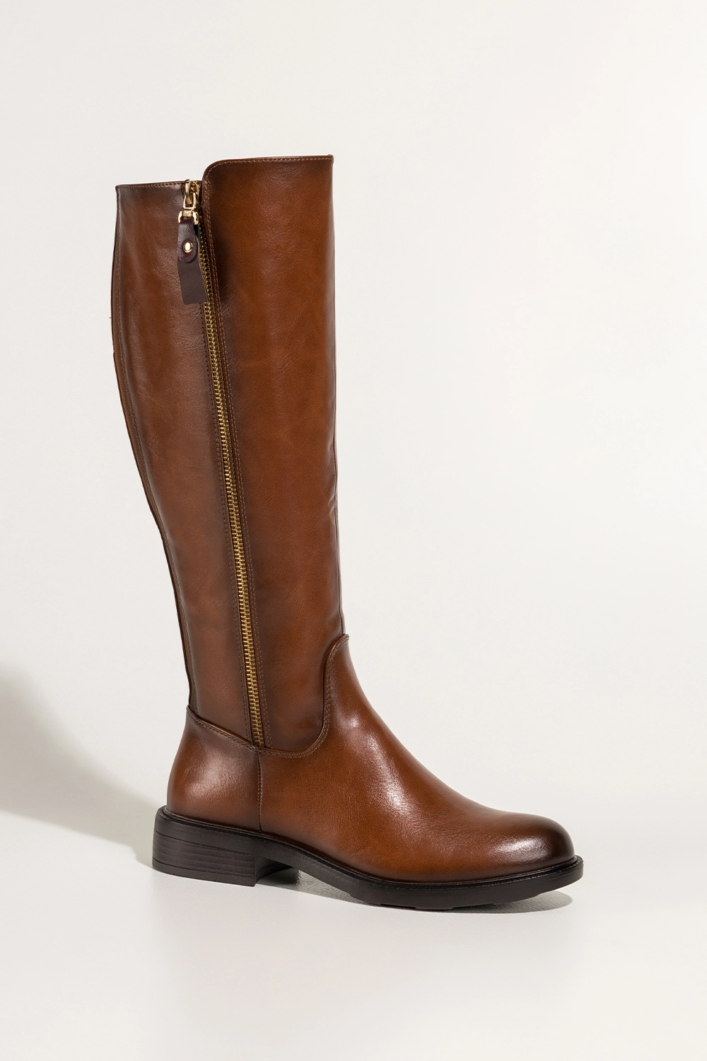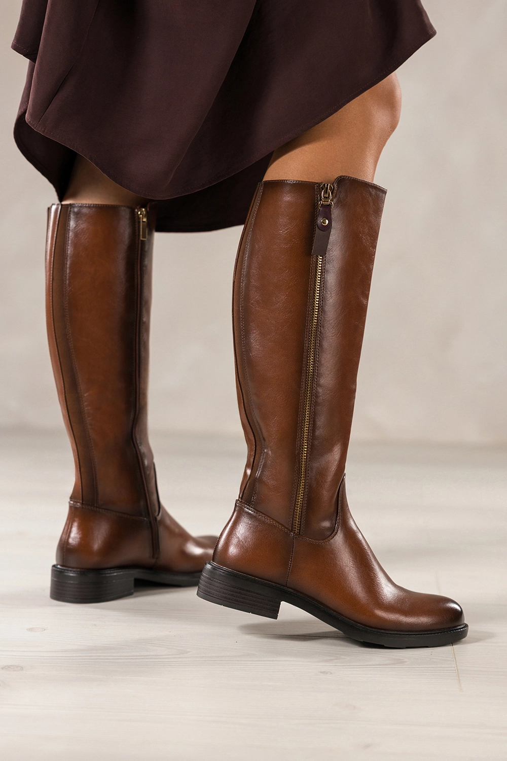 Model wyróżnia się klasycznym, brązowym odcieniem, który znakomicie wpisuje się w jesienno-zimowe stylizacje i doskonale komponuje się zarówno z eleganckim płaszczem, jak i casualową parką. Zaokrąglony nosek oraz subtelny ozdobny zamek na zewnętrznej części cholewki nadają im niepowtarzalnego charakteru i delikatnej kobiecości. Niski obcas w formie klocka o wysokości 3,5 cm to idealne rozwiązanie dla kobiet ceniących stabilność i wygodę, nie rezygnując przy tym z estetycznego wyglądu. Dzięki swojej ponadczasowej formie, kozaki te sprawdzą się zarówno na co dzień, jak i podczas bardziej formalnych okazji, co czyni je niezwykle wszechstronnym elementem damskiej garderoby. Wysokość cholewki przed kolano optycznie wydłuża nogi i dodaje sylwetce lekkości, niezależnie od typu figury.