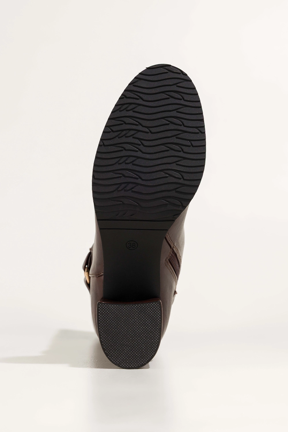 Te stylowe kozaki to idealny wybór dla kobiet, które cenią ponadczasowe wzornictwo i subtelną elegancję. Zaokrąglony nosek i smukła linia cholewki pięknie wydłużają sylwetkę, a elastyczna guma po wewnętrznej stronie ułatwia dopasowanie do różnych typów łydek. Ozdobny pasek z przyciągającą uwagę złotą aplikacją dodaje luksusowego charakteru każdej stylizacji, zarówno codziennej, jak i wieczorowej.
