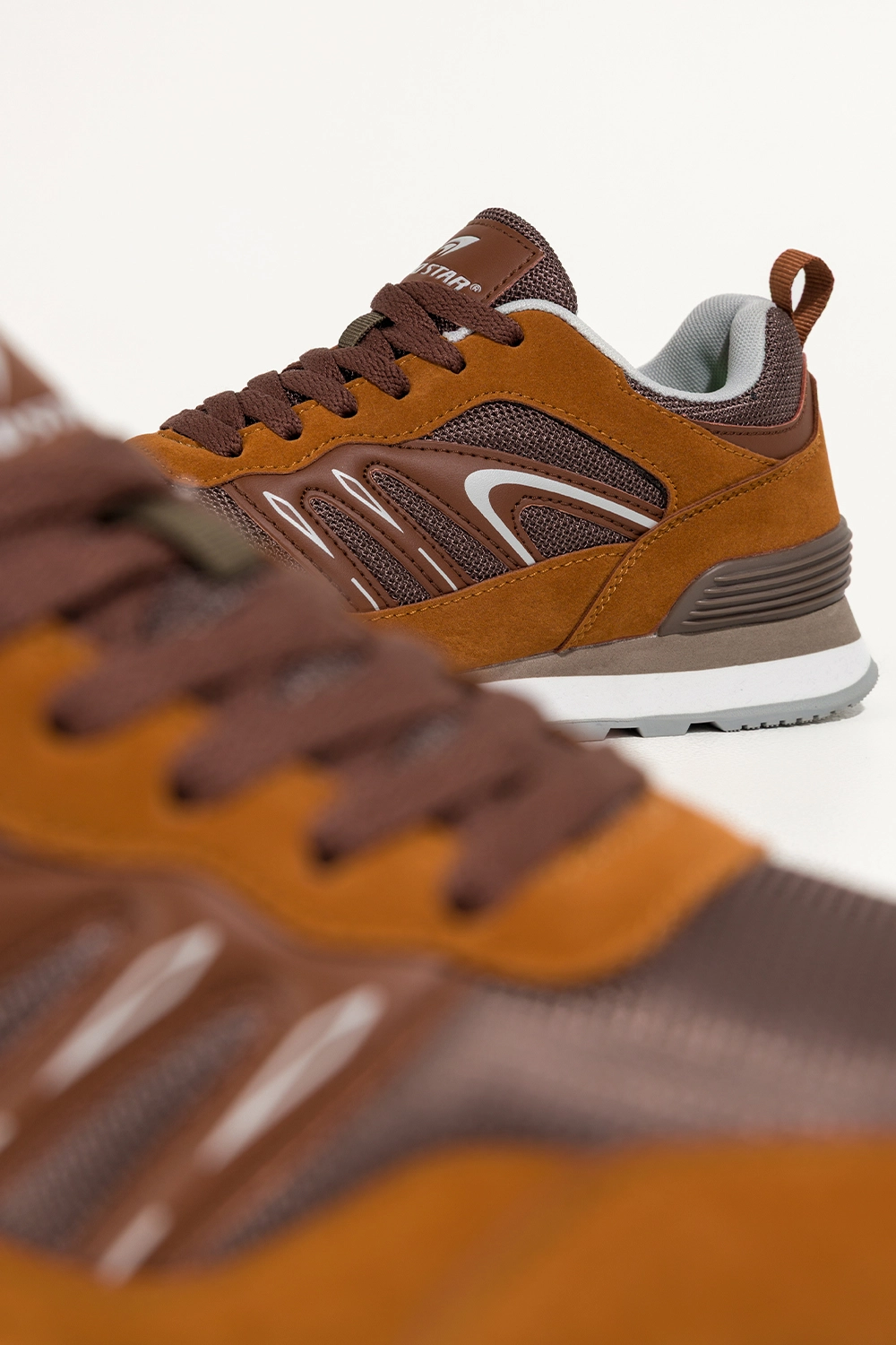 Brązowe sneakersy damskie buty sportowe na żłobionej podeszwie sznurowane ciemnobrązowe wstawki Casu model 7398-3D to propozycja dla kobiet, które chcą połączyć swobodny styl z wyrazistym detalem. Ciepły brąz przełamany ciemniejszymi wstawkami tworzy spójną, nowoczesną całość, a żłobiona płaska podeszwa nadaje butom sportowego charakteru i wizualnej lekkości. To model, który przyciąga spojrzenia subtelną fakturą i dopracowaną formą, idealnie wpisując się w miejski rytm.