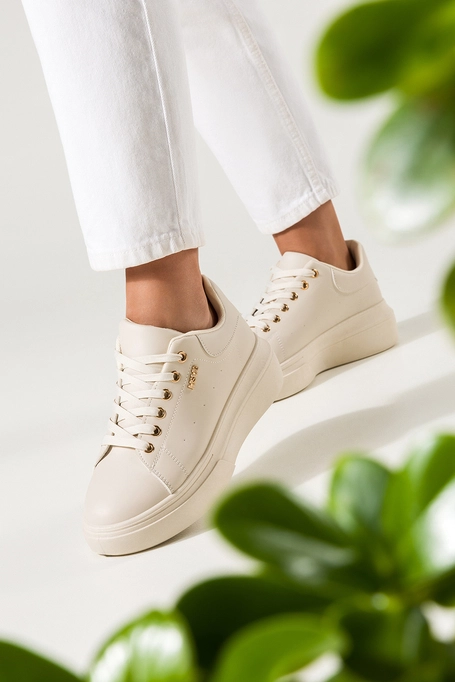 Beżowe sneakersy damskie buty sportowe na platformie sznurowane Casu 0080-3