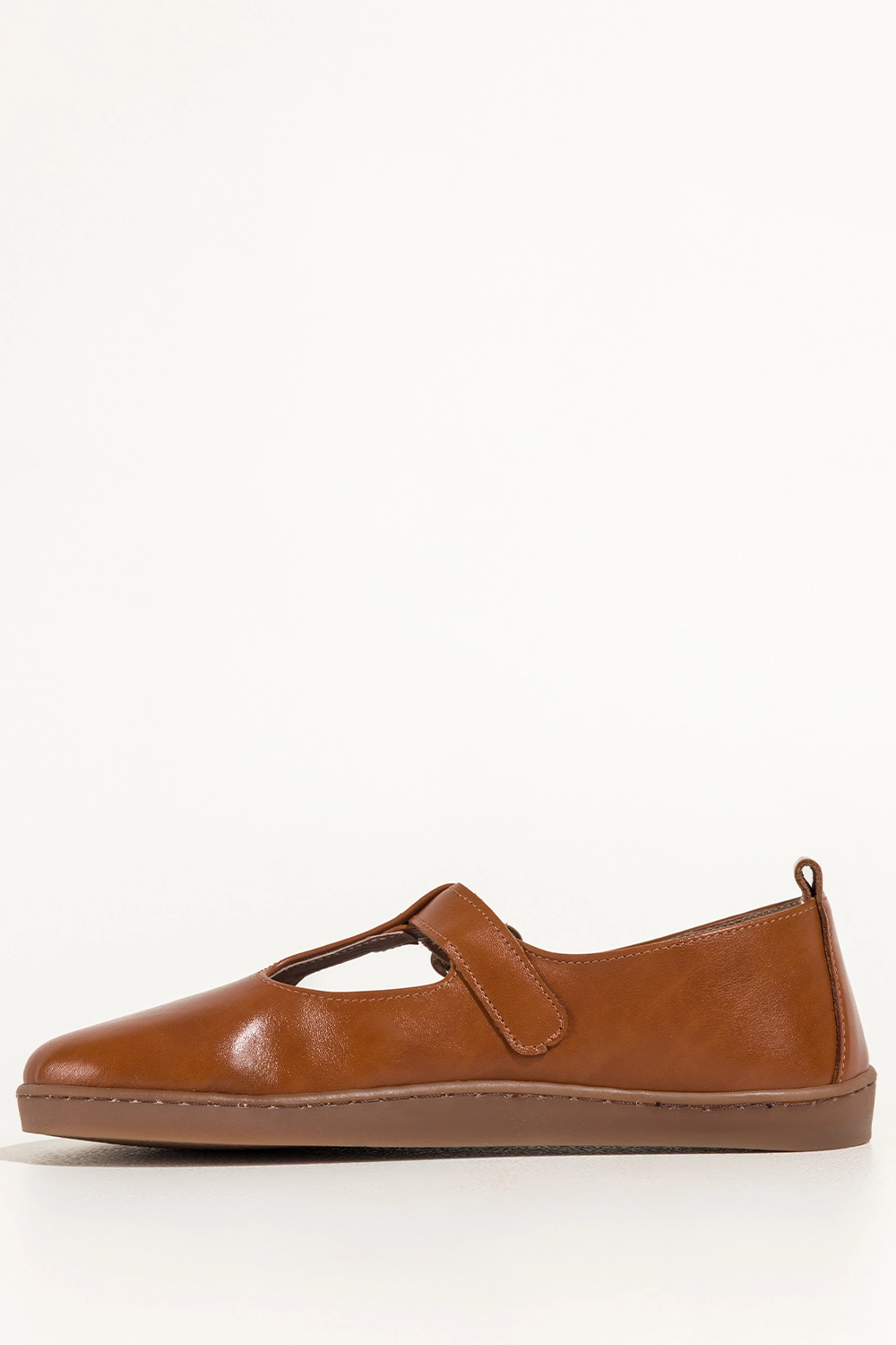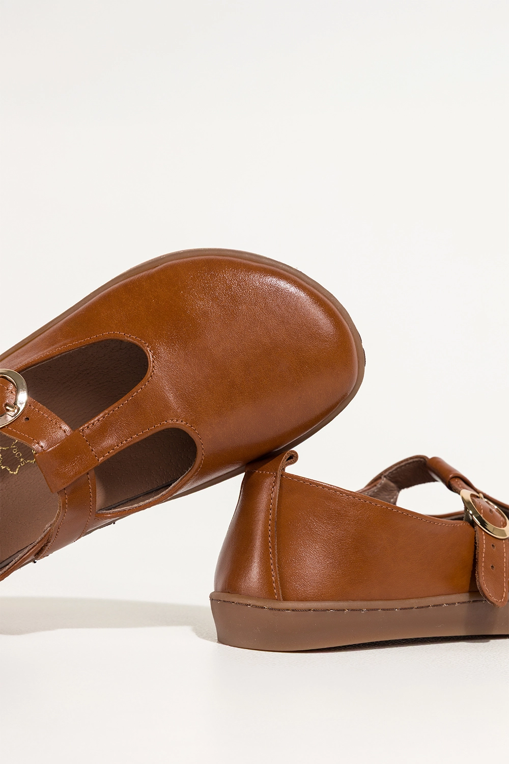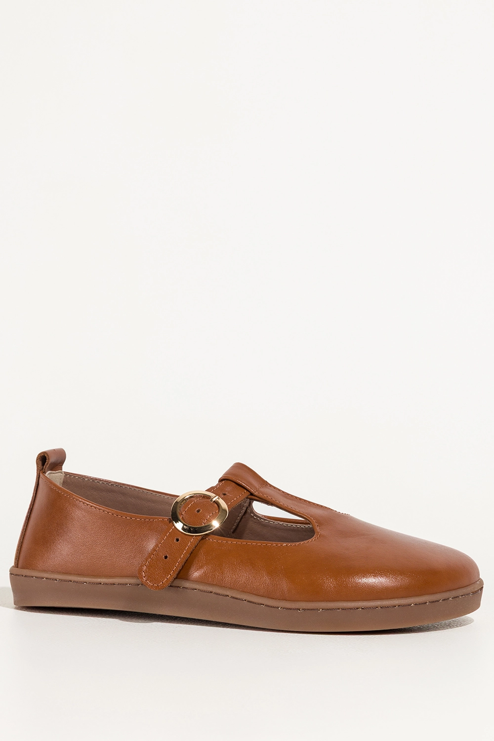Camelowe buty barefoot skórzane damskie szerokie na elastycznej płaskiej podeszwie wycięta cholewka pasek ze złotą klamrą PRODUKT POLSKI Casu 89792