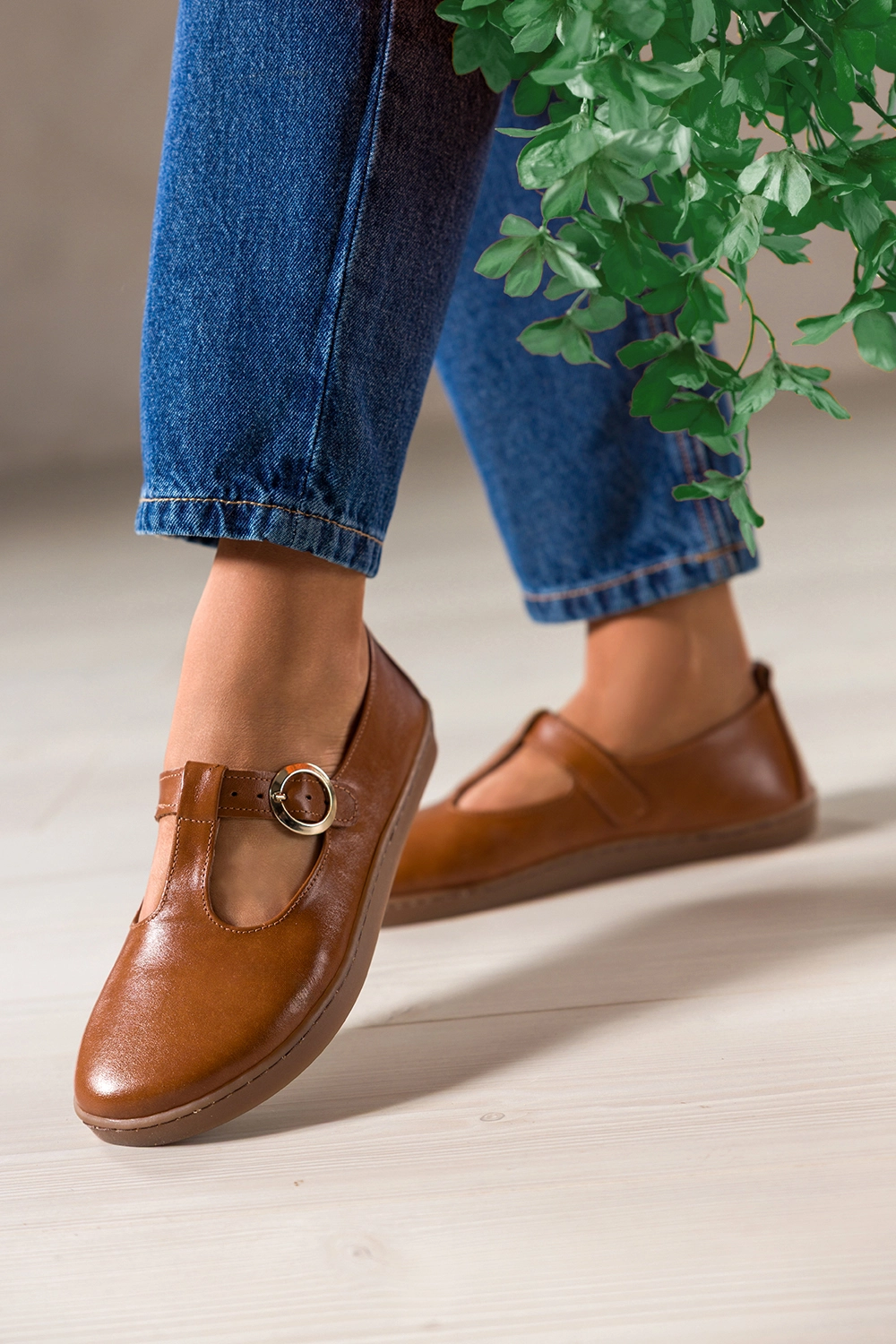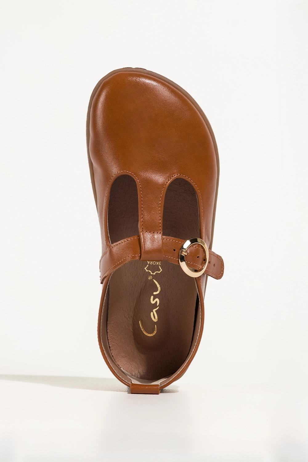 Camelowe buty barefoot skórzane damskie szerokie na elastycznej płaskiej podeszwie wycięta cholewka pasek ze złotą klamrą PRODUKT POLSKI Casu model 89792 to połączenie naturalnej swobody ruchu z wyrafinowaną estetyką. Ciepły, camelowy odcień skóry pięknie podkreśla jej gładką fakturę, a wycięta cholewka i złota klamra dodają całości lekkości oraz subtelnej elegancji. To model, który od pierwszego spojrzenia komunikuje komfort, styl i świadomy wybór.