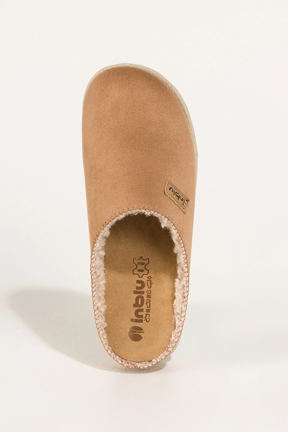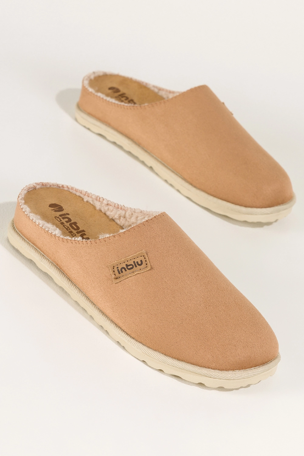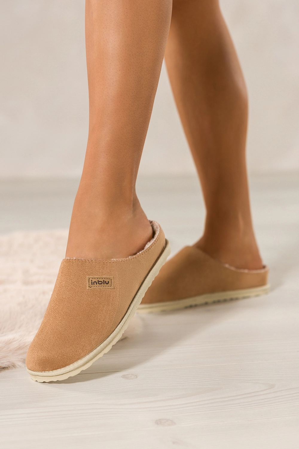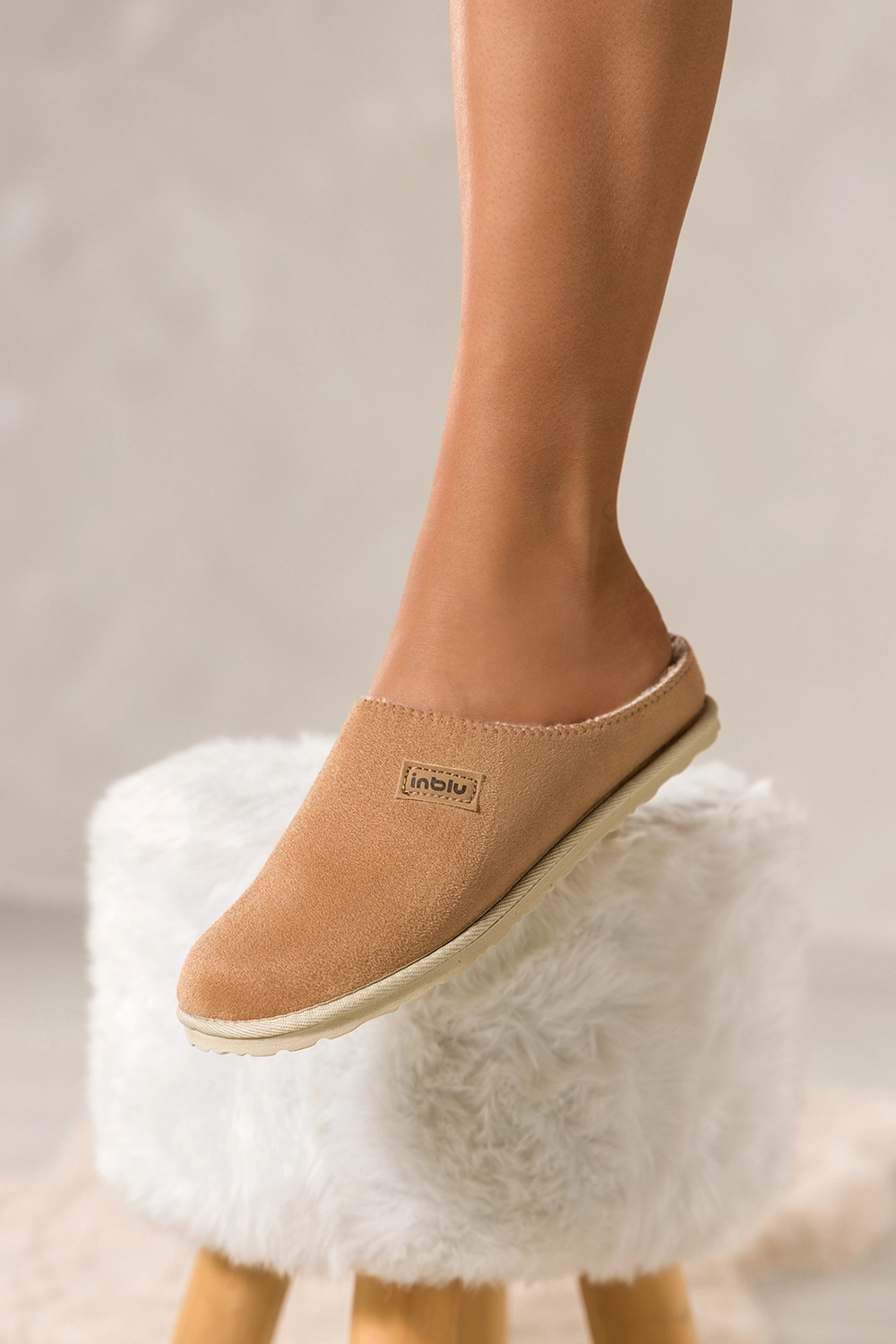 Camelowe kapcie damskie Inblu obuwie domowe z wyjmowaną skórzaną wkładką model XH999954 synonim wygody w domowym wydaniu. Wykonane z wysokogatunkowego materiału, z miękkim wnętrzem z materiału typu baranek, otulają stopy przyjemnym ciepłem, zapewniając relaks po całym dniu. Miękka, wyjmowana wkładka ze skóry naturalnej gwarantuje idealne dopasowanie i wygodę.