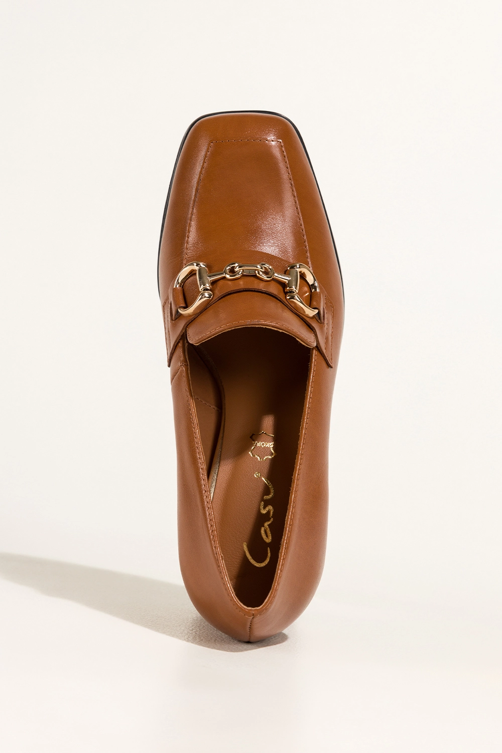 Camelowe mokasyny skórzane damskie na ozdobnym klocku złota sprzączka PRODUKT POLSKI Casu model 7317-819, doskonały wybór dla kobiet ceniących ponadczasowy styl i wysoką jakość. Wykonane z miękkiej, wysokogatunkowej skóry naturalnej, gwarantują trwałość, komfort noszenia oraz luksusowy wygląd przez długi czas. Skórzana wkładka dopasowuje się do stopy, zapewniając wygodę nawet podczas wielogodzinnego użytkowania.