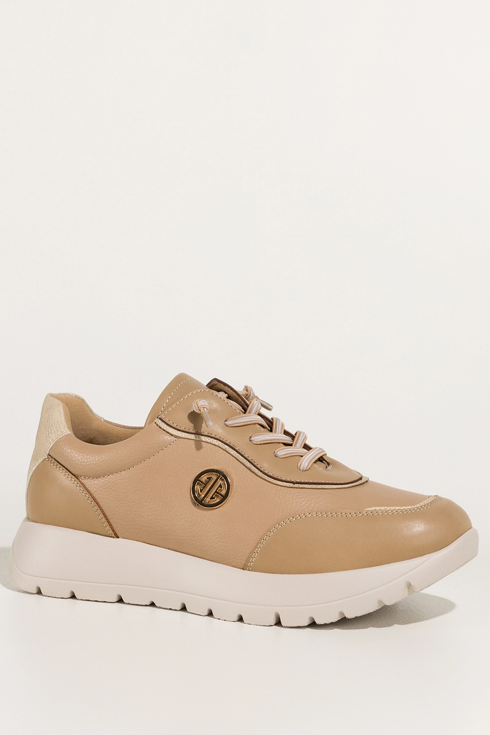 Camelowe sneakersy to model, który z łatwością dopasujesz do różnych elementów garderoby. Ich subtelna kolorystyka z eleganckimi, złotymi akcentami doskonale komponuje się zarówno z codziennymi jeansami, jak i z bardziej formalnymi stylizacjami, np. spodniami materiałowymi czy sukienką midi. Te buty będą świetnym wyborem do pracy, na spacer, zakupy czy spotkanie ze znajomymi – łączą w sobie modowy sznyt i sportowy luz. W zależności od dodatków i ubioru, sneakersy potrafią zmienić swój charakter – od casualowego po bardziej miejski, nawet lekko glamour. To buty, które doskonale odnajdą się w garderobie każdej kobiety, niezależnie od wieku i stylu życia.