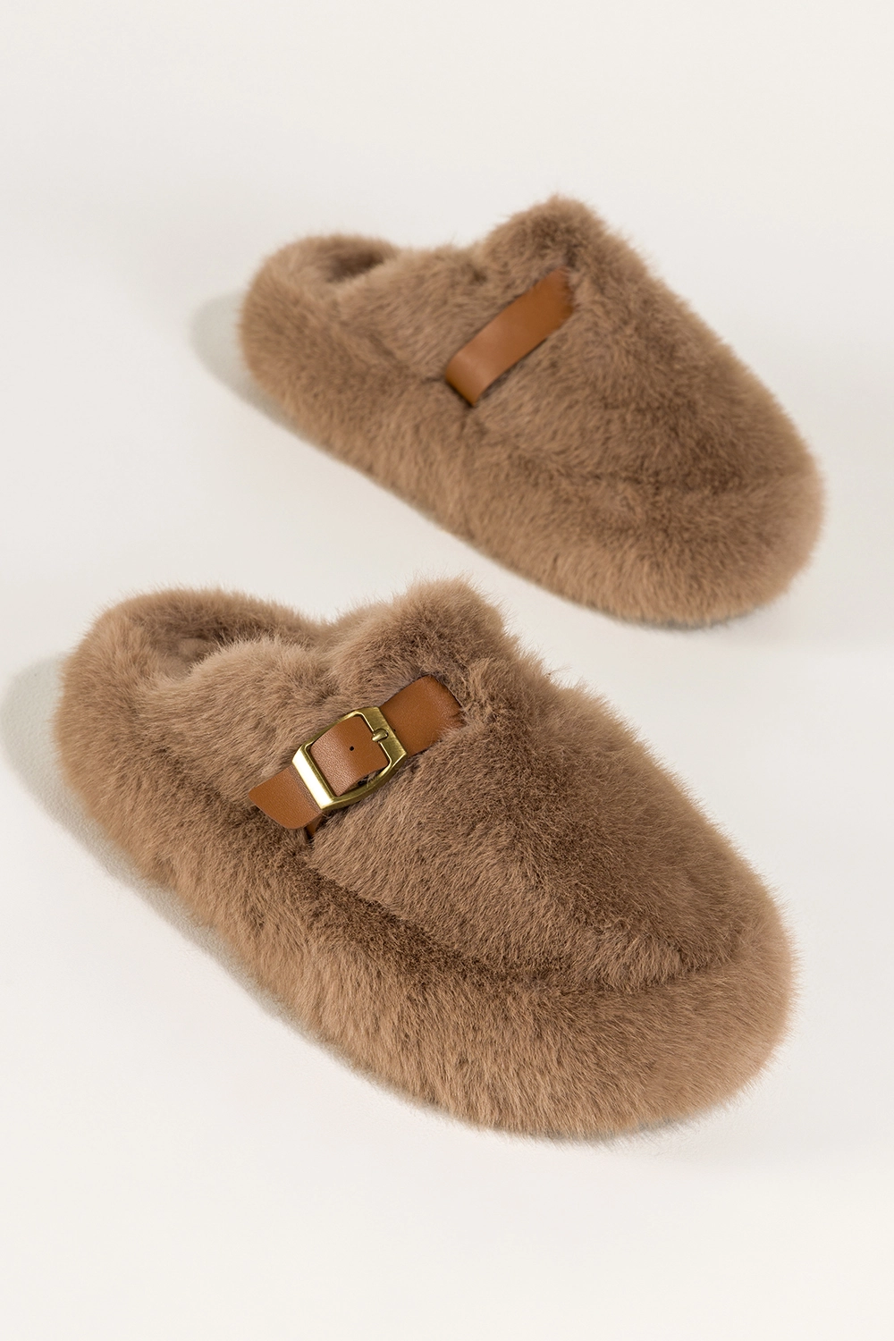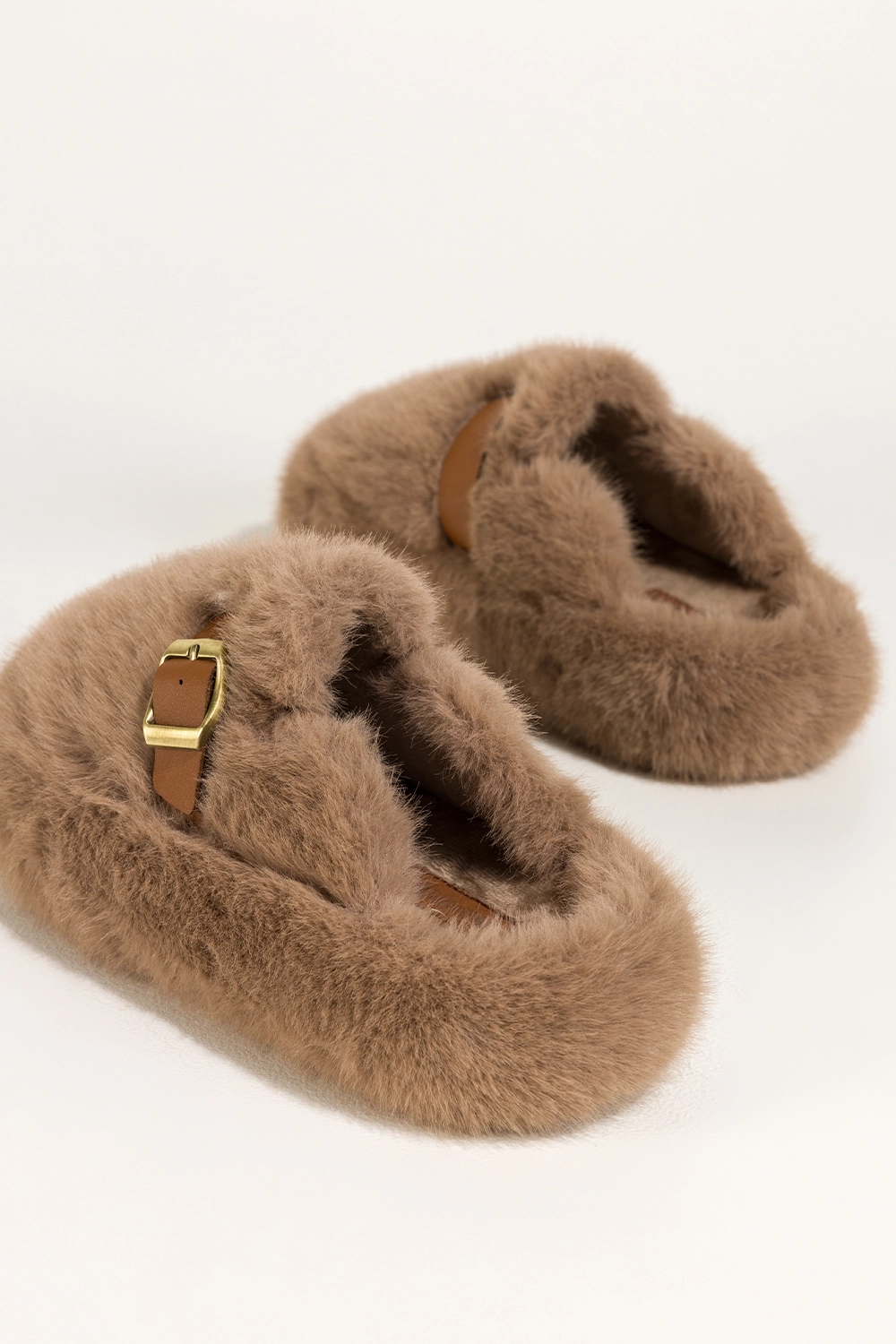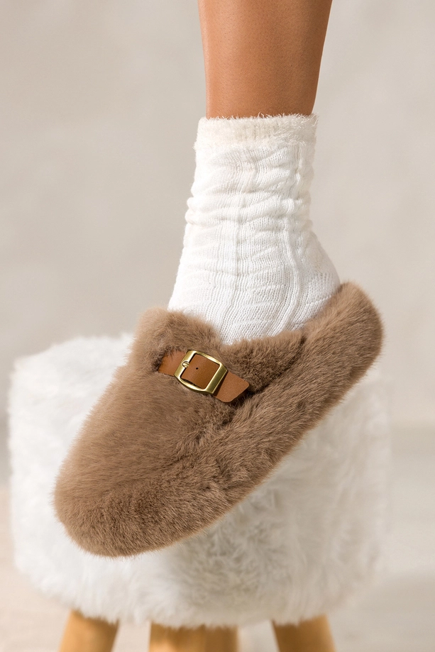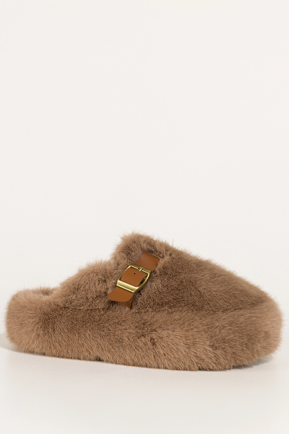 Ciemnobeżowe kapcie damskie obuwie domowe futrzane na platformie ozdobny pasek ze złotą klamrą Carla model UO969 to wyjątkowe połączenie elegancji, komfortu i nowoczesnego stylu, które sprawia, że nawet chwile spędzone w domowym zaciszu mogą być pełne luksusu. Wykonane z niezwykle miękkiego, przyjemnego w dotyku futerka zarówno na zewnątrz, jak i wewnątrz, te kapcie otulają stopy niczym delikatny koc, oferując niesamowite uczucie ciepła i wygody. Dzięki modnej platformie pokrytej futerkiem oraz wyrazistemu, ozdobnemu paskowi ze złotą klamrą, model zyskuje stylowy, a zarazem nietuzinkowy charakter. To nie tylko obuwie domowe — to manifest komfortu i dobrego gustu, który przyciąga spojrzenia i budzi zachwyt.
