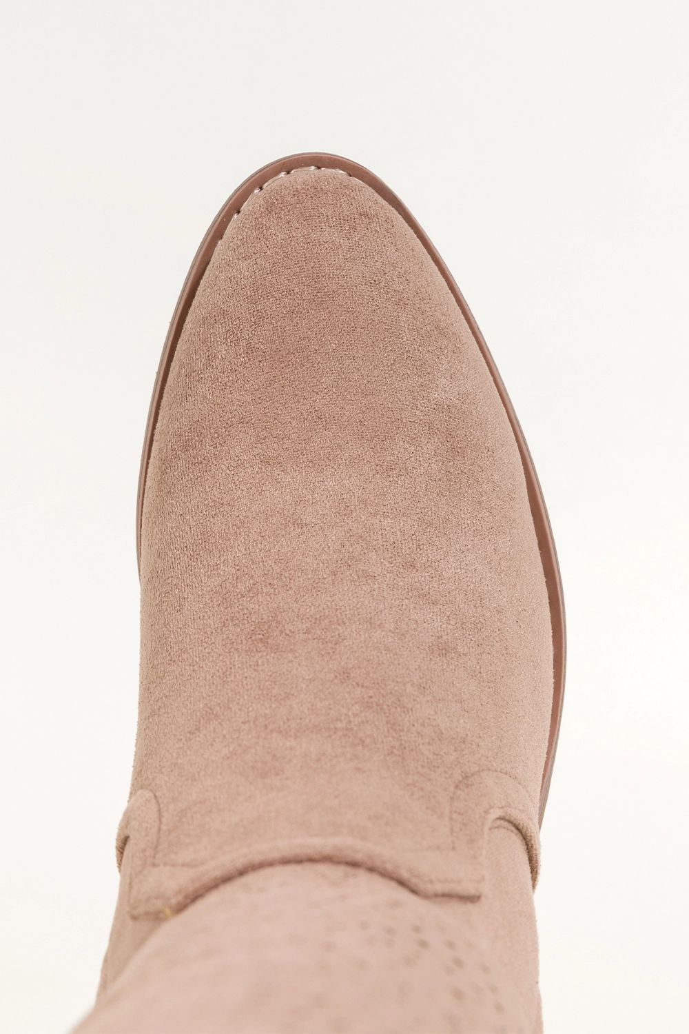 Wykonane z wysokogatunkowego zamszu ekologicznego prezentują się szlachetnie, a ich struktura zapewnia przyjemną miękkość podczas noszenia. Wewnątrz znajduje się komfortowa wkładka ze skóry ekologicznej, która dba o wygodę stóp przez cały dzień. Stabilny słupek podkreśla sylwetkę i równocześnie gwarantuje pewny krok, a praktyczny zamek ułatwia szybkie zakładanie.