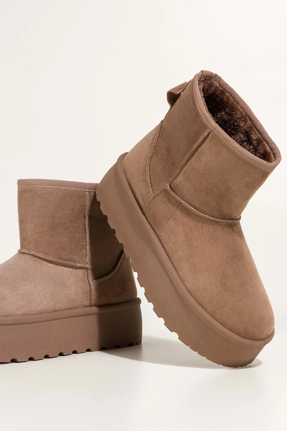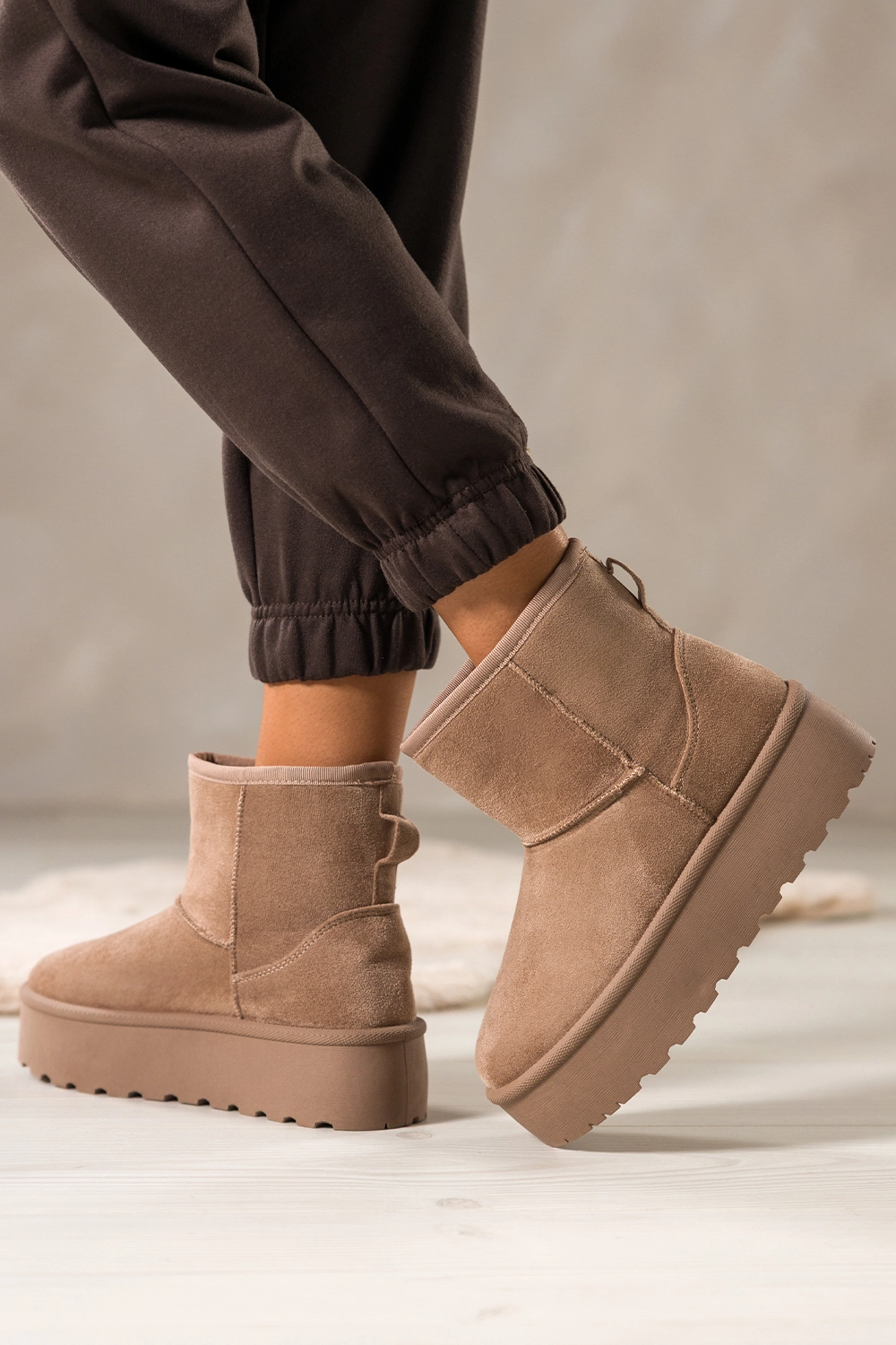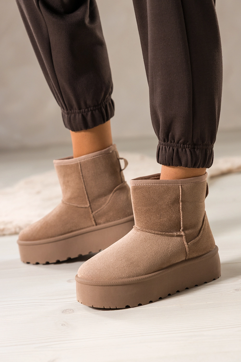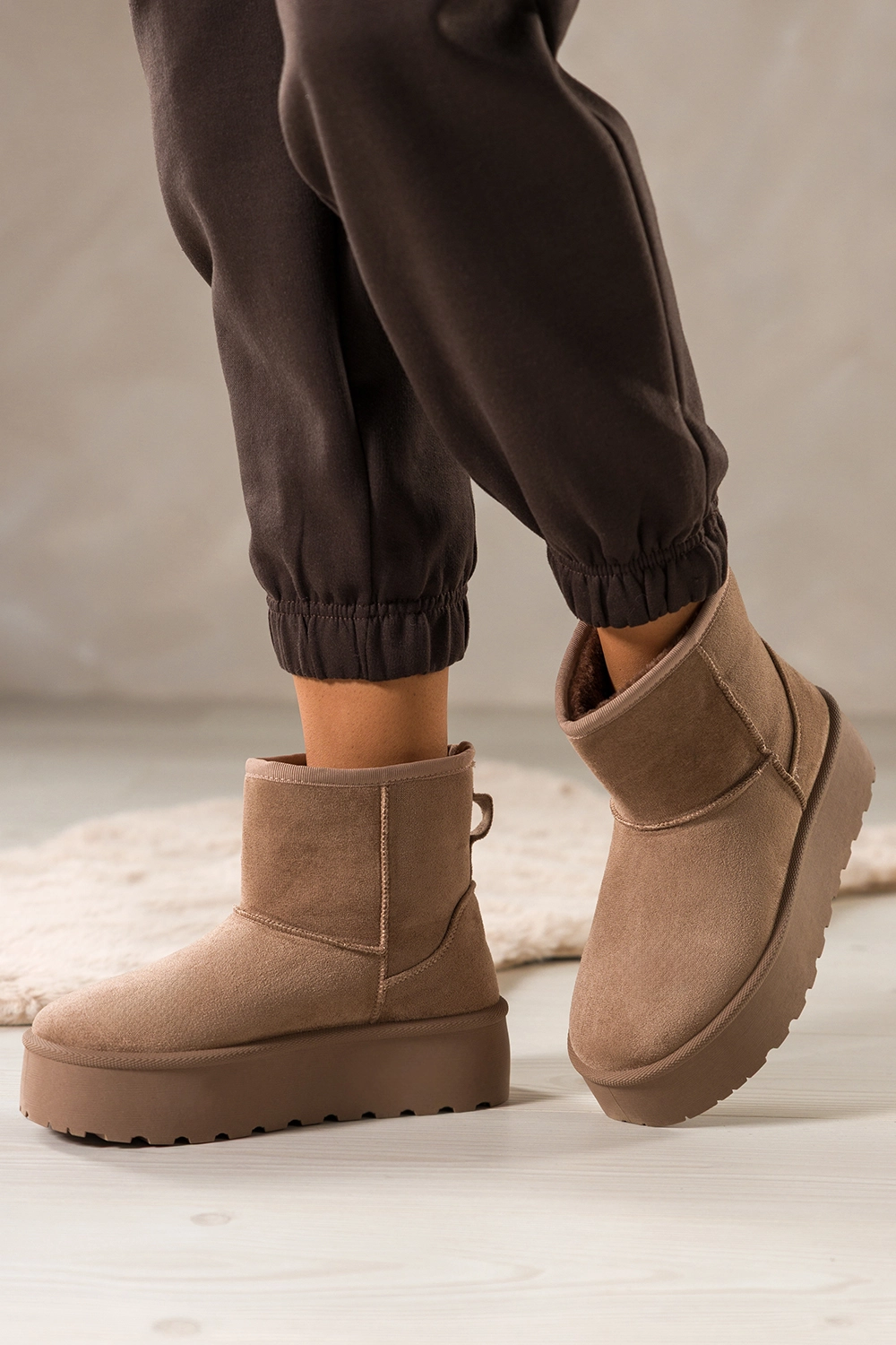 Ciemnobeżowe śniegowce mukluki damskie na bieżnikowanej platformie Casu 1941