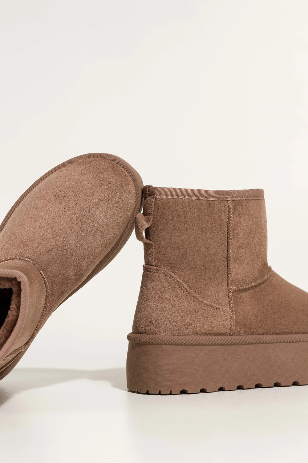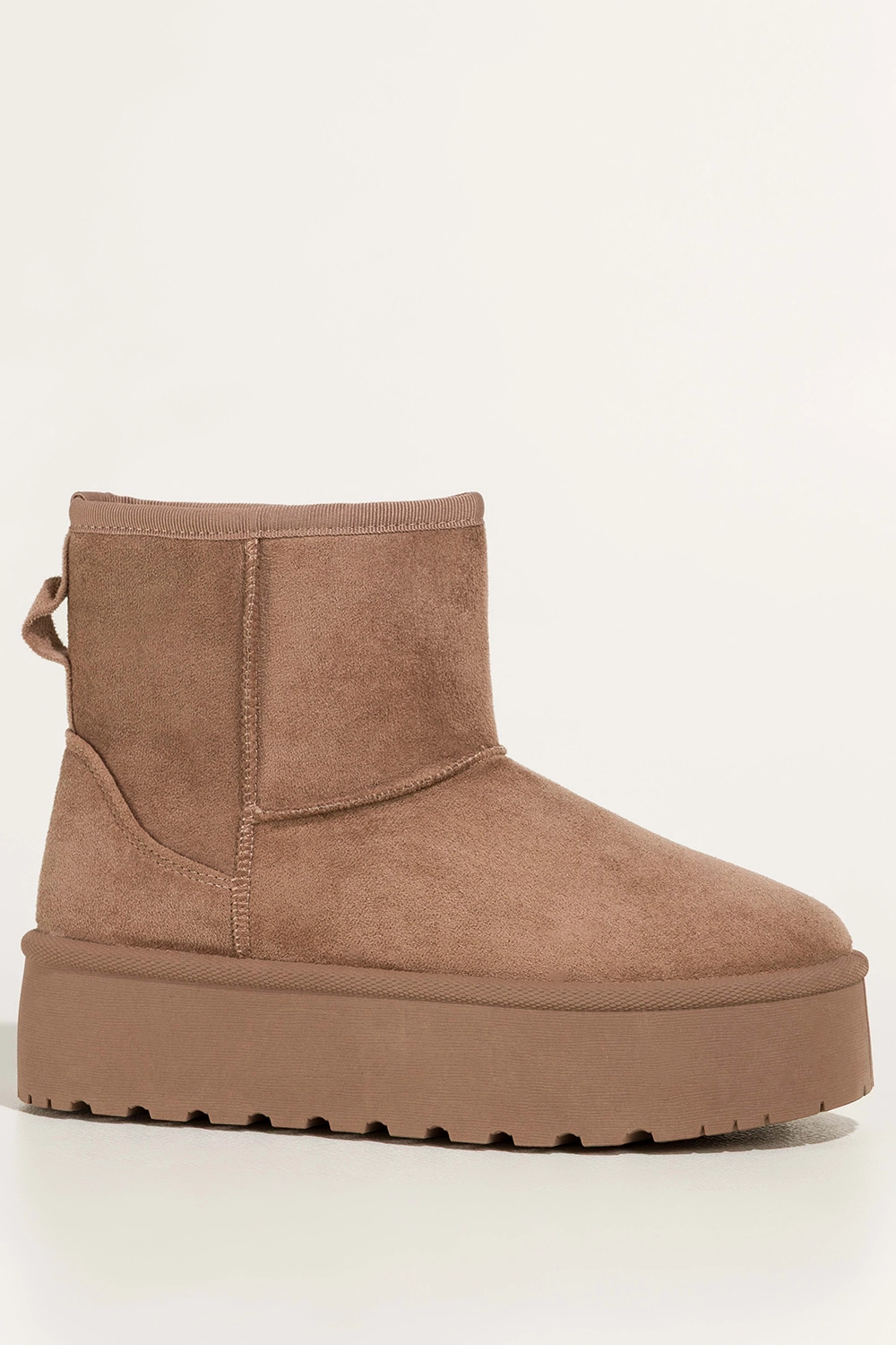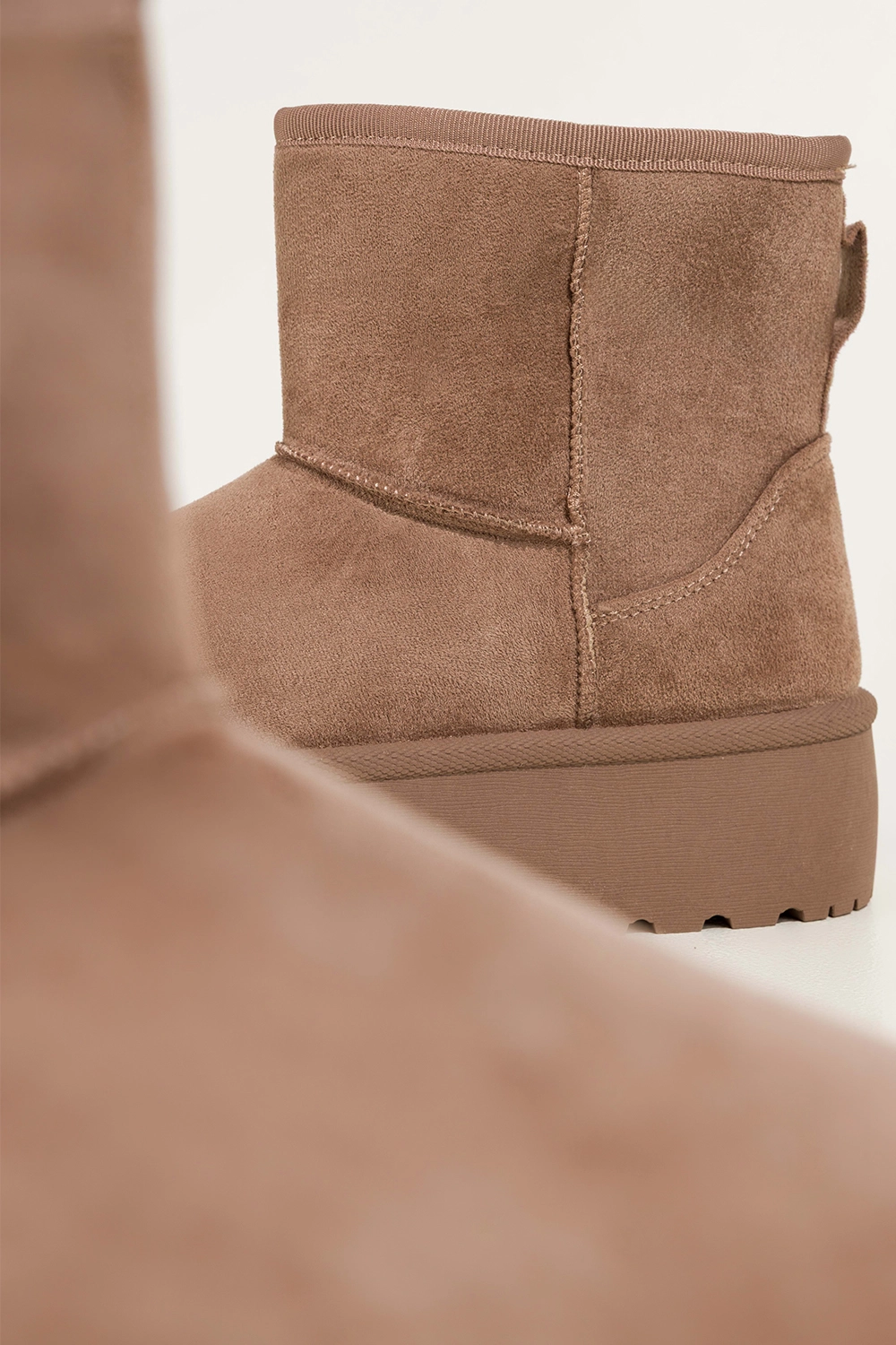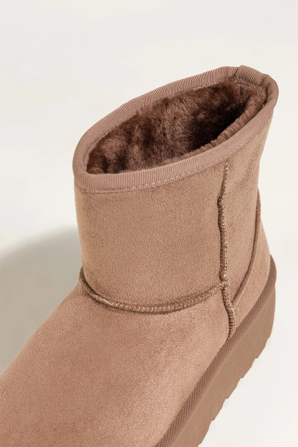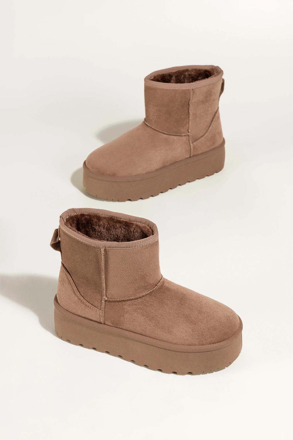 Ciemnobeżowe śniegowce mukluki damskie na bieżnikowanej platformie Casu 1941