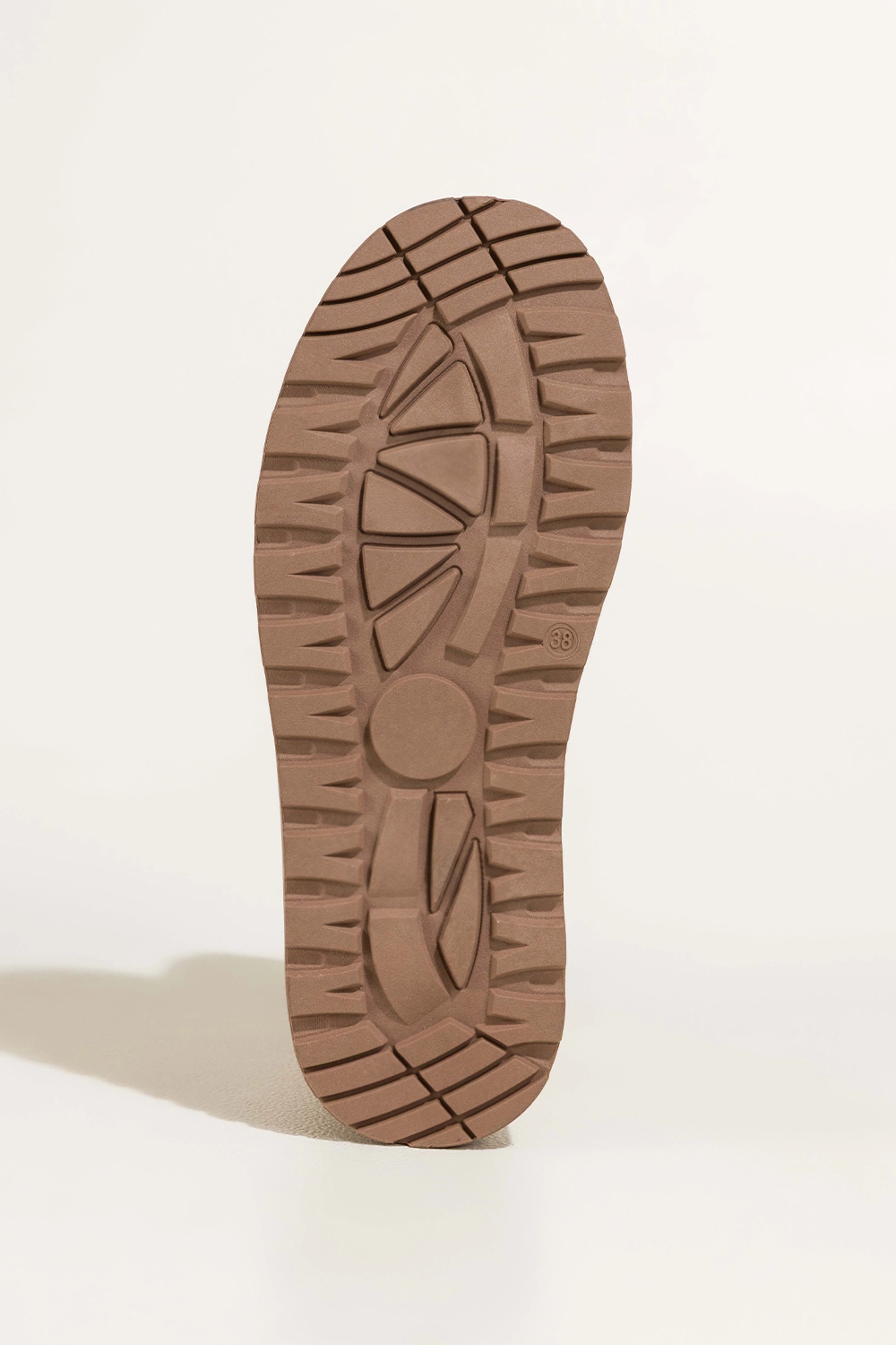 Uniwersalny, ciemnobeżowy kolor i minimalistyczna forma tych śniegowców sprawiają, że idealnie komponują się zarówno z codziennymi stylizacjami, jak i bardziej eleganckimi zimowymi zestawami. Wsuwany fason ułatwia zakładanie, a zaokrąglony nosek dodaje kobiecego uroku. Te mukluki to idealne połączenie mody i funkcjonalności, sprawdzą się w drodze do pracy, na zimowym spacerze czy podczas weekendowego wyjazdu w góry.