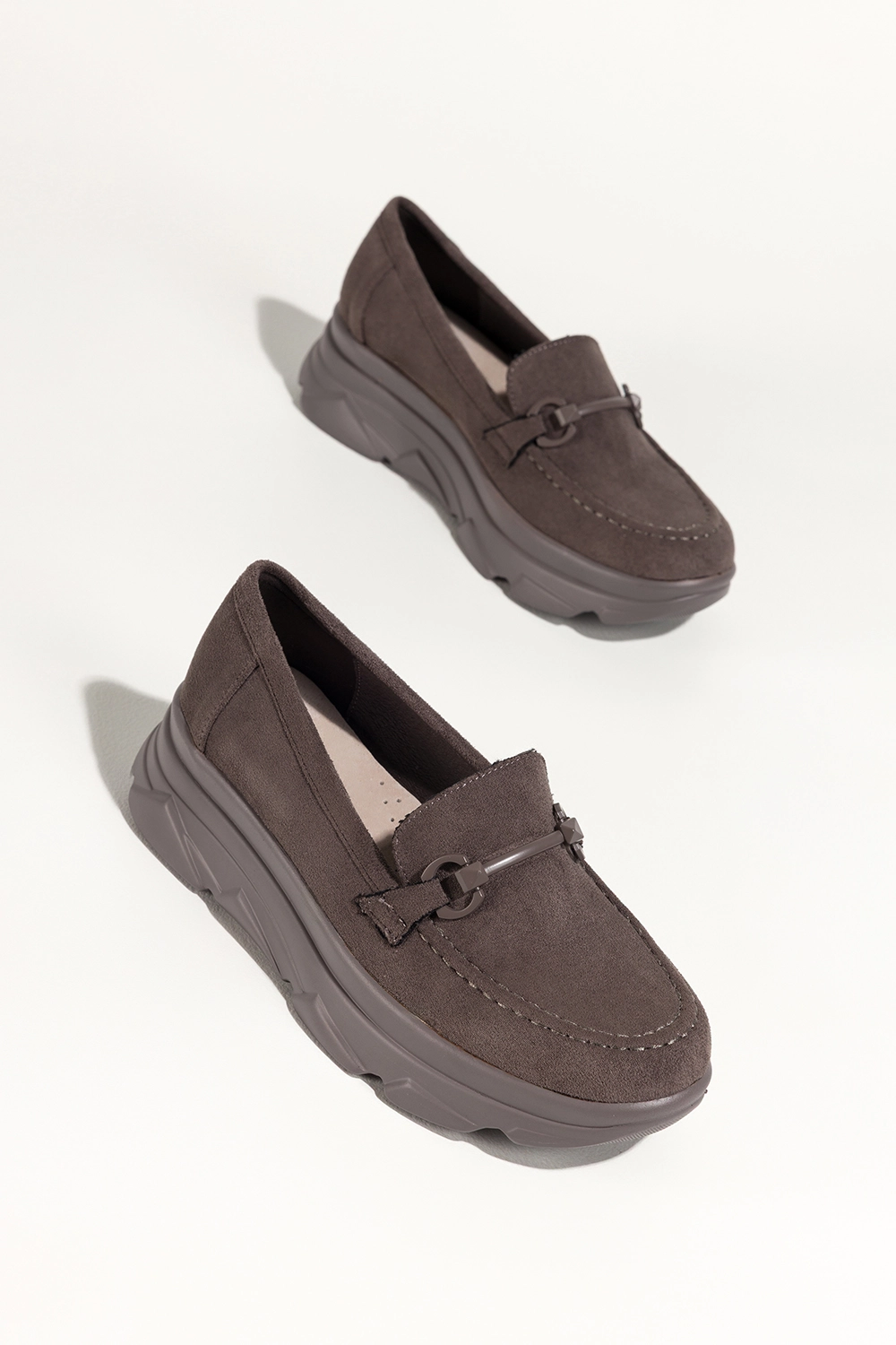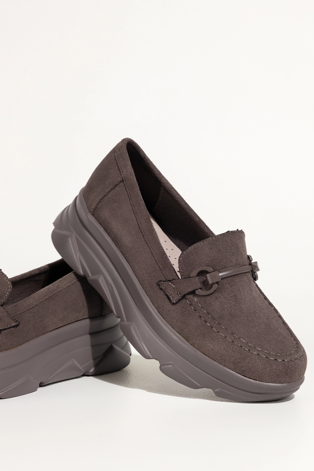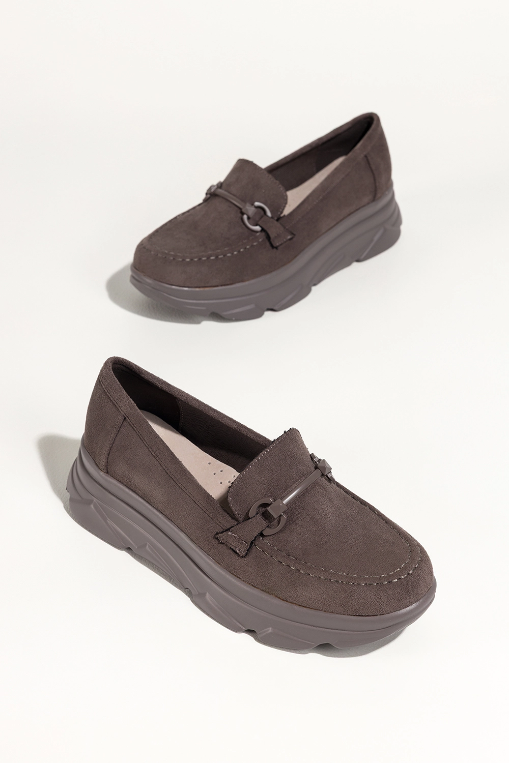 Model został wykonany z wysokogatunkowego zamszu ekologicznego, który jest przyjemny w dotyku i odporny na codzienne użytkowanie. Wnętrze kryje miękką wkładkę ze skóry naturalnej, która dopasowuje się do stopy i znacząco podnosi komfort noszenia przez wiele godzin. Stabilna platforma amortyzuje kroki, a zaokrąglony nosek zapewnia swobodę palcom, co sprawia, że mokasyny doskonale sprawdzą się w sezonie wiosennym i jesiennym.