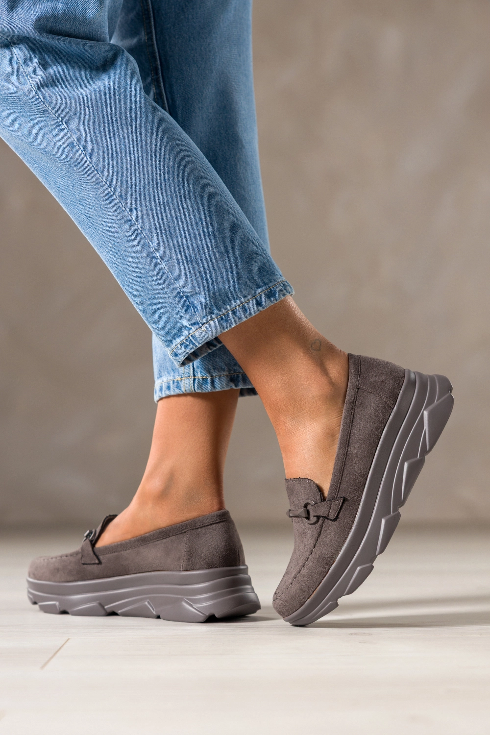 Te ciemnoszare mokasyny z łatwością wpiszą się w różnorodne stylizacje. Noś je do klasycznych jeansów i koszuli, aby stworzyć swobodny look na co dzień, zestaw z cygaretkami i marynarką do pracy lub połącz z dzianinową sukienką, gdy chcesz dodać stylizacji nowoczesnego akcentu. Uniwersalna kolorystyka i ponadczasowy fason czynią je niezastąpionym elementem kobiecej garderoby.