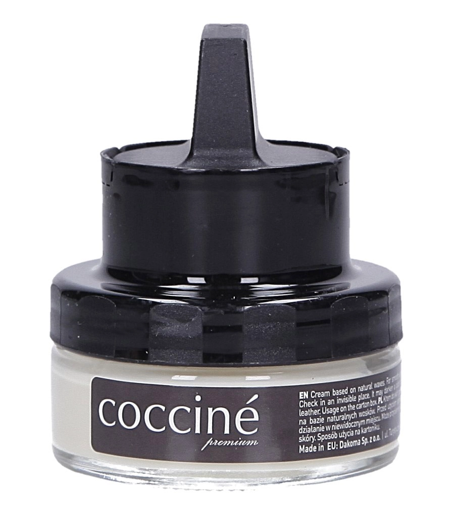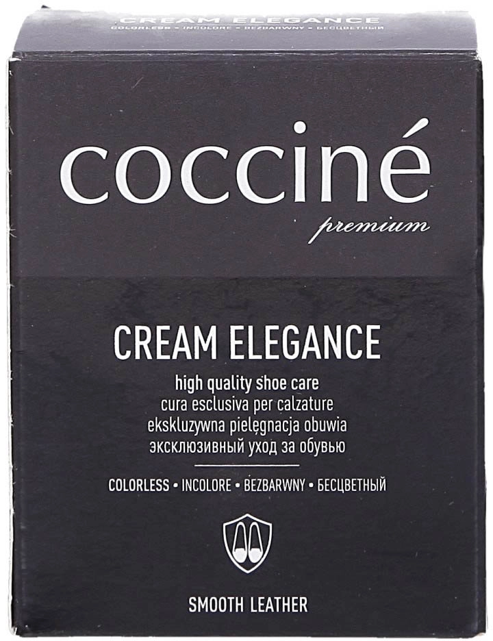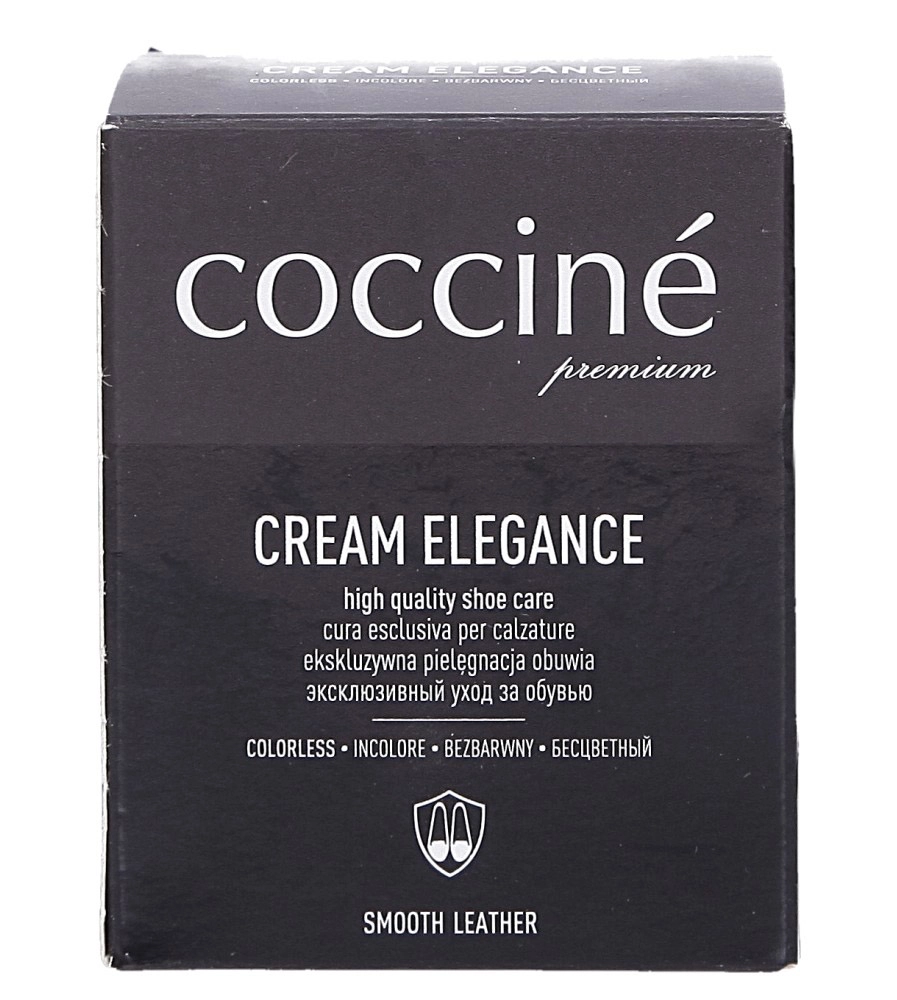 Elegancka pielęgnacja. Pielęgnujący krem do obuwia Coccine Cream Elegance bezbarwny 50 ml to luksusowa formuła, która intensywnie odżywia skórę, przywracając jej elastyczność i subtelny połysk. Bezbarwna konsystencja podkreśla naturalne piękno skóry, nie zmieniając jej barwy.