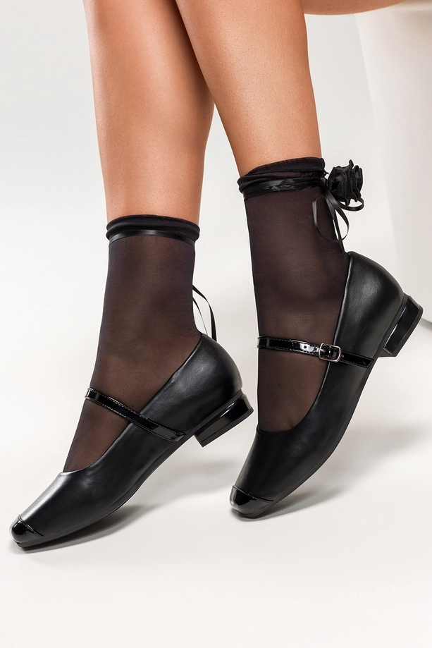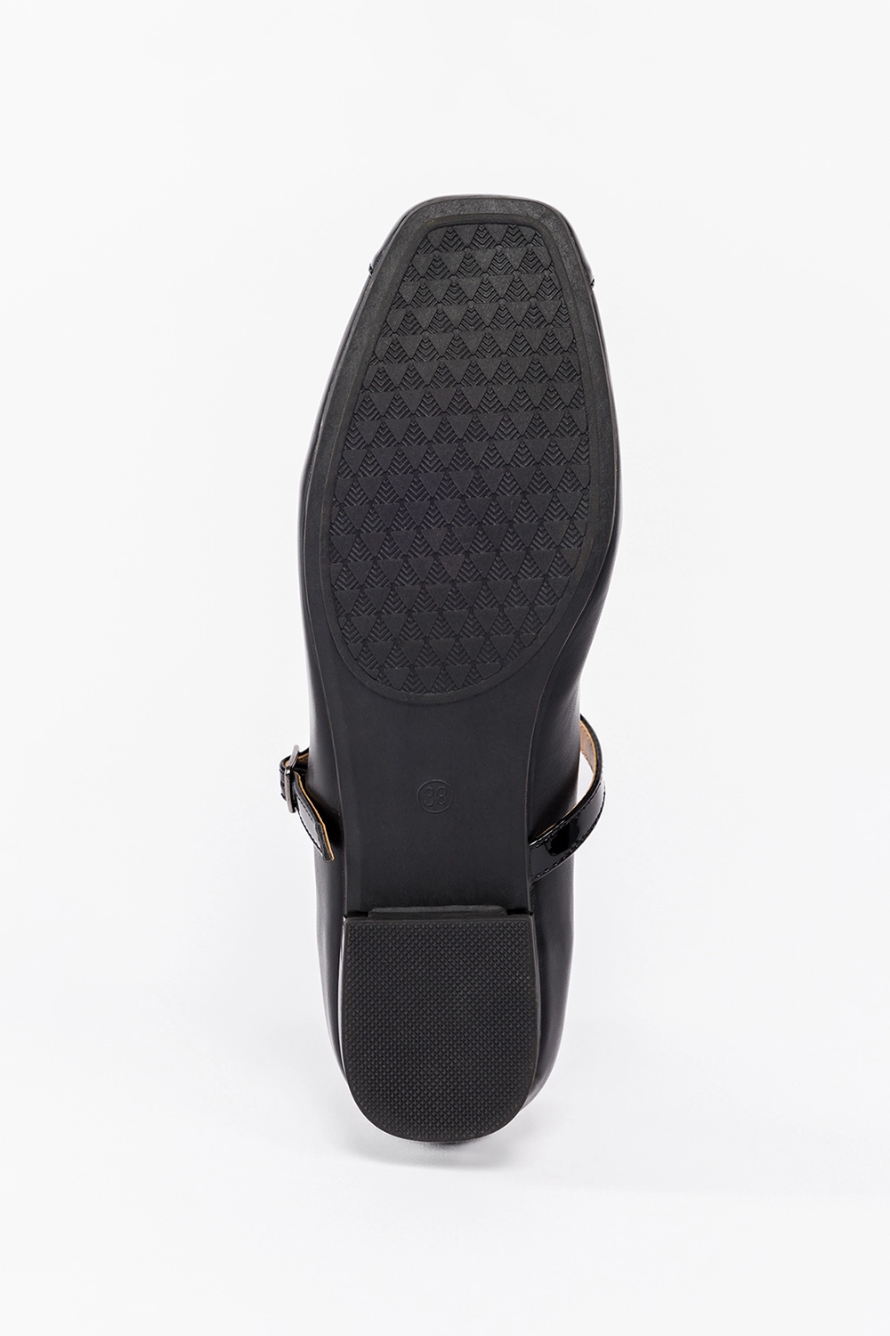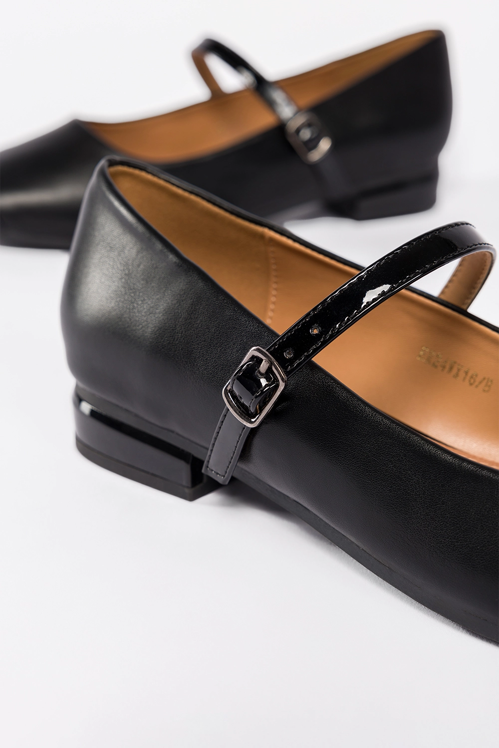 Kwadratowy, lakierowany nosek w balerinach Mary Jane nie tylko przyciąga wzrok, ale także zapewnia większą przestrzeń dla palców, co zwiększa komfort użytkowania. Miękka skórzana wkładka doskonale dopasowuje się do kształtu stopy, zmniejszając zmęczenie nawet po długim dniu. Zapięcie na klamerkę stabilizuje stopę, eliminując ryzyko jej zsuwania się, a jednocześnie dodaje eleganckiego wyglądu. Ozdobny niski klocek obcasa wyróżnia się lakierowaną powierzchnią, która podkreśla luksusowy charakter obuwia. Wszystkie te elementy sprawiają, że baleriny są synonimem wygody i stylu.