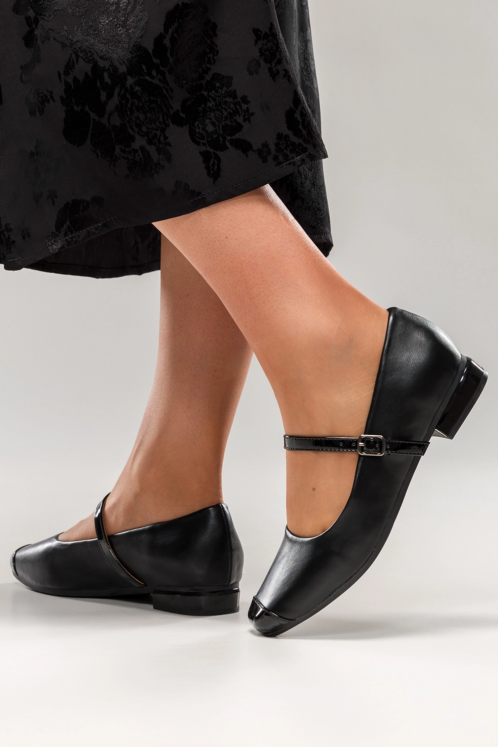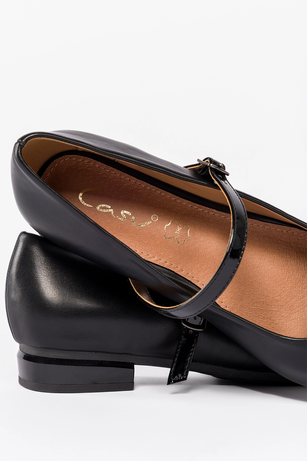 Czarne baleriny damskie Mary Jane z paskiem na niskim ozdobnym klocku to połączenie ponadczasowej elegancji z nowoczesnymi rozwiązaniami. Fason dostępny na Casu.pl to doskonały wybór na każdą okazję, zarówno do pracy, na codzienne spacery, jak i na wieczorne wyjścia. Wybierz ten wyjątkowy model i ciesz się niezrównanym komfortem oraz pięknym wyglądem. Postaw na jakość i styl – zamów swoje baleriny już dziś!