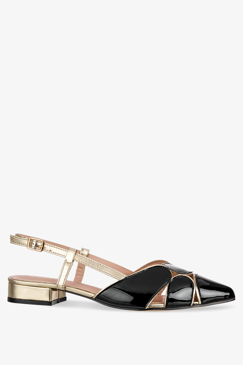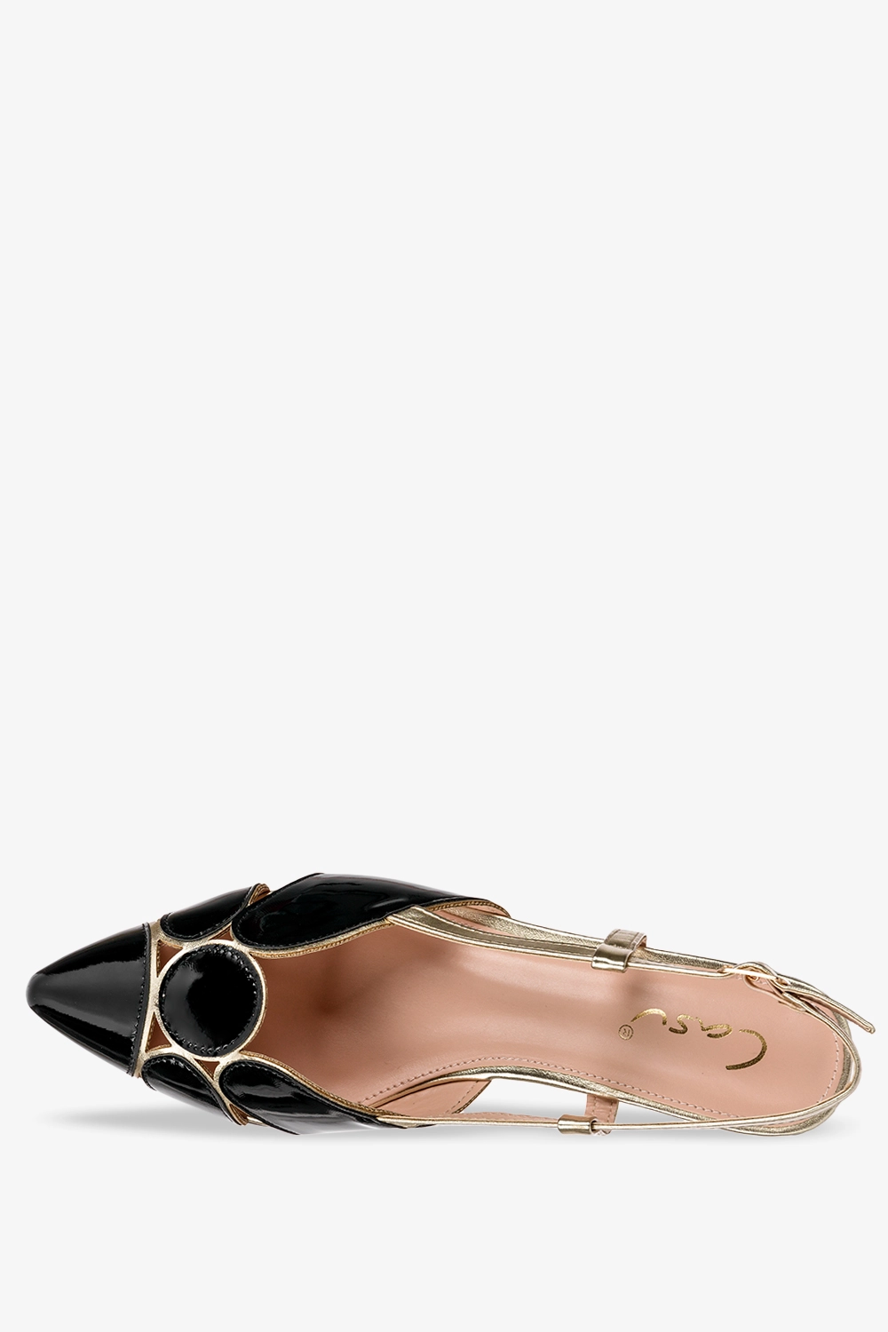 Czarne baleriny lakierowane z odkrytą piętą Casu D21X9-BP