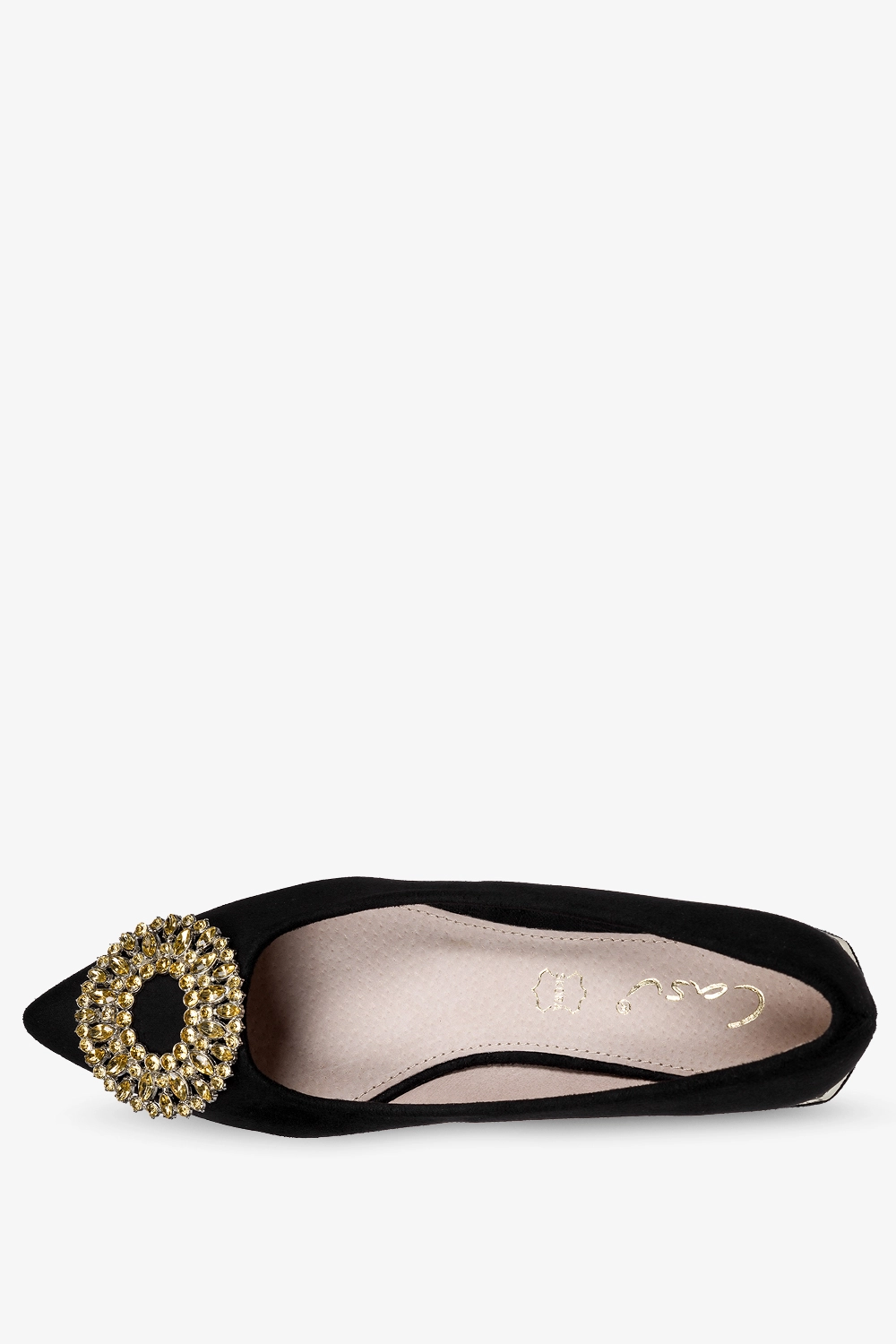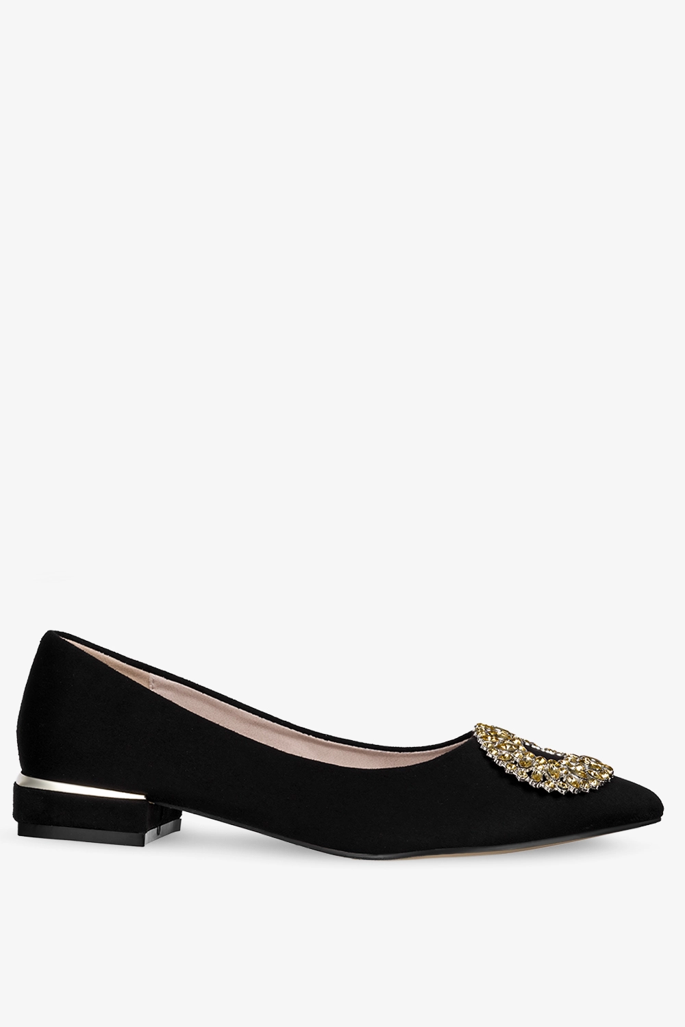 Czarne baleriny z ozdobą damskie ze skórzaną wkładką Casu D23X7-B