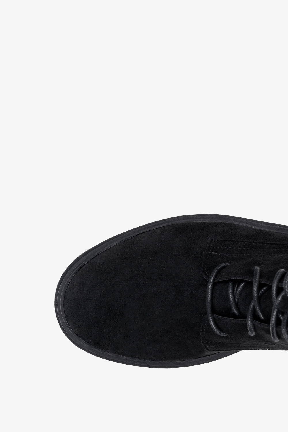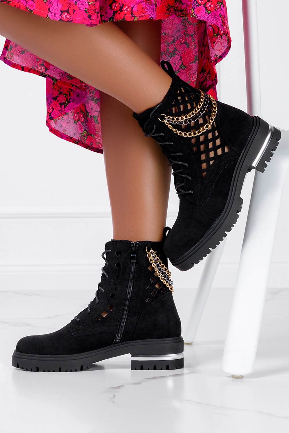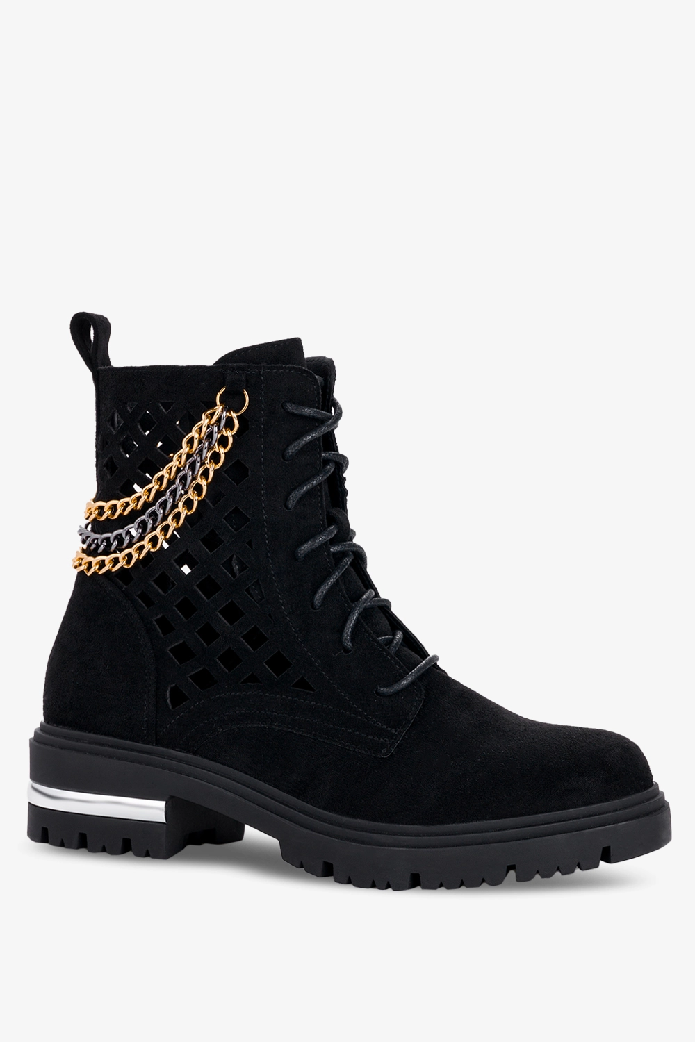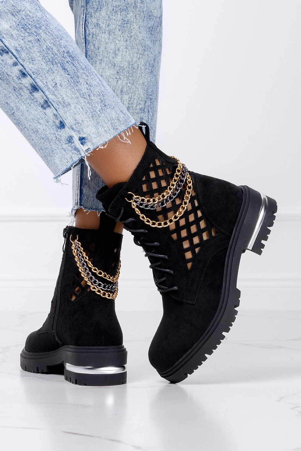Czarne botki ażurowe na platformie damskie z łańcuszkiem sznurowane Casu G22X7-B