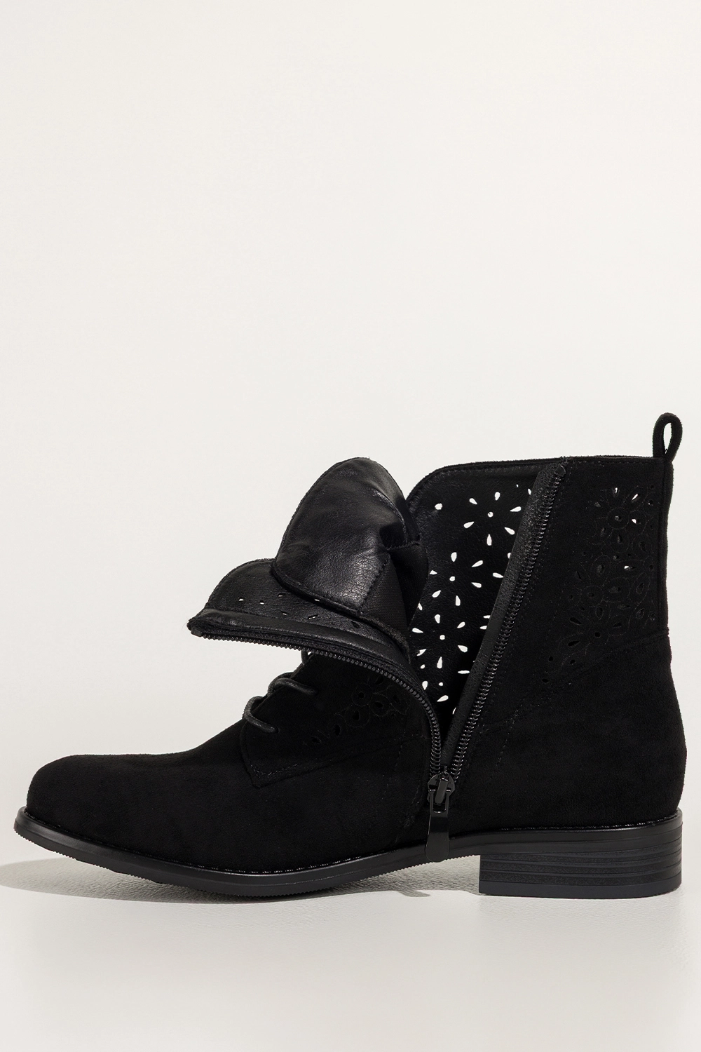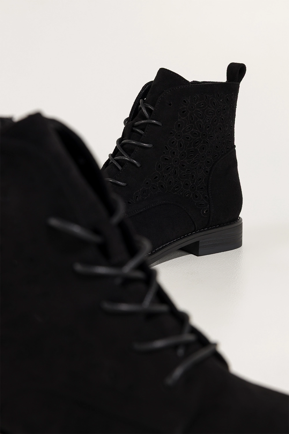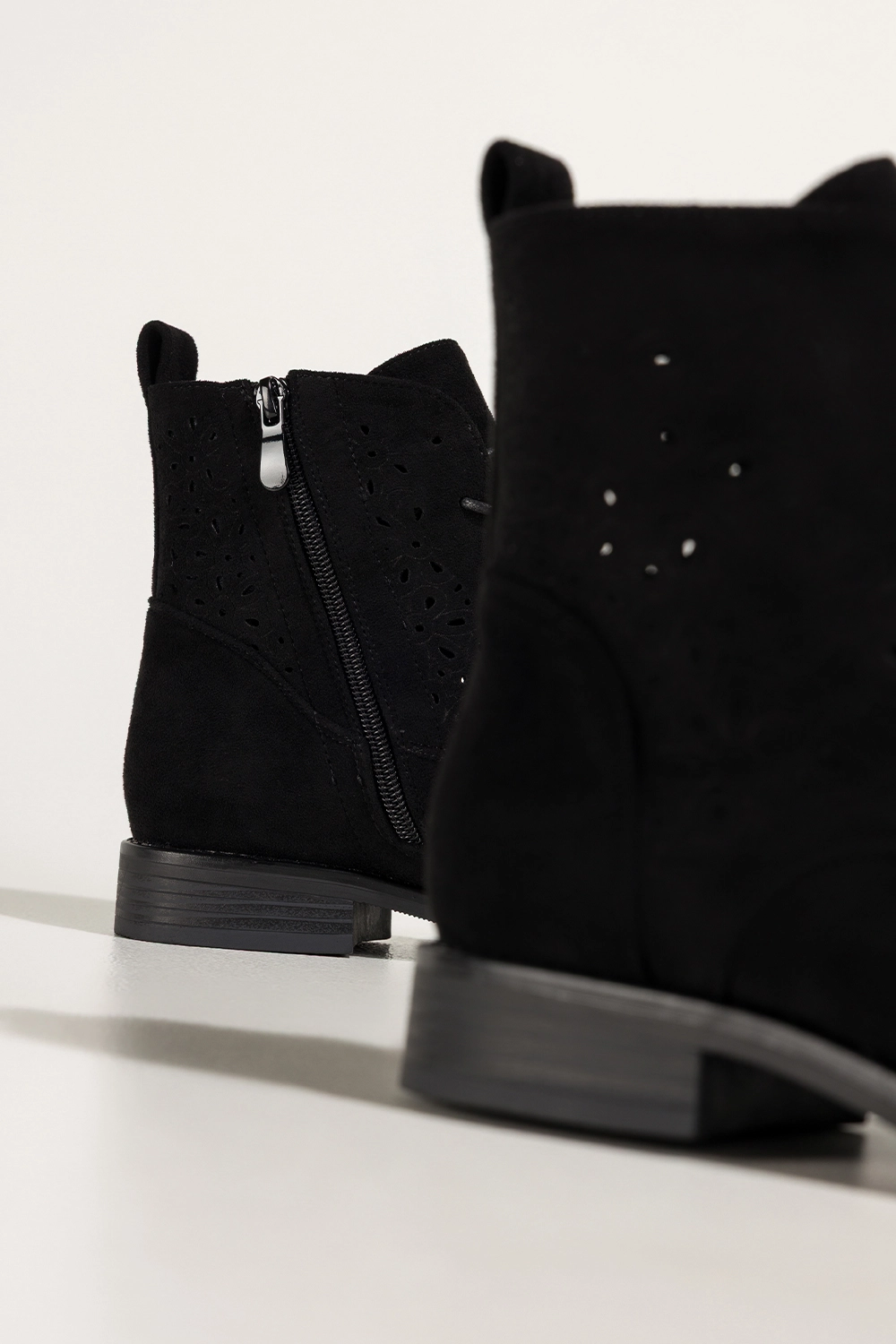 Stylizacje i wszechstronność – botki na każdą okazję. Klasyczny czarny kolor w połączeniu z unikalnym ażurowym wzorem sprawia, że botki z łatwością dopasujesz do wielu stylizacji – zarówno casualowych, jak i bardziej eleganckich. Świetnie prezentują się z jeansami rurek i białą koszulą, ale także z letnią sukienką, oversize’owym swetrem czy kombinezonem. Dzięki sznurowaniu z przodu oraz funkcjonalnemu zamkowi z boku, botki nie tylko dobrze leżą na stopie, ale również pozwalają na łatwe zakładanie i zdejmowanie. To model, który możesz nosić zarówno do pracy, na uczelnię, jak i podczas weekendowych wyjść – botki są niezwykle uniwersalne i pasują do różnorodnych okazji, podkreślając indywidualny styl każdej kobiety.