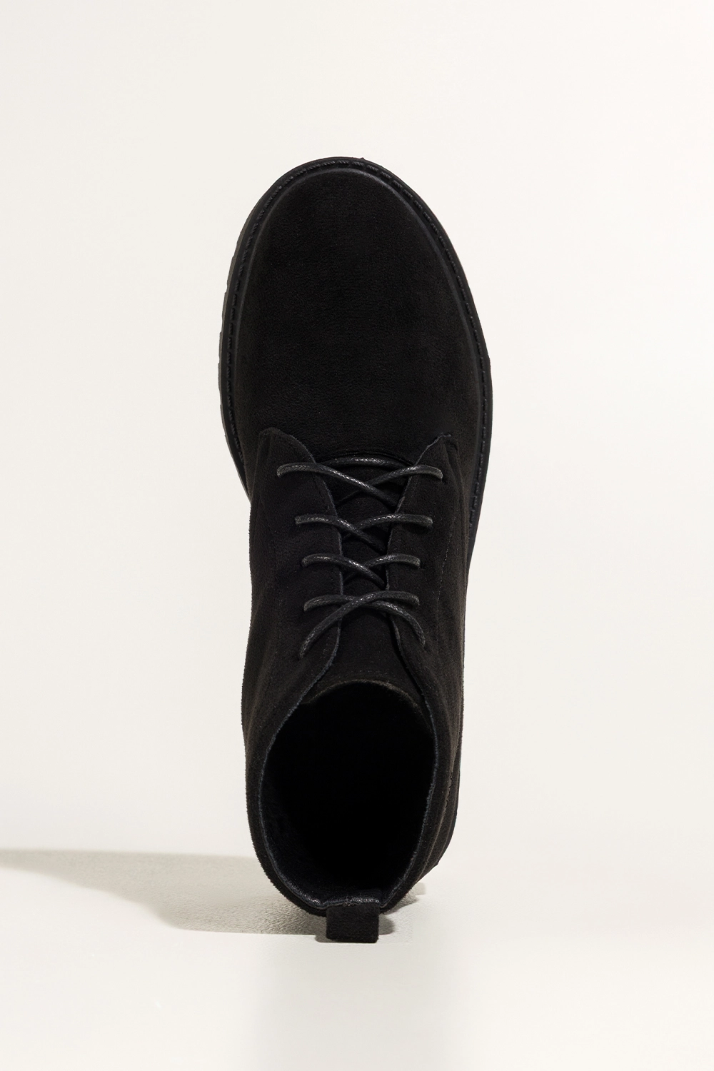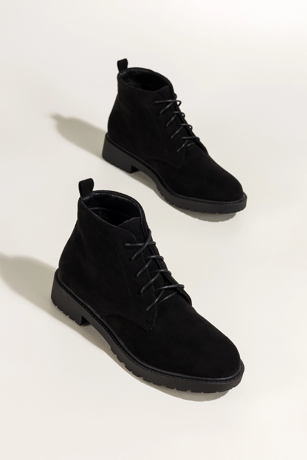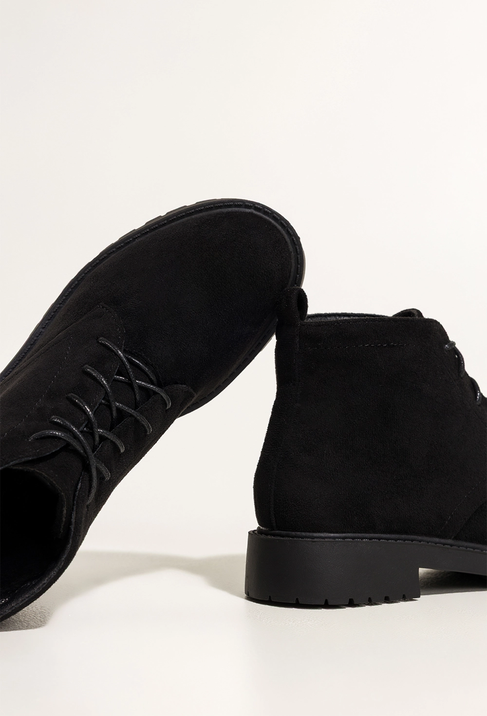 Czarne botki damskie na żłobionej podeszwie sznurowane Casu 8998-8, to perfekcyjne połączenie stylu i funkcjonalności. Wykonane z miękkiego, wysokogatunkowego zamszu ekologicznego, zapewniają wygodę użytkowania i trwałość nawet przy intensywnym użytkowaniu. Ocieplone przyjemnym w dotyku kocem obuwniczym, gwarantują ciepło w chłodne dni, jednocześnie pozostając lekkie i przewiewne. Solidna żłobiona platforma nadaje im charakteru i zwiększa przyczepność na śliskich nawierzchniach.