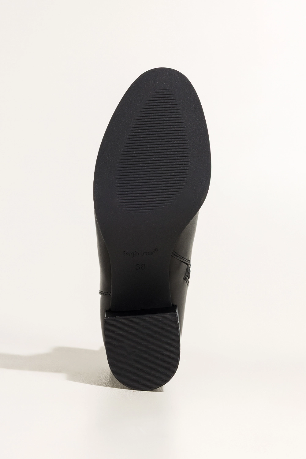 Czarne botki damskie Sergio Leone na niskim obcasie ozdobne przeszycia na cholewce model YG368, to połączenie staranności wykonania i modowej klasyki. Wykonane z wysokogatunkowej skóry ekologicznej, zapewniają trwałość oraz odporność na codzienne użytkowanie. Wnętrze wyściełane delikatnym futerkiem gwarantuje ciepło i wygodę nawet w chłodniejsze dni. Szeroki obcas typu słupek dodaje stabilności, a zaokrąglony nosek zapewnia swobodę ruchu palców, co przekłada się na komfort noszenia przez cały dzień.