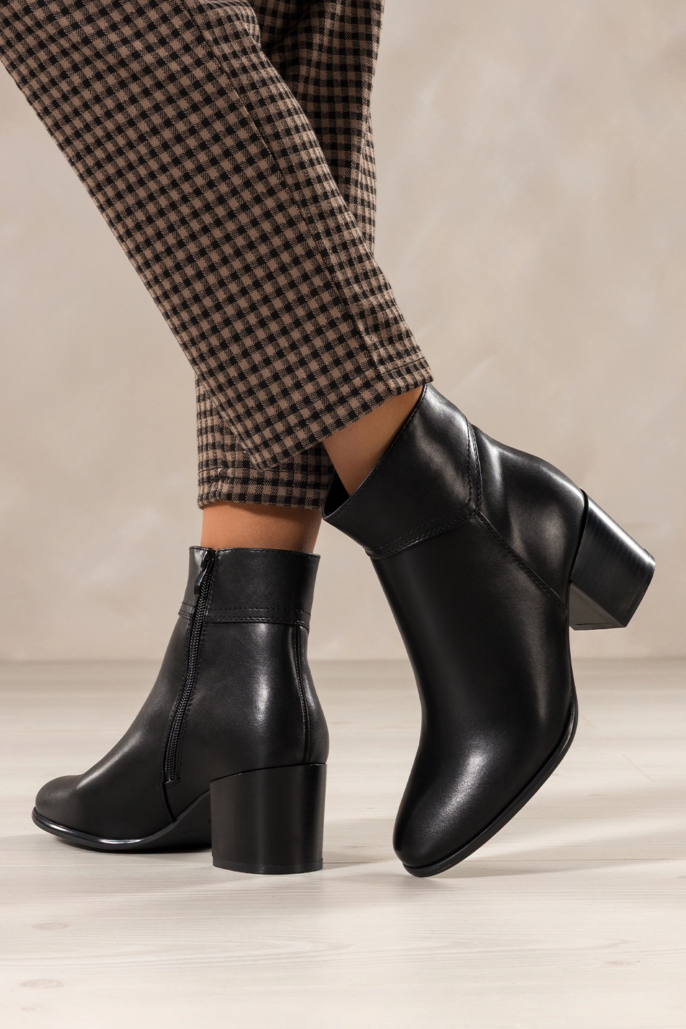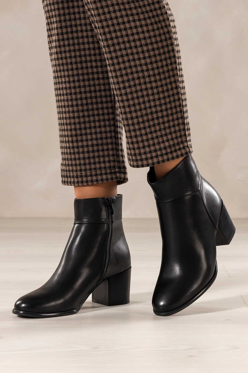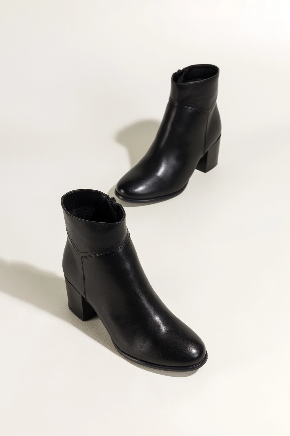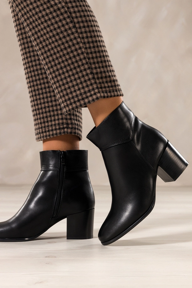 Czarne botki zachwycają subtelnymi przeszyciami na cholewce, które dodają im nowoczesnego charakteru. Ich uniwersalny design sprawia, że doskonale komponują się zarówno z casualowymi stylizacjami, jak i bardziej eleganckimi outfitami. Bez względu na to, czy wybierasz się do pracy, na spacer czy spotkanie ze znajomymi. Ich zapięcie na zamek to praktyczne i wygodne rozwiązanie, które ułatwia szybkie zakładanie obuwia.