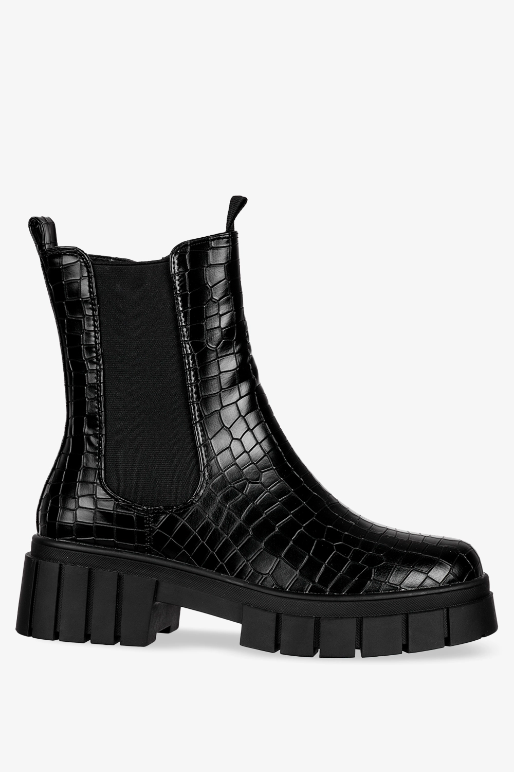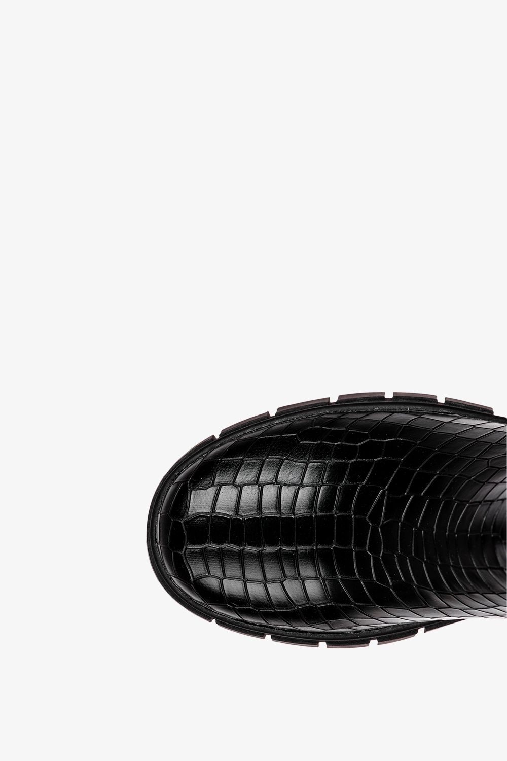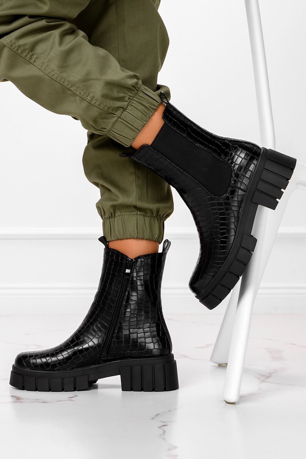 Czarne botki na platformie damskie z gumkami po bokach wzór wężowy Casu ER22WX4-B