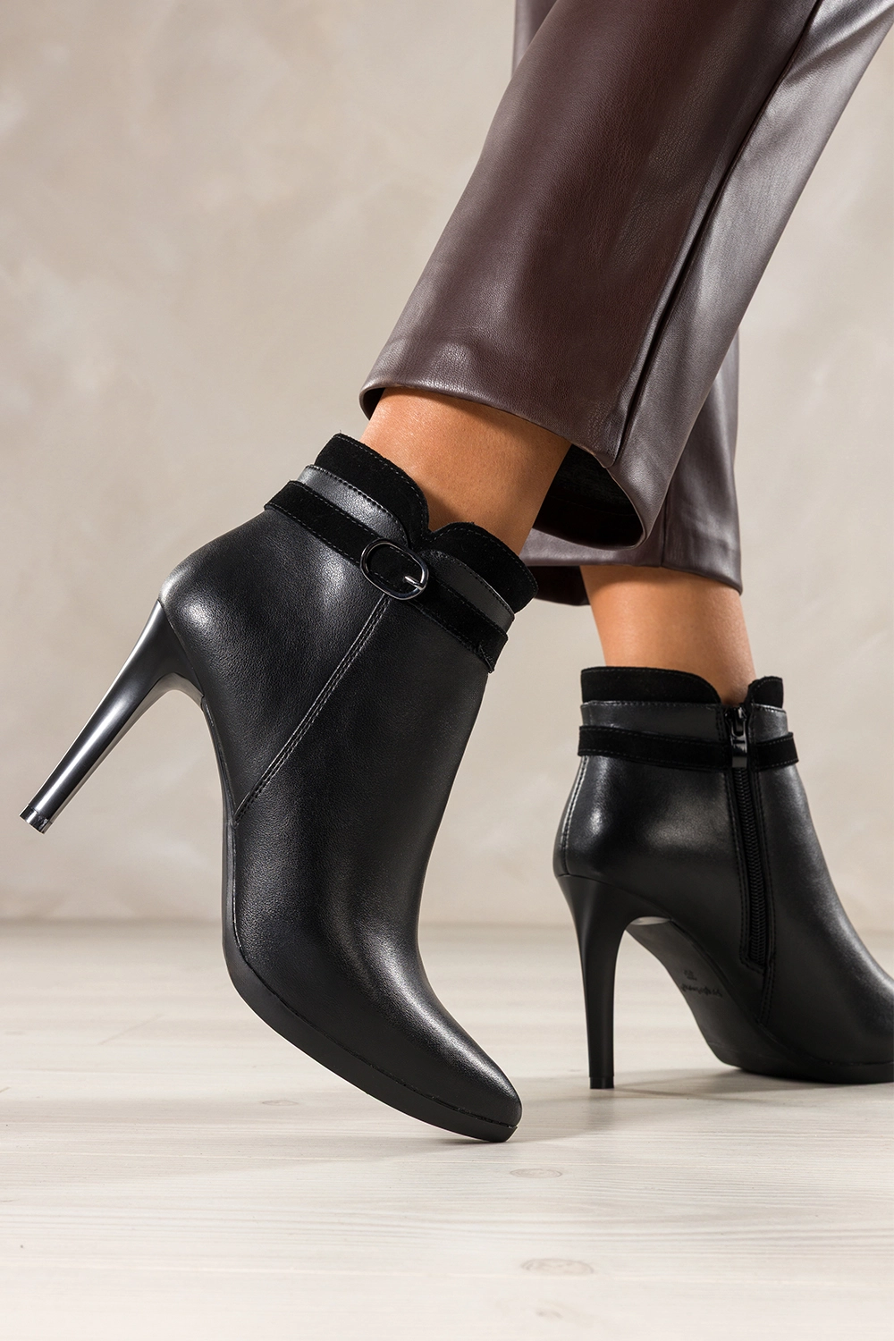 Praktyczne zapięcie na zamek pozwala na szybkie i bezproblemowe zakładanie, a stabilna szpilka sprawia, że botki są nie tylko efektowne, ale i funkcjonalne. Idealne do pracy, na spotkania czy wyjątkowe okazje. Świetnie sprawdzą się w okresie jesienno-zimowym, łącząc styl z ochroną przed chłodem. To model, który podkreśli Twoją osobowość i doda pewności siebie w każdej sytuacji.