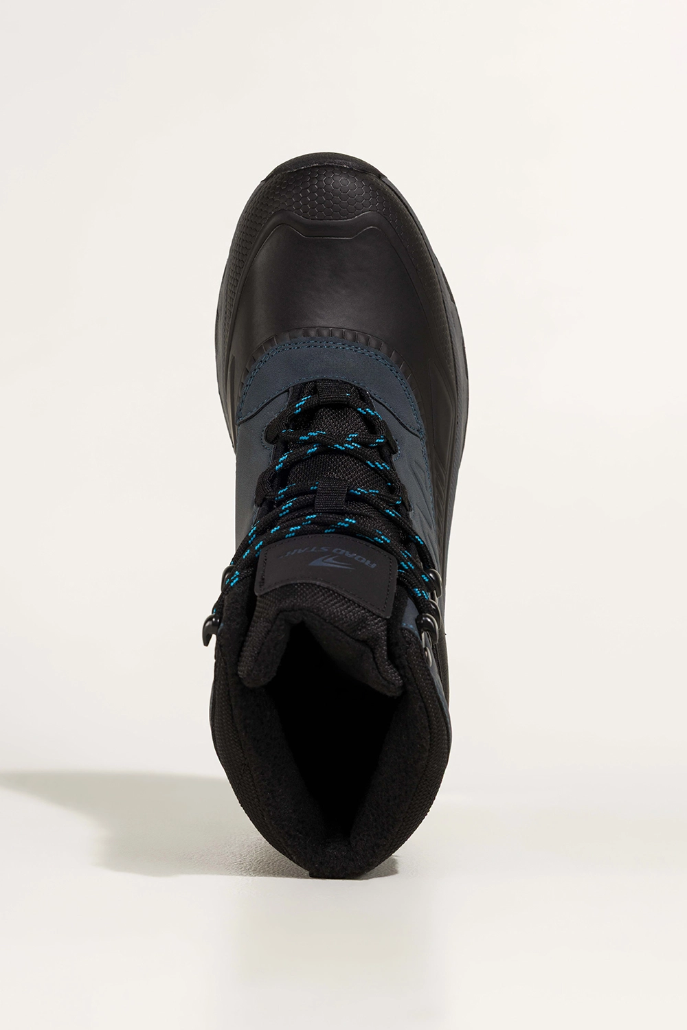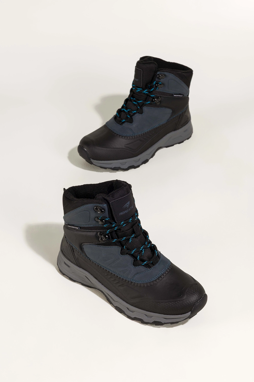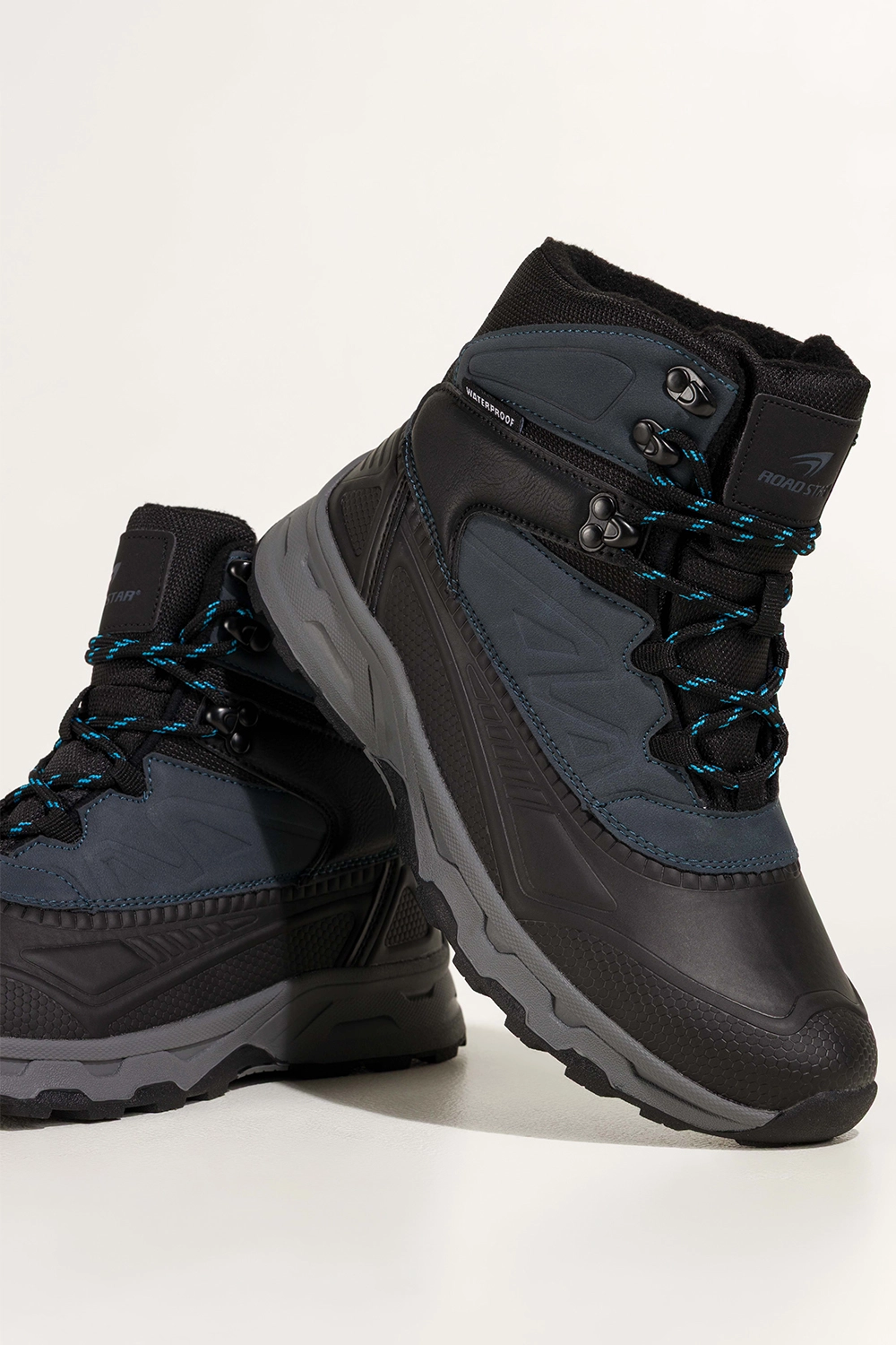 Bieżnikowana podeszwa zapewnia doskonałą przyczepność na śliskich i nierównych powierzchniach, co czyni je niezastąpionym wyborem na trekking, spacery po lesie, górskie wycieczki czy codzienne jesienno-zimowe stylizacje. Wysoka cholewka chroni kostkę, zapobiegając urazom, a klasyczna czerń z akcentami w granacie sprawia, że z łatwością dopasujesz je do każdej outdoorowej garderoby.