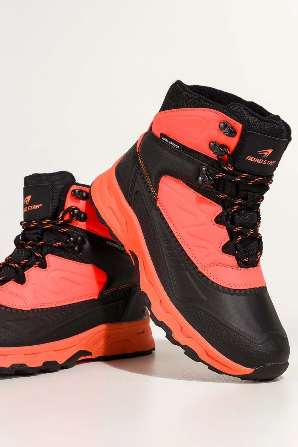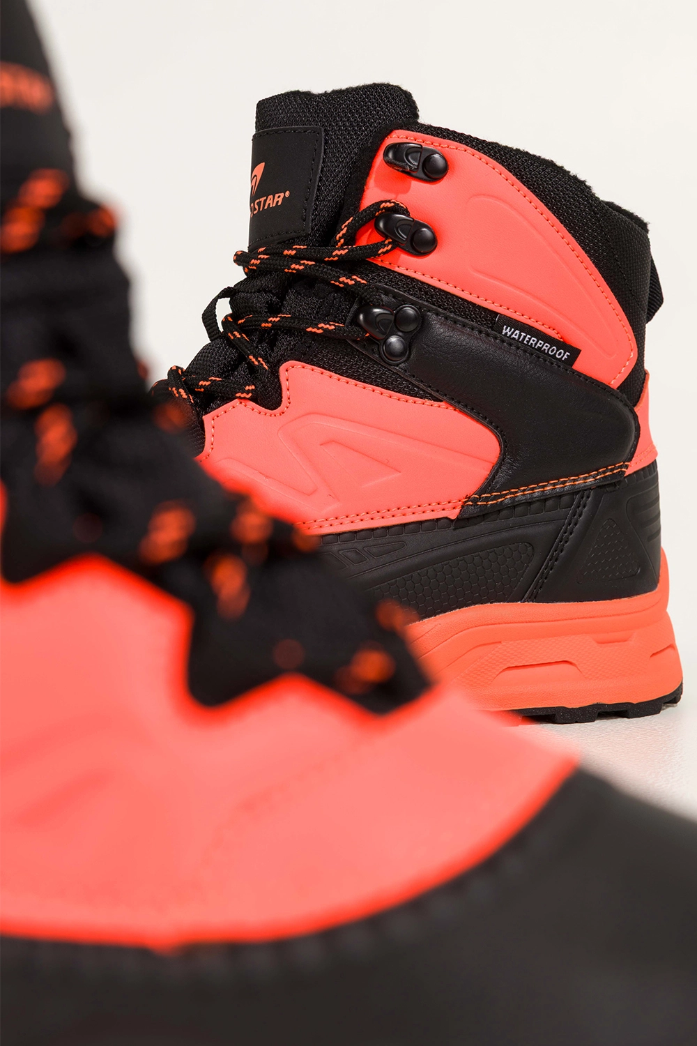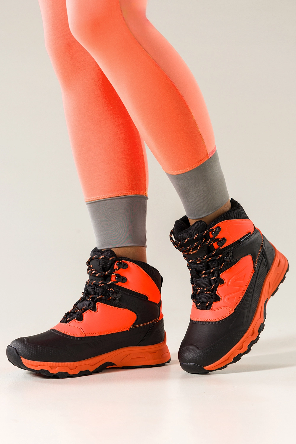 Buty świetnie sprawdzą się nie tylko podczas trekkingu, ale i w codziennych miejskich stylizacjach. Kontrastujące pomarańczowe wstawki nadają charakteru, przyciągając spojrzenia i dodając energii. Zaokrąglony nosek oraz wysoka cholewka nadają sylwetce dynamiki i zapewniają idealne trzymanie stopy. Dzięki sznurowanemu zapięciu łatwo dopasujesz buty do swoich potrzeb, a bieżnikowana podeszwa gwarantuje przyczepność na każdym terenie, od leśnych szlaków po miejskie ulice.