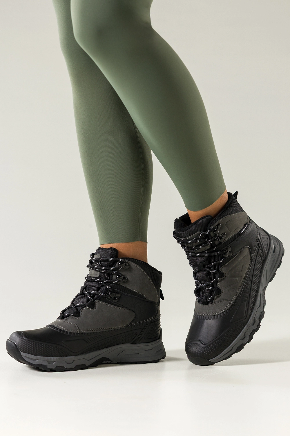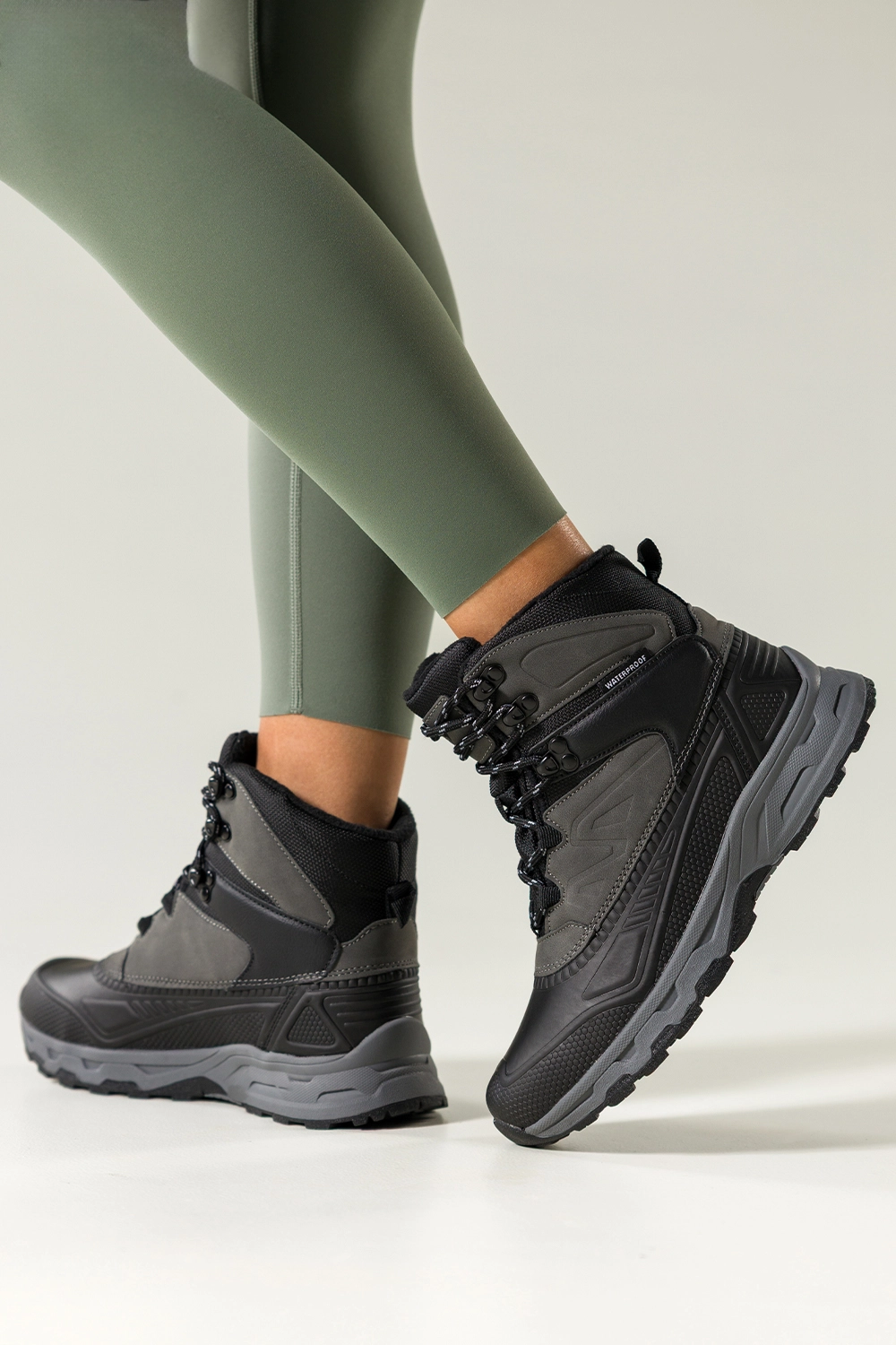 Zaokrąglony nosek i modne szare wstawki na cholewce nadają butom unikalnego charakteru, który łączy sportowy sznyt z subtelną elegancją. Wysoka cholewka oraz klasyczne sznurowanie nie tylko dodają stabilności, ale również podkreślają dynamiczny styl każdej kobiety. Te trekkingowe buty świetnie komponują się zarówno z legginsami outdoorowymi, jak i z jeansami, tworząc stylizacje pełne pewności siebie i funkcjonalnej mody.