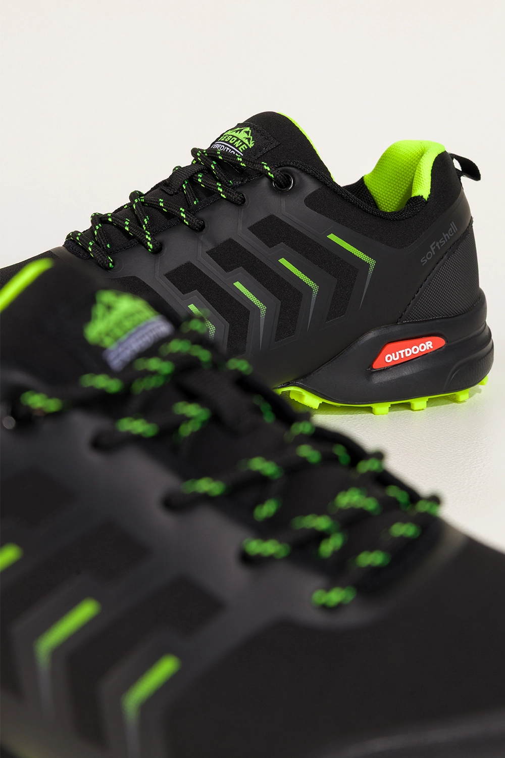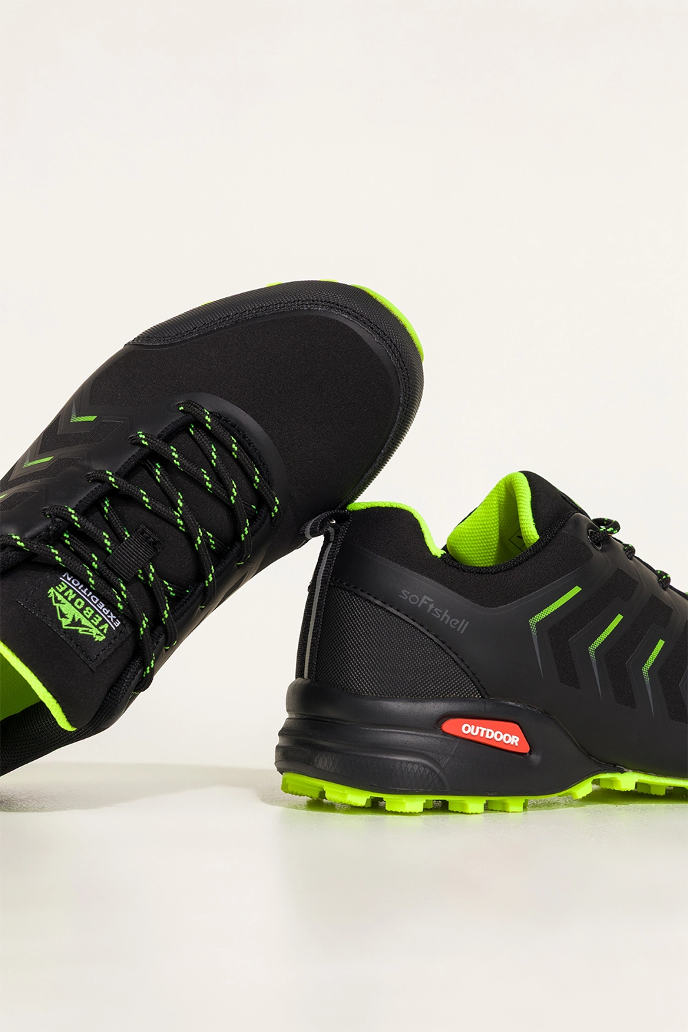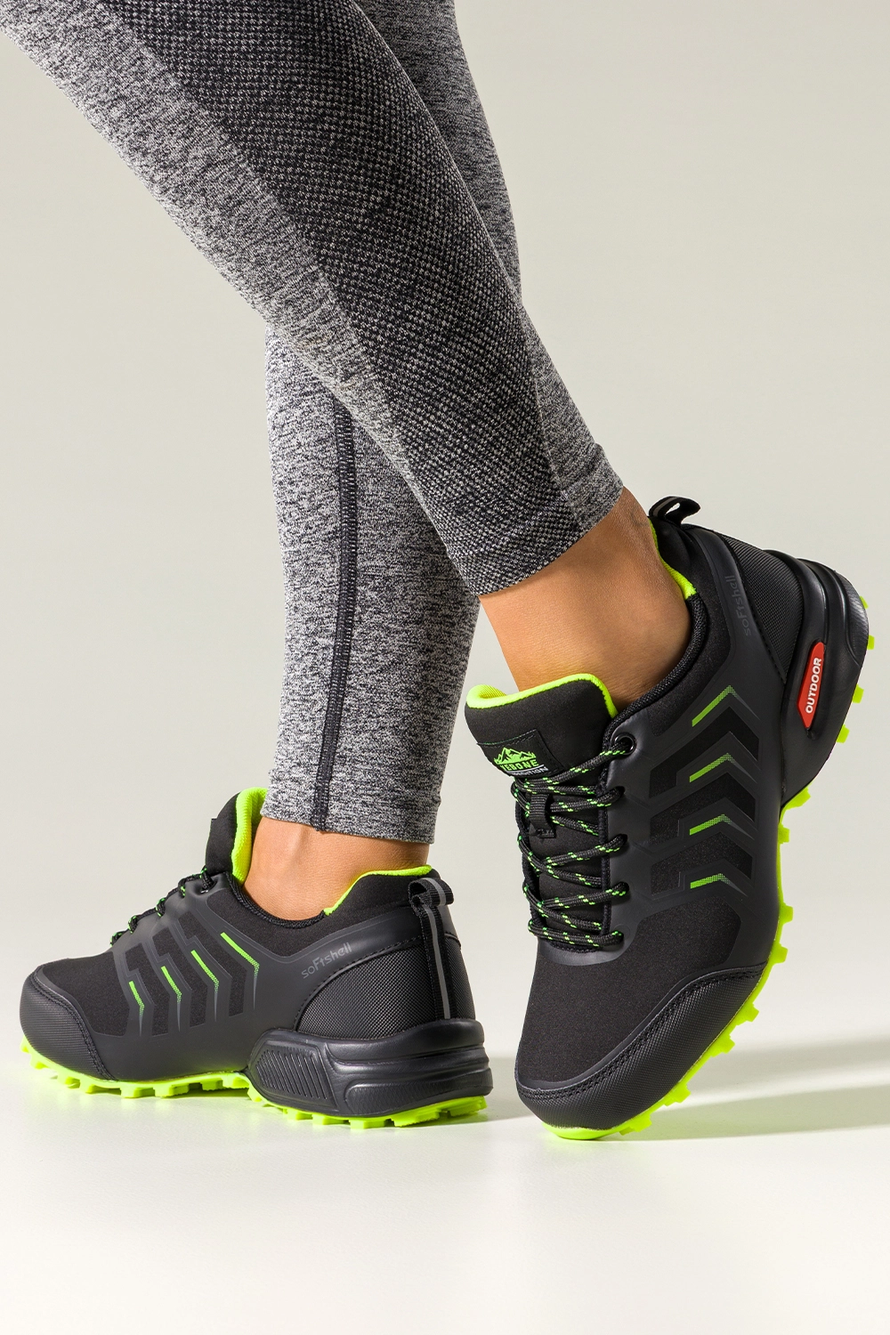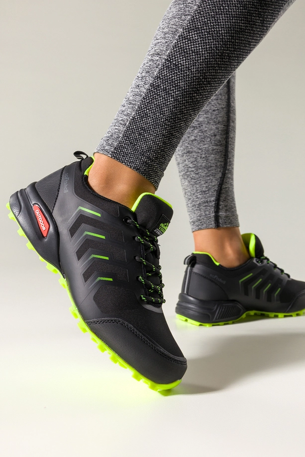 Czarne buty trekkingowe damskie buty sportowe softshell na bieżnikowanej podeszwie seledynowe wstawki sznurowane Carla model EY82976-7. Wykonane z wytrzymałej, wysokogatunkowej skóry ekologicznej, zachwycają solidnością oraz odpornością na trudne warunki terenowe. Miękka wkładka z materiału tekstylnego zapewnia komfort nawet podczas długich, intensywnych wędrówek. Dzięki technologii softshell, buty oferują częściową wodoodporność, idealną na zmienne warunki pogodowe.
