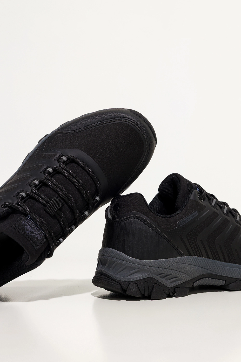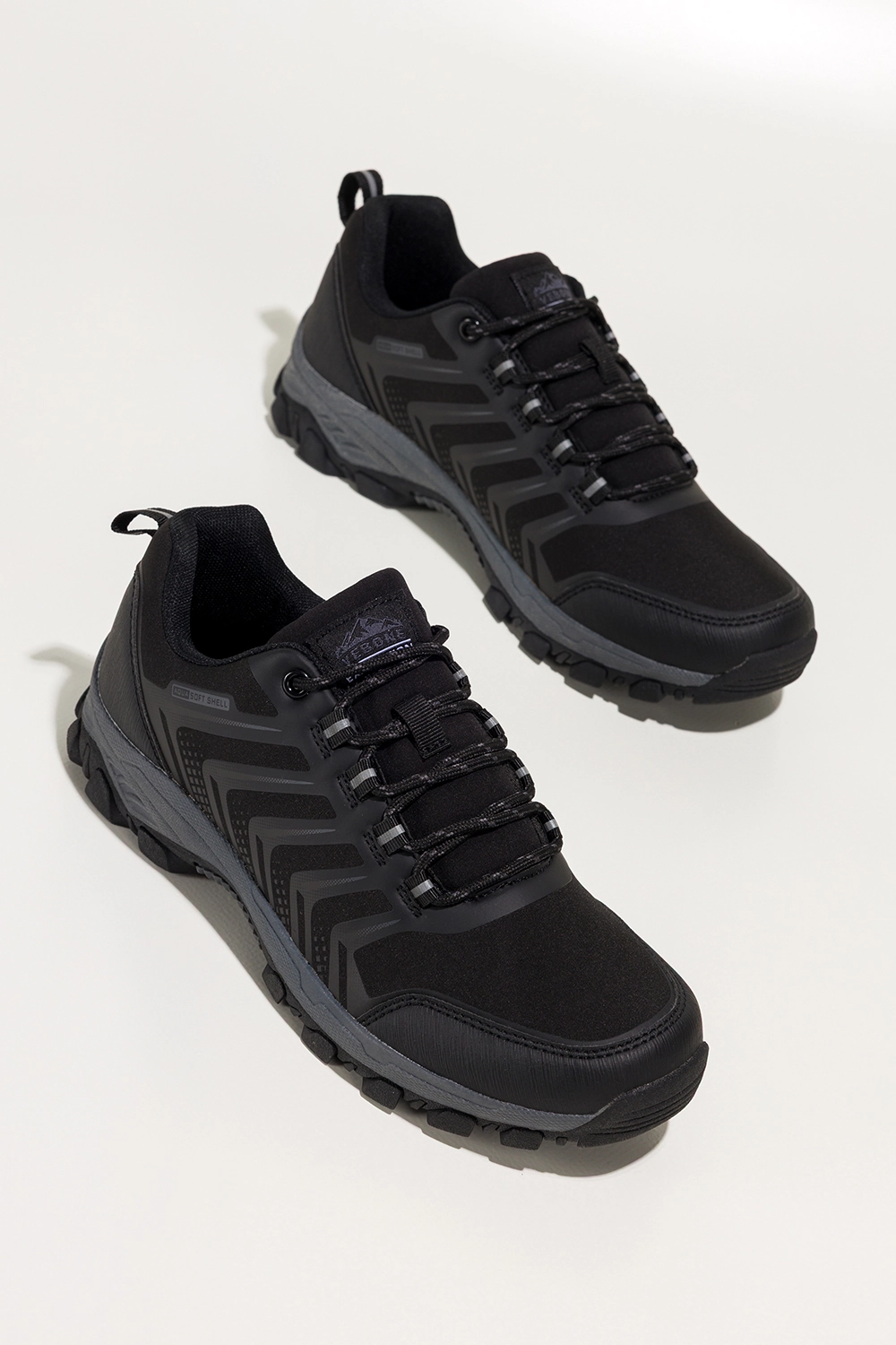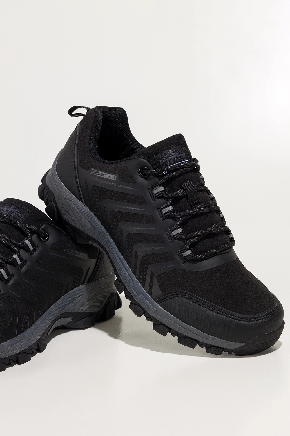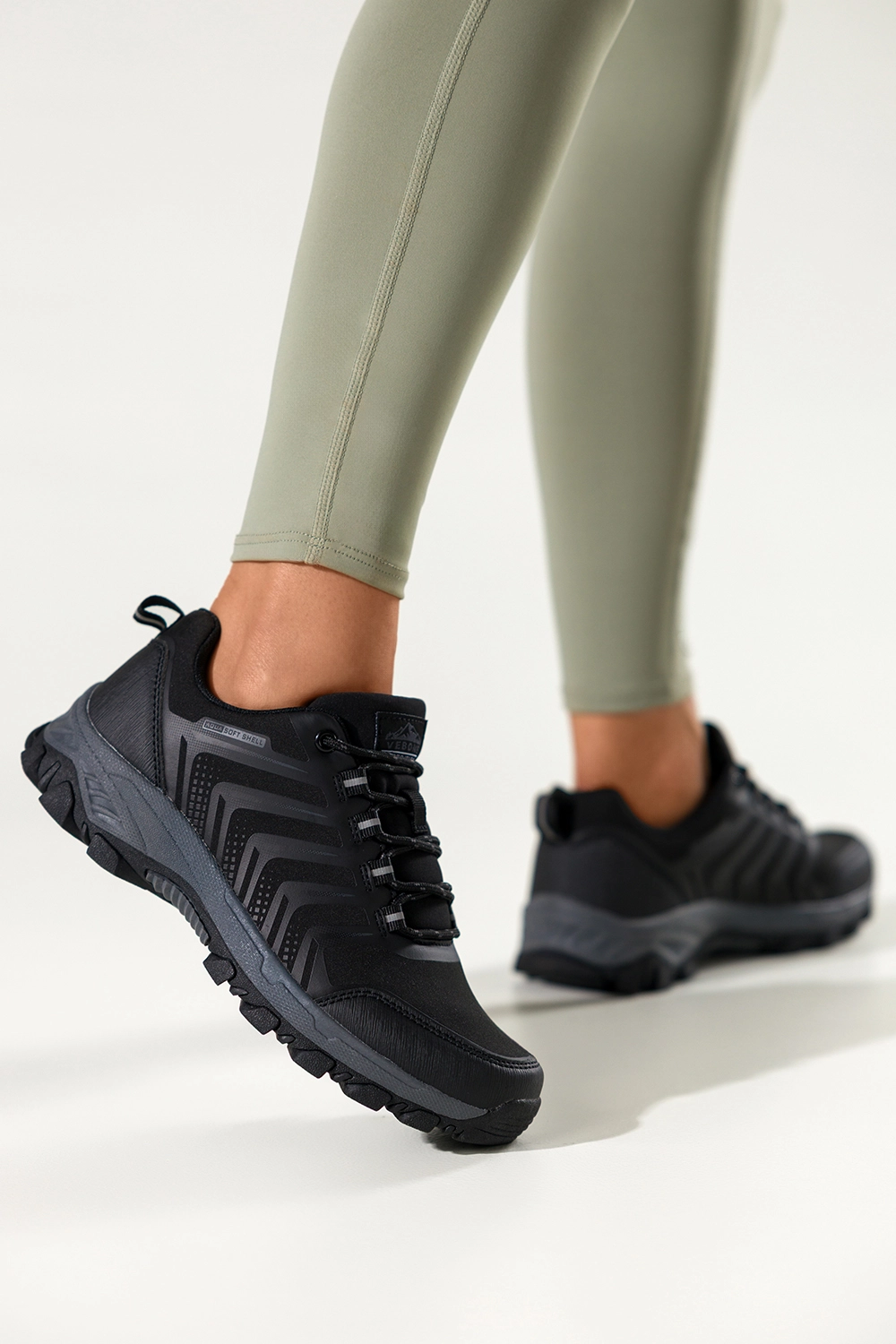 Czarne buty trekkingowe damskie buty sportowe softshell na bieżnikowanej podeszwie szare wstawki sznurowane Carla EY82933-8
