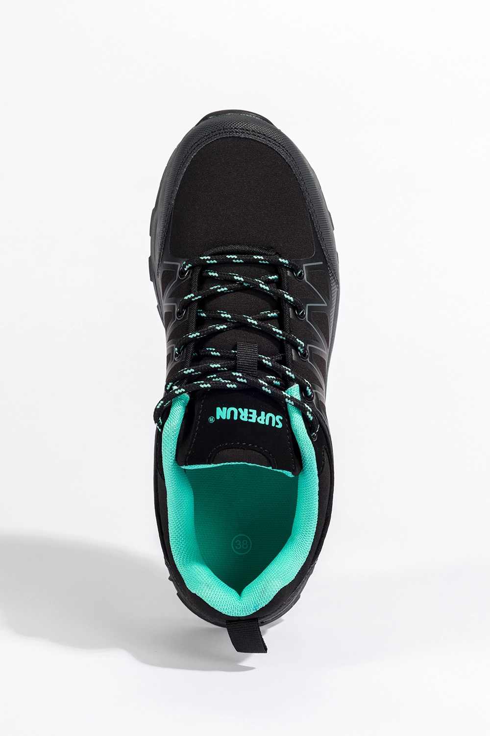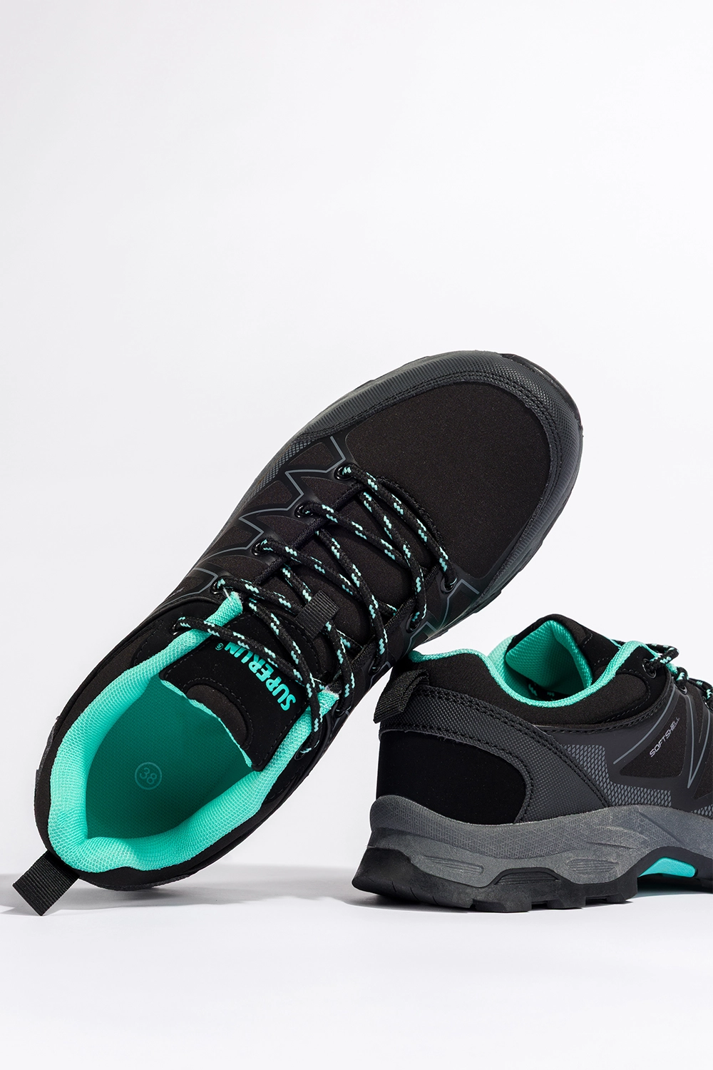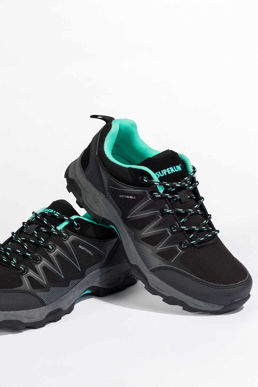 Czarne buty trekkingowe damskie buty sportowe softshell na bieżnikowanej podeszwie sznurowane turkusowe wstawki Carla model 8452 to niezawodny towarzysz każdej aktywnej kobiety, która ceni sobie wygodę, jakość wykonania i nowoczesny design. Wykonane z wysokogatunkowej skóry ekologicznej i uzupełnione tekstylną wkładką, te wyjątkowe buty łączą w sobie wszystkie cechy idealnego obuwia outdoorowego. Dzięki technologii softshell, zapewniają komfort termiczny, jednocześnie pozwalając stopie oddychać. To idealna propozycja dla kobiet, które potrzebują funkcjonalnego, stylowego i trwałego obuwia trekkingowego, które sprawdzi się zarówno w mieście, jak i podczas dłuższych spacerów po lesie czy w górach.