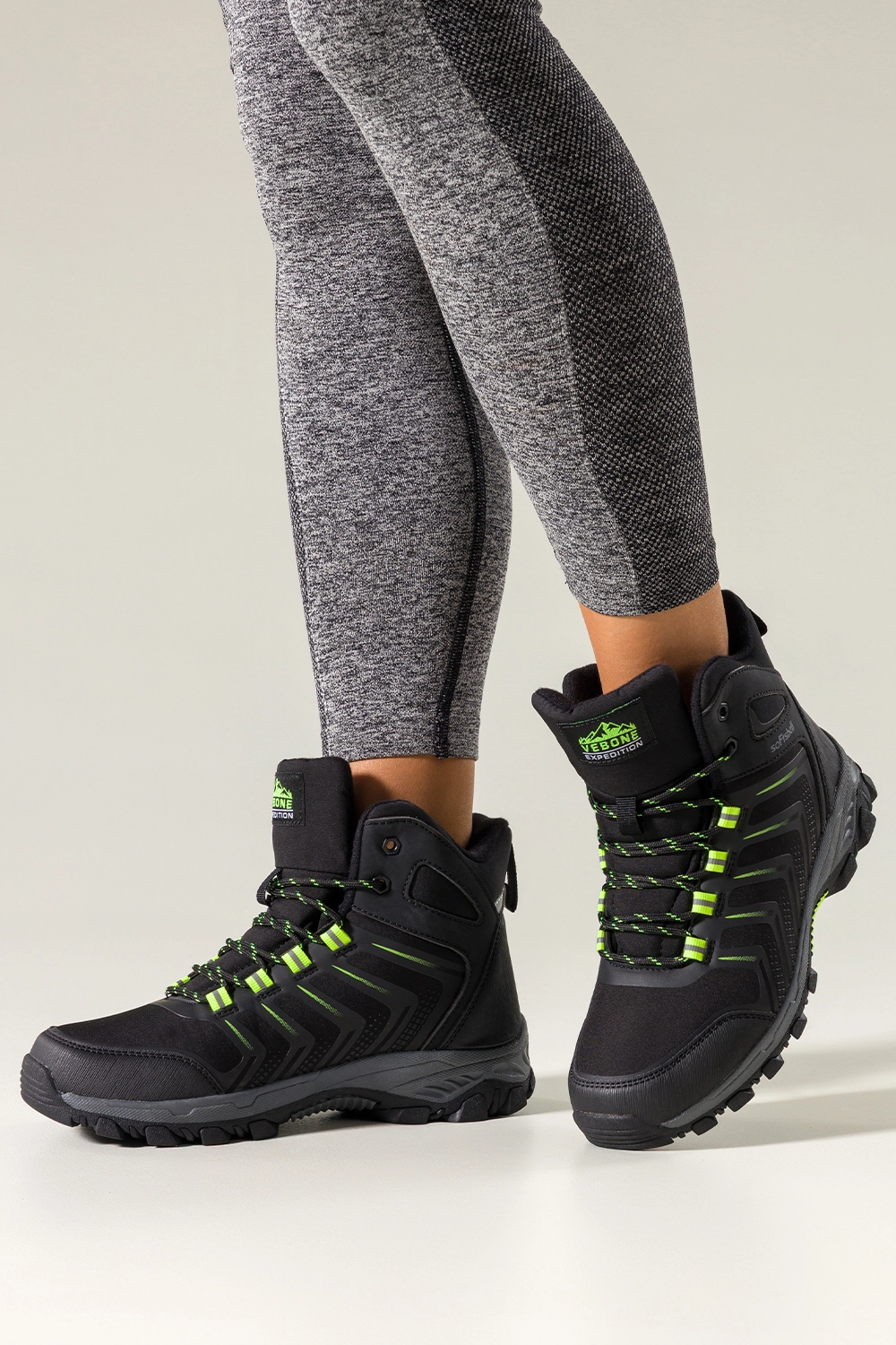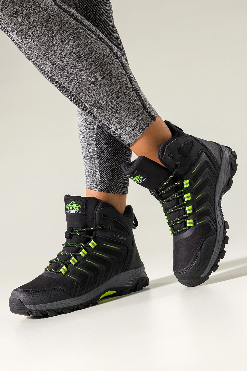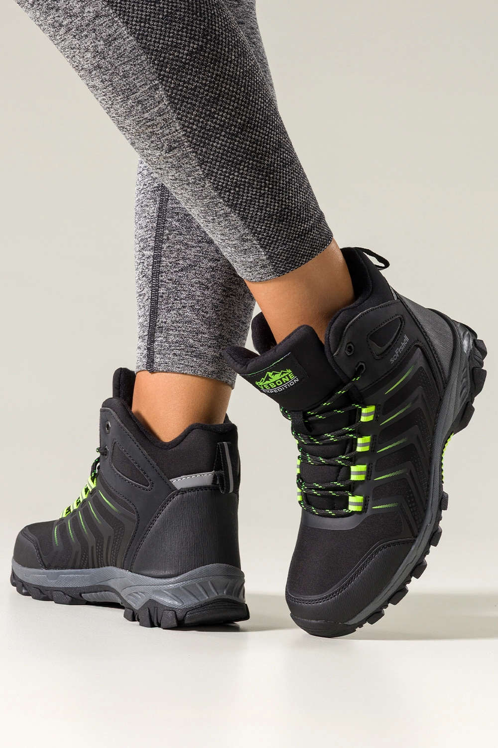 Czarne buty trekkingowe damskie softshell na bieżnikowanej podeszwie seledynowe wstawki sznurowane Carla model EY82939-7 to niezawodny wybór dla kobiet ceniących komfort i bezpieczeństwo podczas każdej wędrówki. Wykonane z wysokogatunkowej skóry ekologicznej oraz materiału softshell, zapewniają trwałość i odporność na trudne warunki pogodowe. Dzięki miękkiej, tekstylnej wkładce i zaokrąglonemu noskowi, oferują wygodę nawet podczas wielogodzinnego użytkowania. Cholewka o podwyższonej konstrukcji stabilizuje stopę, chroniąc kostkę przy dynamicznym poruszaniu się w terenie.