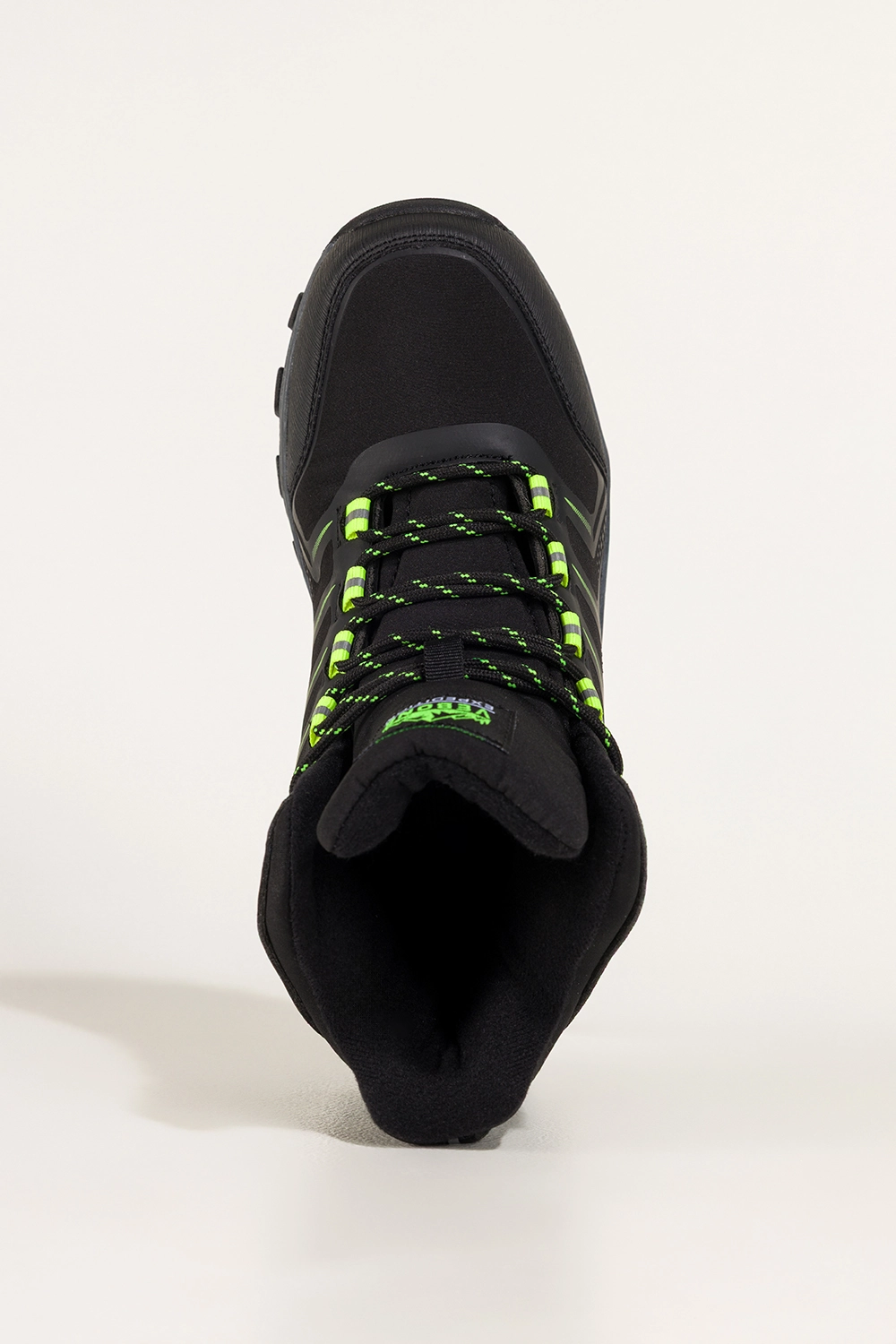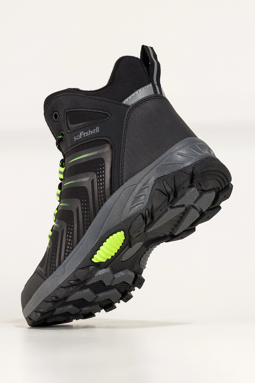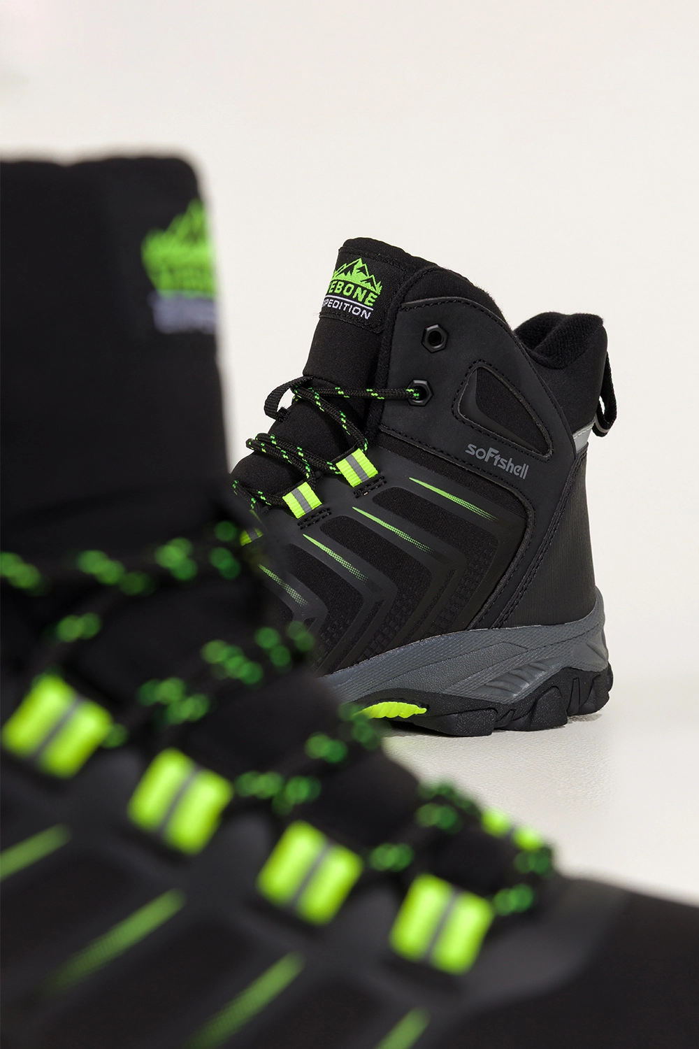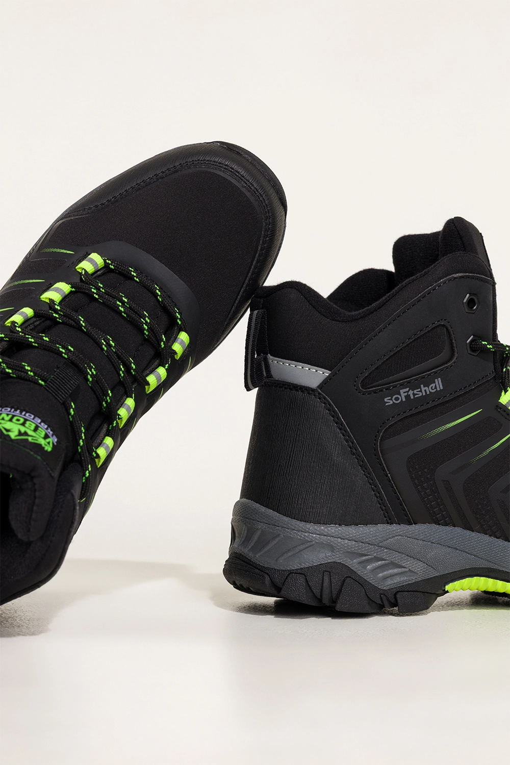 Seledynowe wstawki nadają tym butom oryginalny, nowoczesny charakter, dzięki czemu sprawdzą się nie tylko na górskim szlaku, ale też jako element sportowej stylizacji miejskiej. Ich bieżnikowana podeszwa gwarantuje doskonałą przyczepność na śliskich, kamienistych czy błotnistych nawierzchniach. Sznurowanie umożliwia idealne dopasowanie do stopy, a częściowa wodoodporność softshellu zabezpiecza przed lekkim deszczem czy wilgocią. To idealne połączenie stylu i praktyczności.