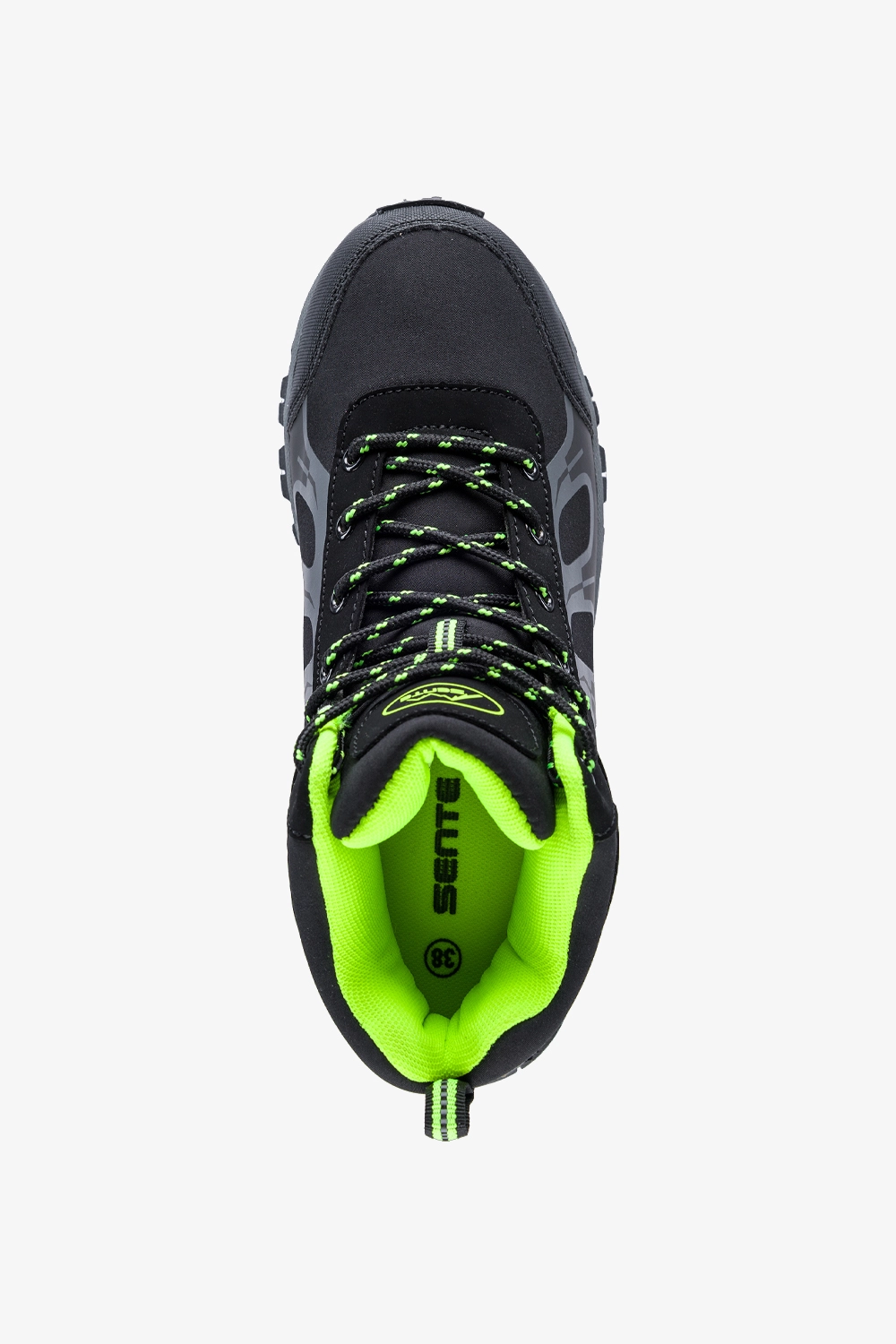 Wszechstronność stylizacyjna i wygoda użytkowania czynią z modelu B2108-2 nie tylko praktyczne obuwie trekkingowe, ale również stylowy dodatek do codziennych stylizacji sportowych i casualowych. Czarno-seledynowa kolorystyka świetnie komponuje się zarówno z klasycznymi dżinsami, legginsami outdoorowymi, jak i z bardziej zaawansowaną odzieżą techniczną. Zaokrąglony nosek zapewnia przestrzeń dla palców, zapobiegając otarciom i uczuciu dyskomfortu podczas dłuższego noszenia. Wysoka cholewka stabilizuje kostkę i minimalizuje ryzyko kontuzji, a bieżnikowana podeszwa gwarantuje pewny krok na nierównych nawierzchniach – od skalistych ścieżek, przez błotniste drogi, aż po miejskie chodniki pokryte deszczem. Wewnątrz butów znajduje się miękka, oddychająca wkładka z materiału tekstylnego, która zapewnia komfort termiczny niezależnie od temperatury otoczenia.