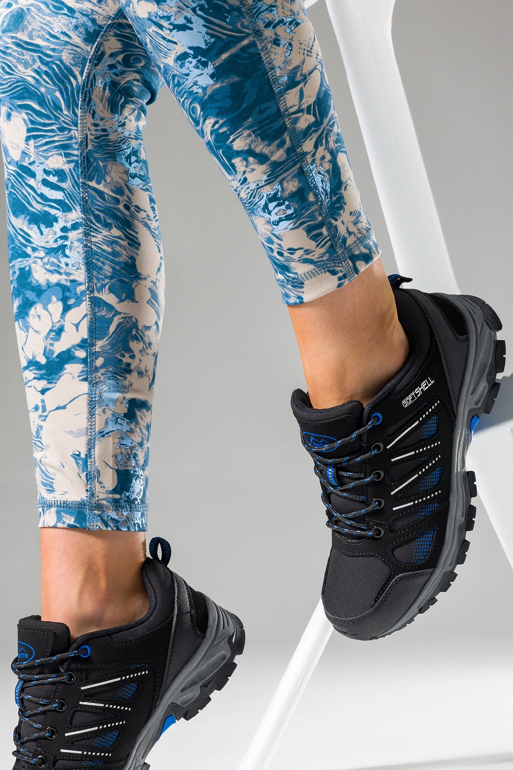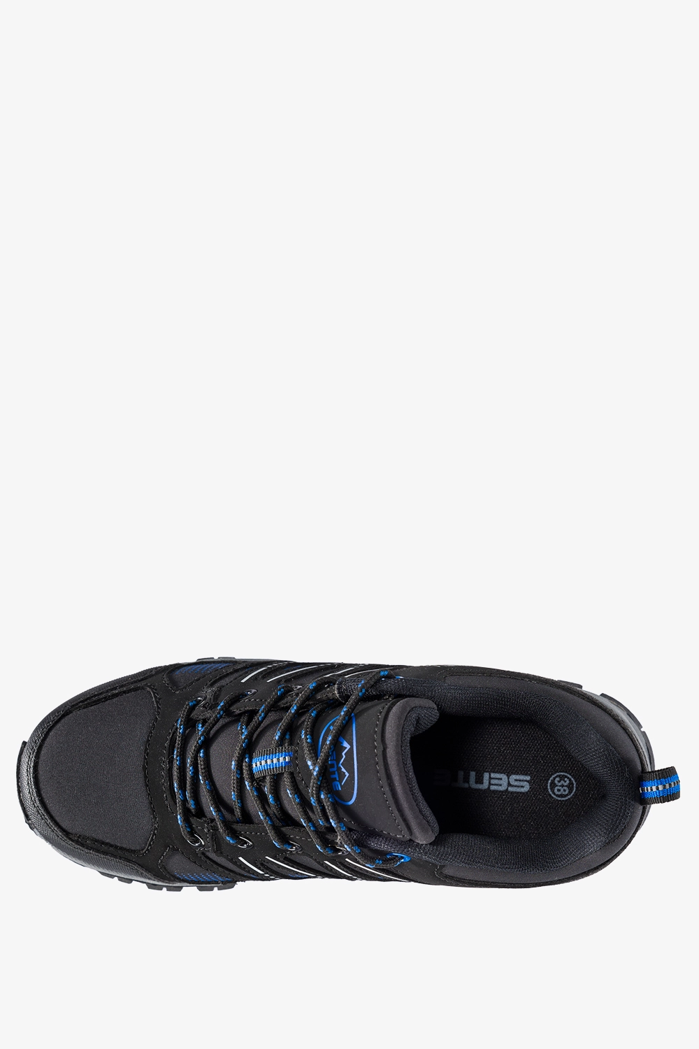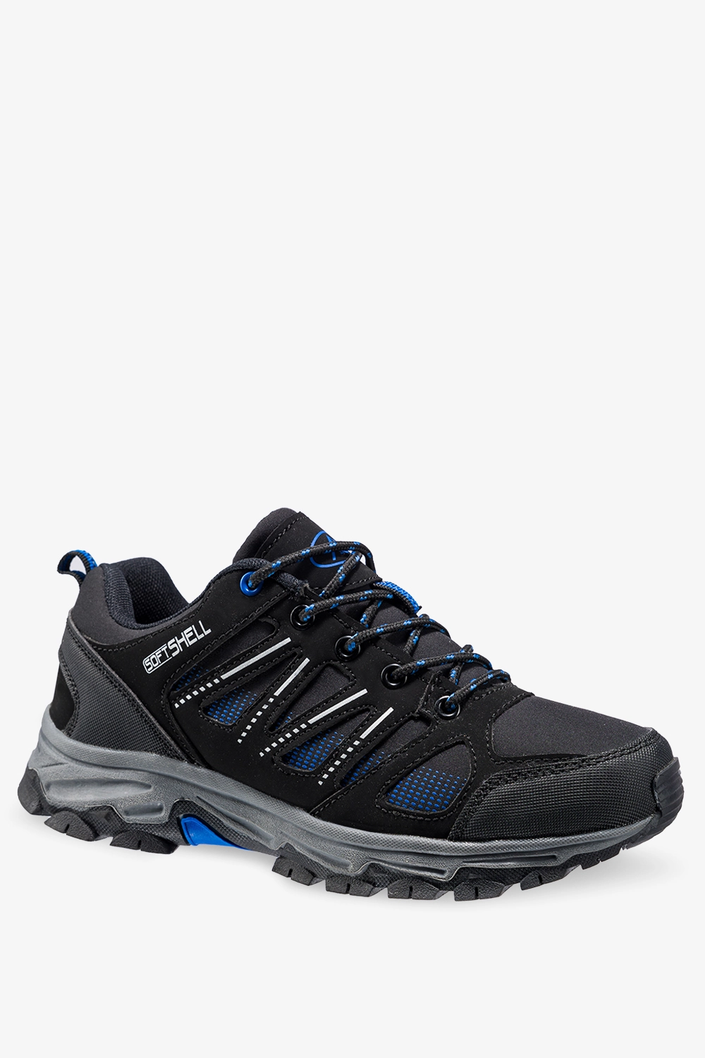 Czarne buty trekkingowe damskie z niebieskimi dodatkami sznurowane softshell Casu B2114-3